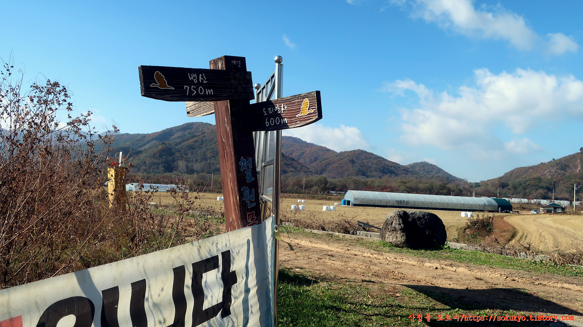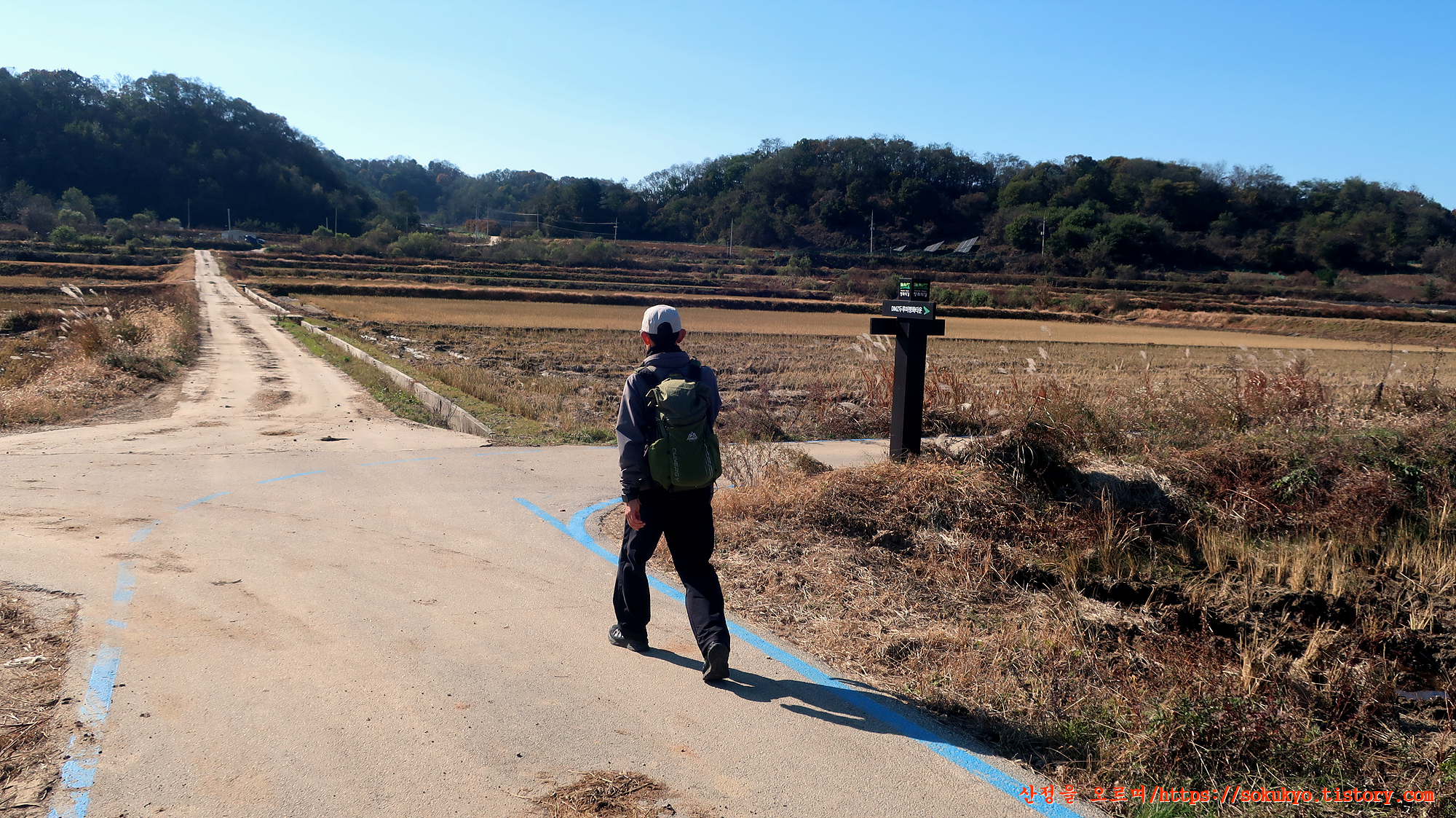 철원읍 중리의 농로 사거리에서 만나는 DMZ평화의길 이정표