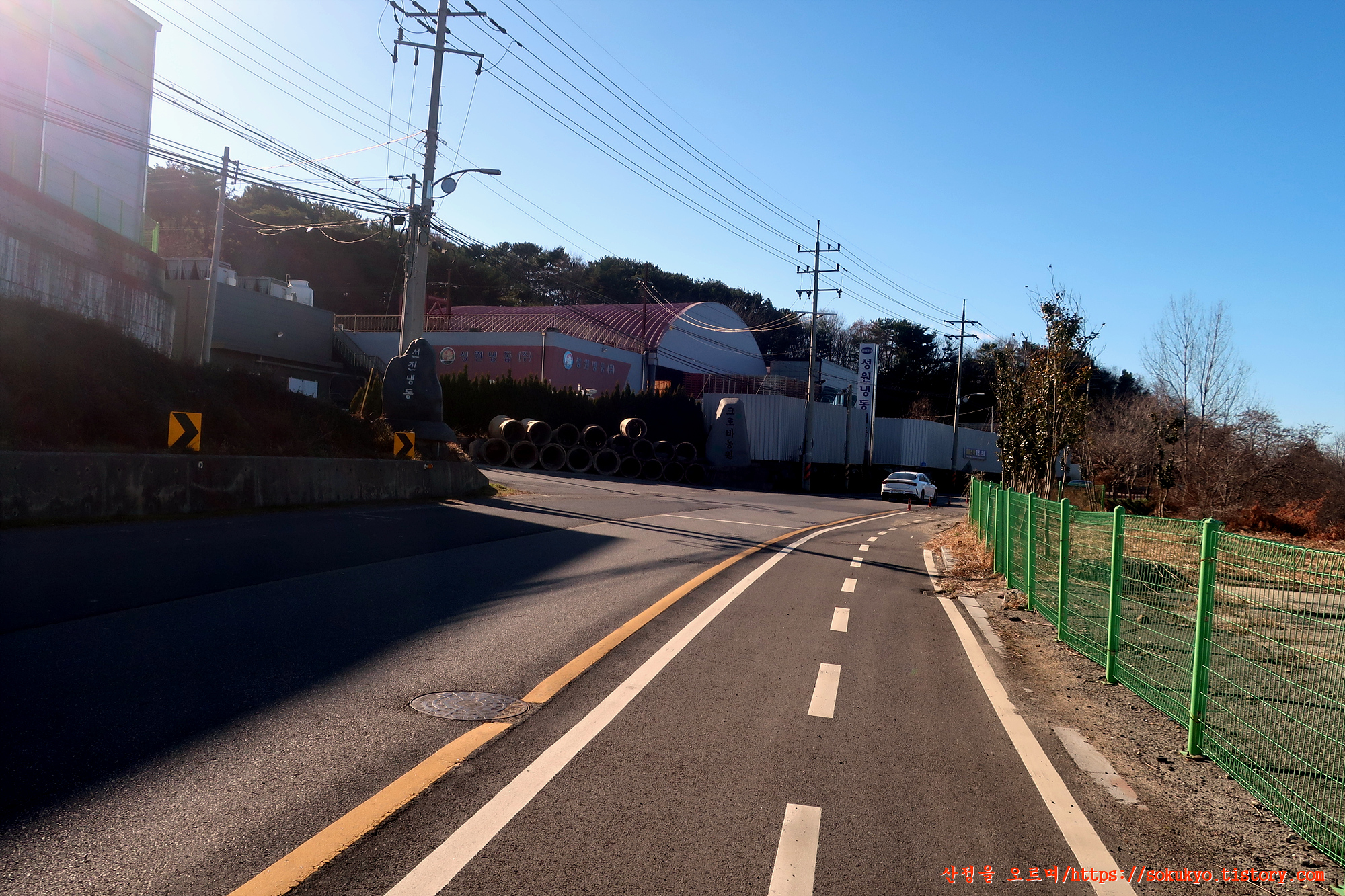 교성천의 다리를 건너 잠시 걸으면 2차선도로(오천중앙로)를 만나서