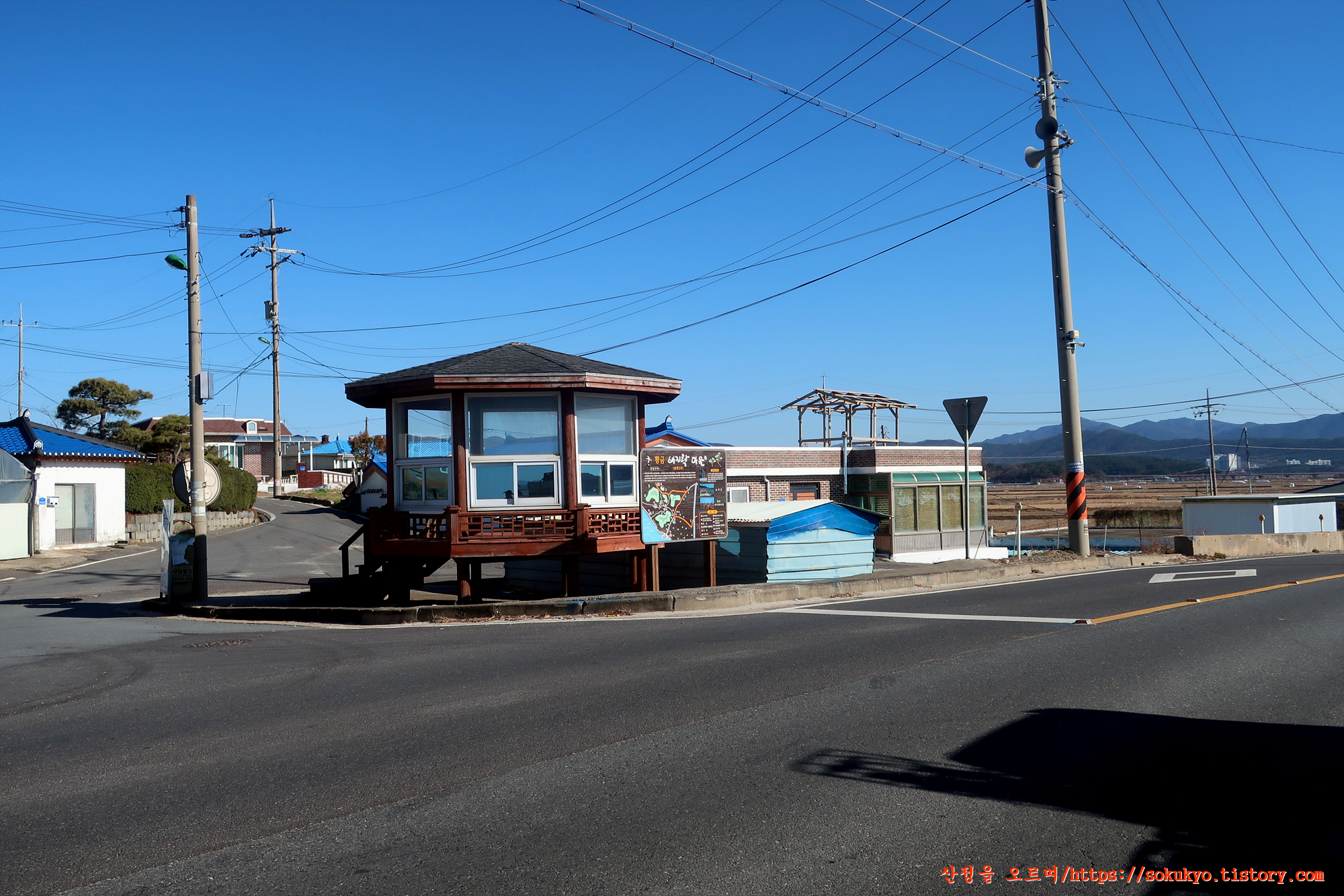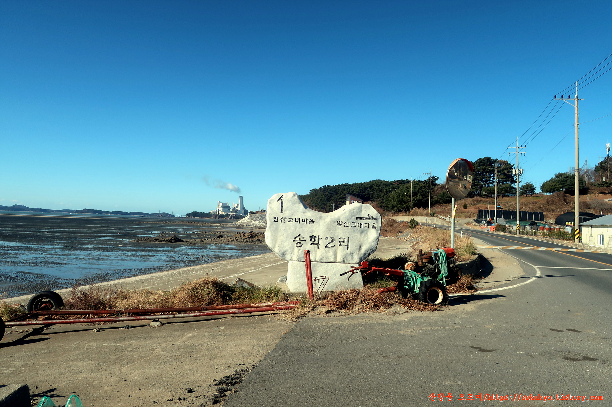 대천방조제로를 따라 송학3리 앞을 지납니다.