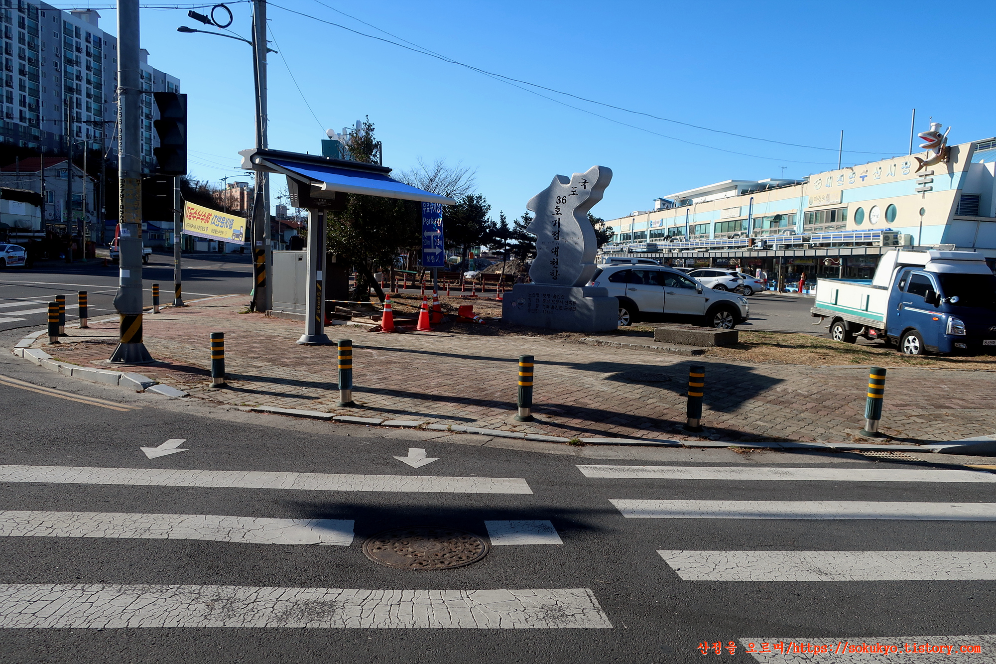 대천항로를 따라 '국도36호 기점 대천항' 한반도 조형물이 있는 곳을 지납니다.
