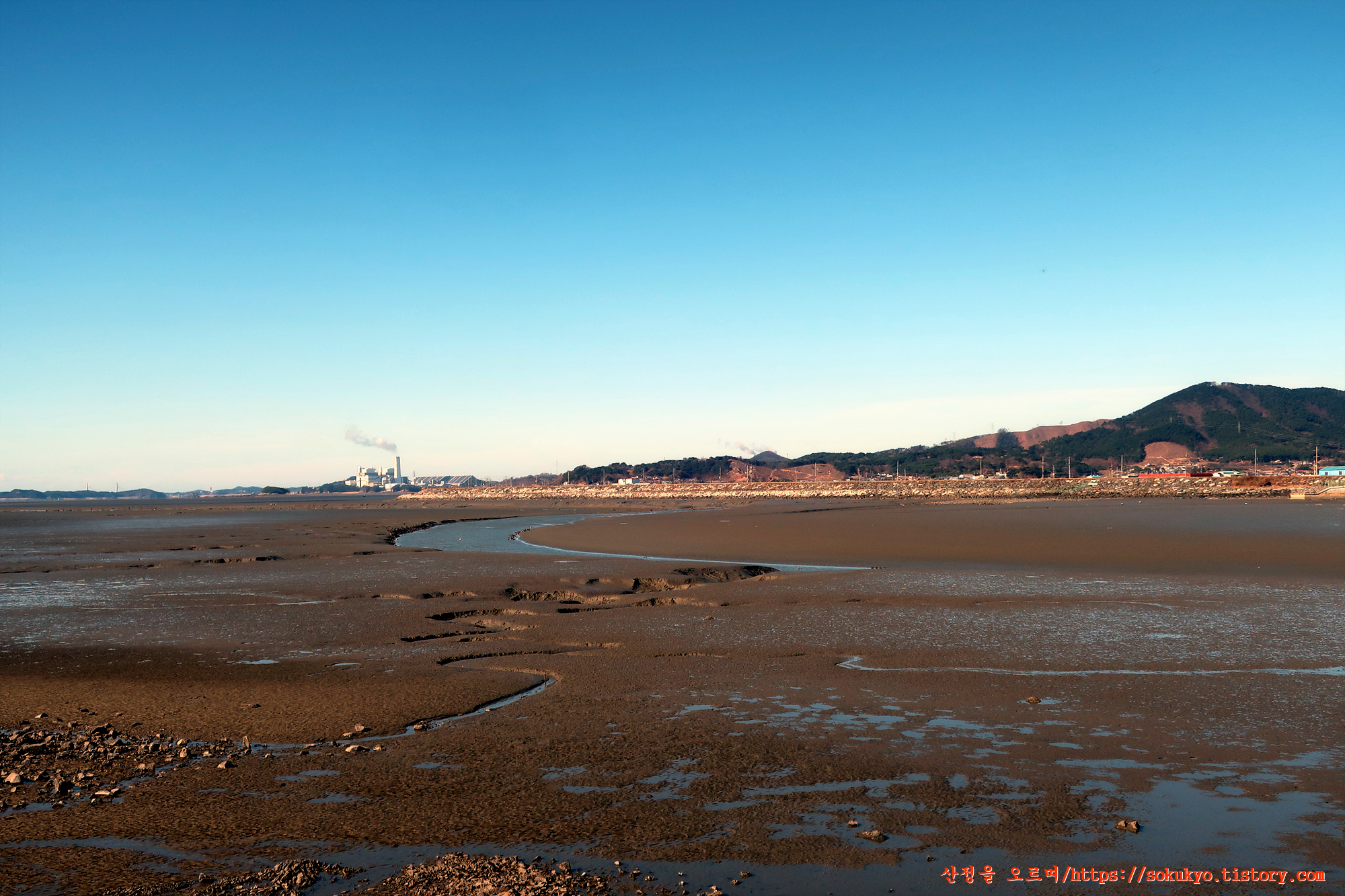 서해바다 건너편으로는 지나온 대천방조제와 '신보령발전본부'가 보이네요
