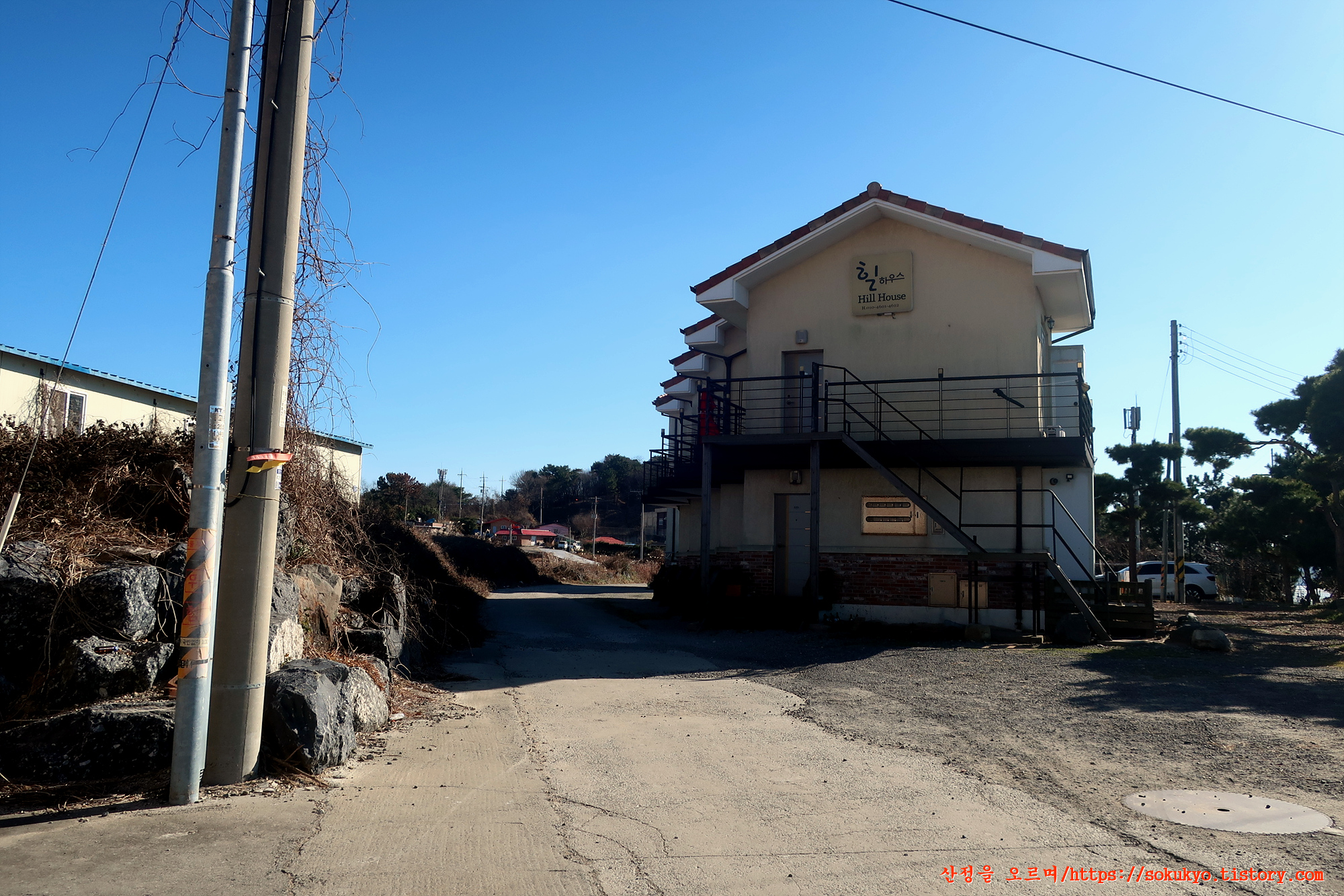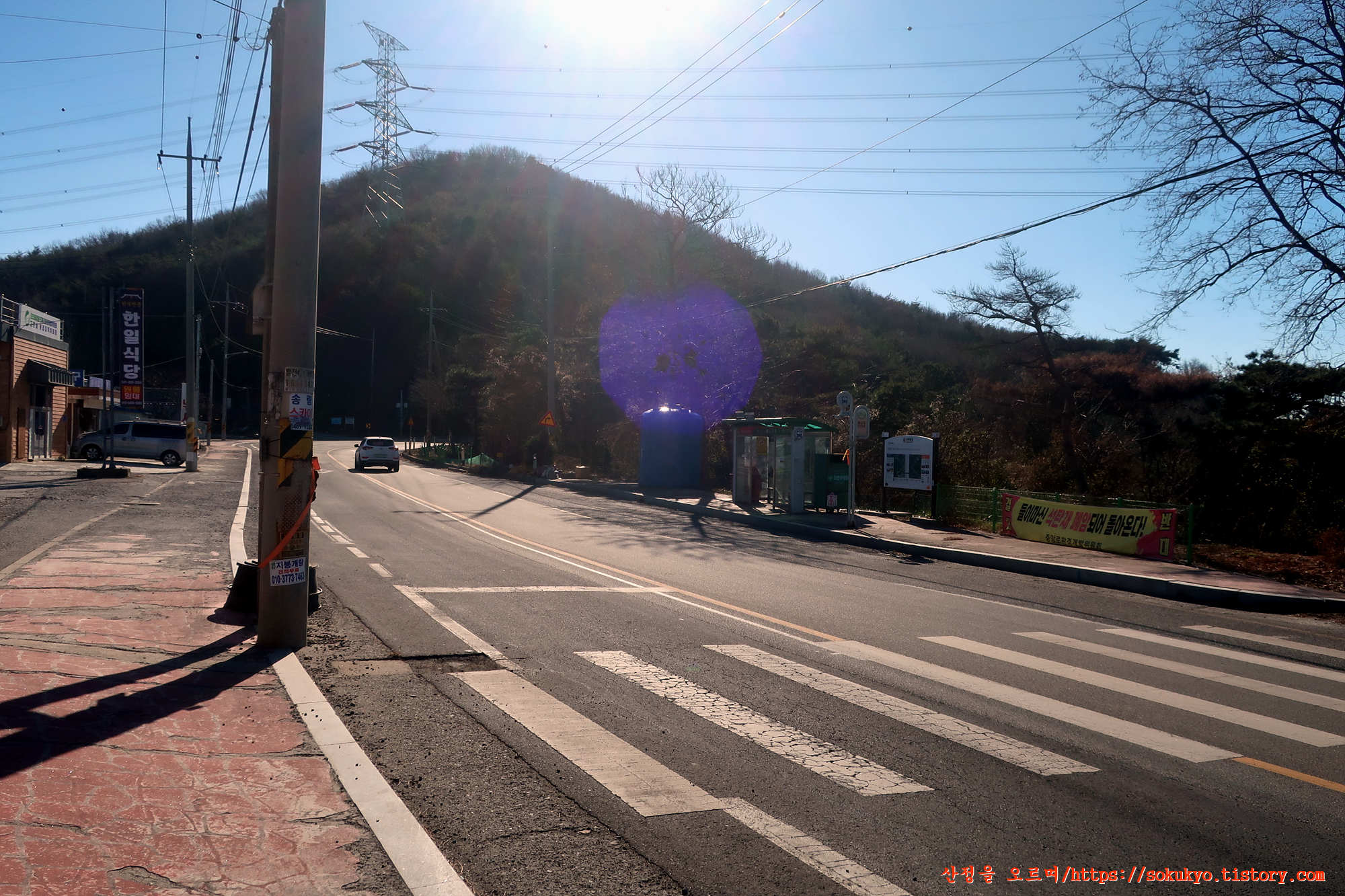 '해안로'를 따라 걸으며 '남곡3통' 버스정류장이 있는 곳을 지나고