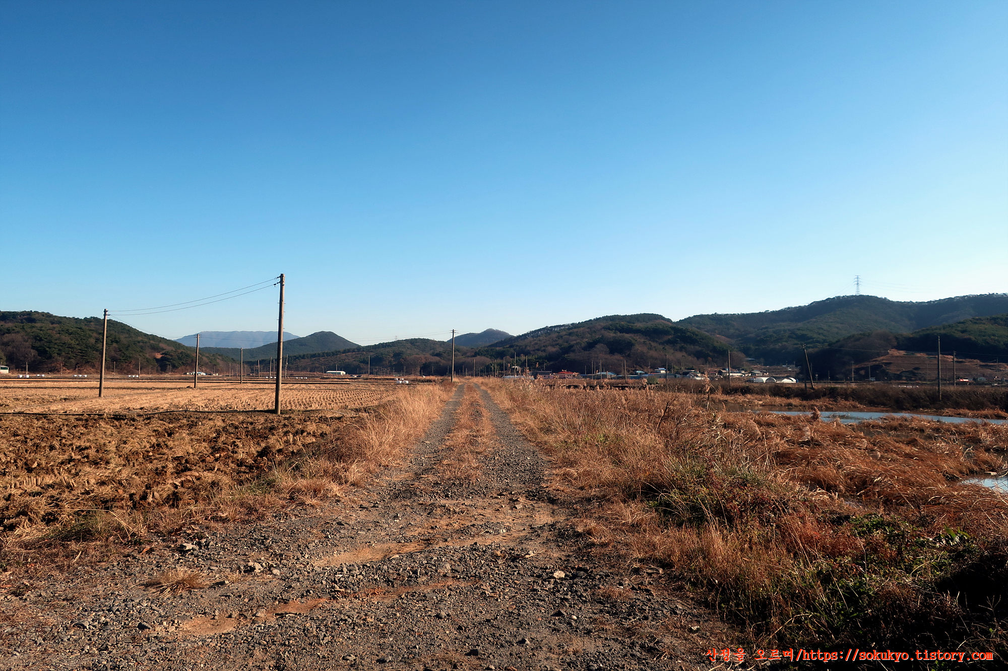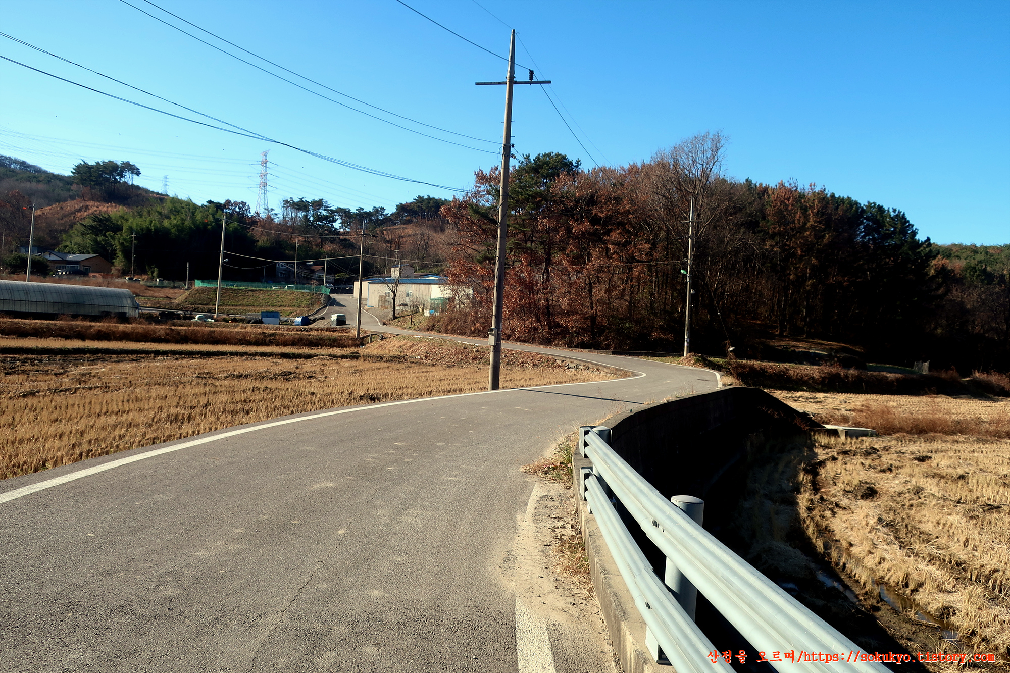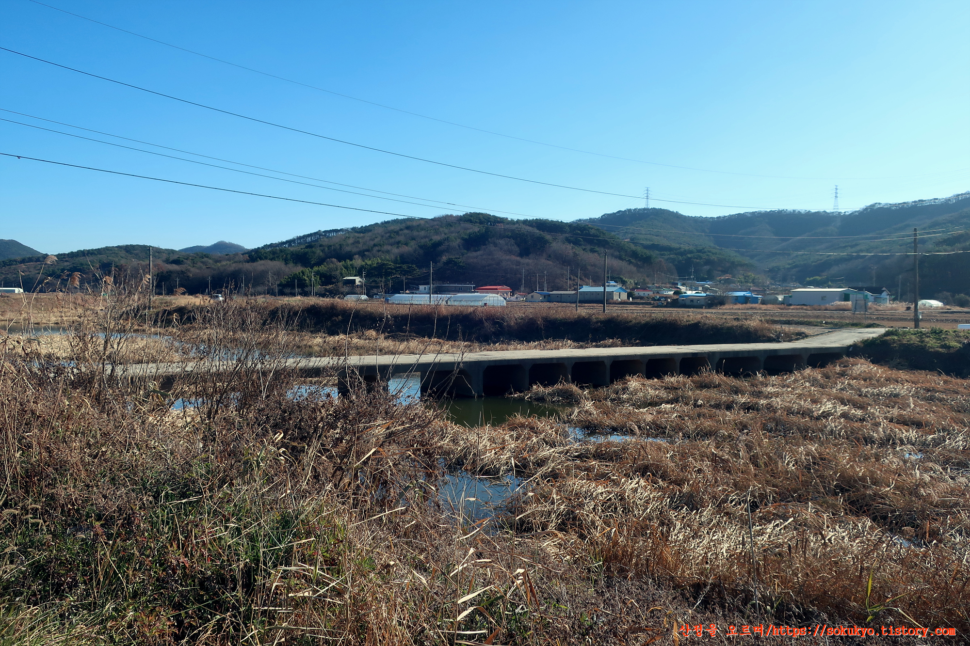교성천을 우측에 두고 농로를 따라 걷다가 첫번째 만나는 다리에서