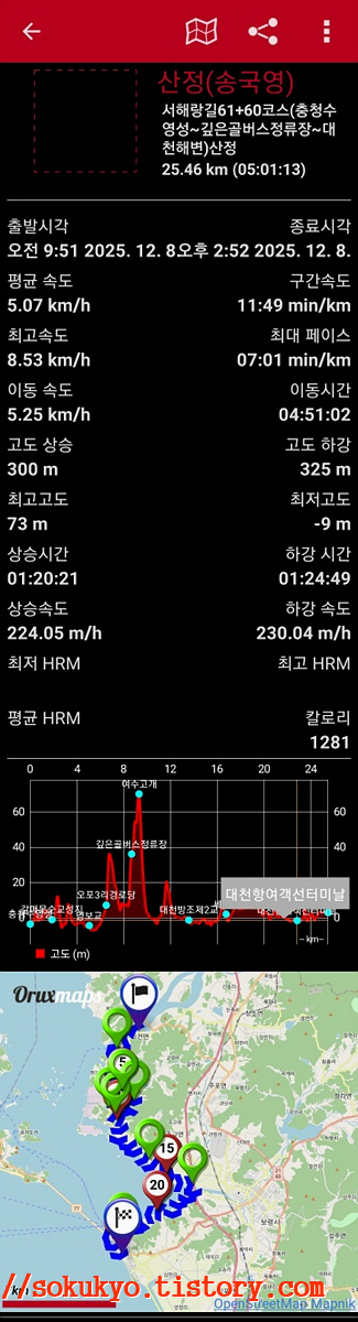 * 오록스맵 기록 : 25.46km(05시간01분/09:51~14:52)