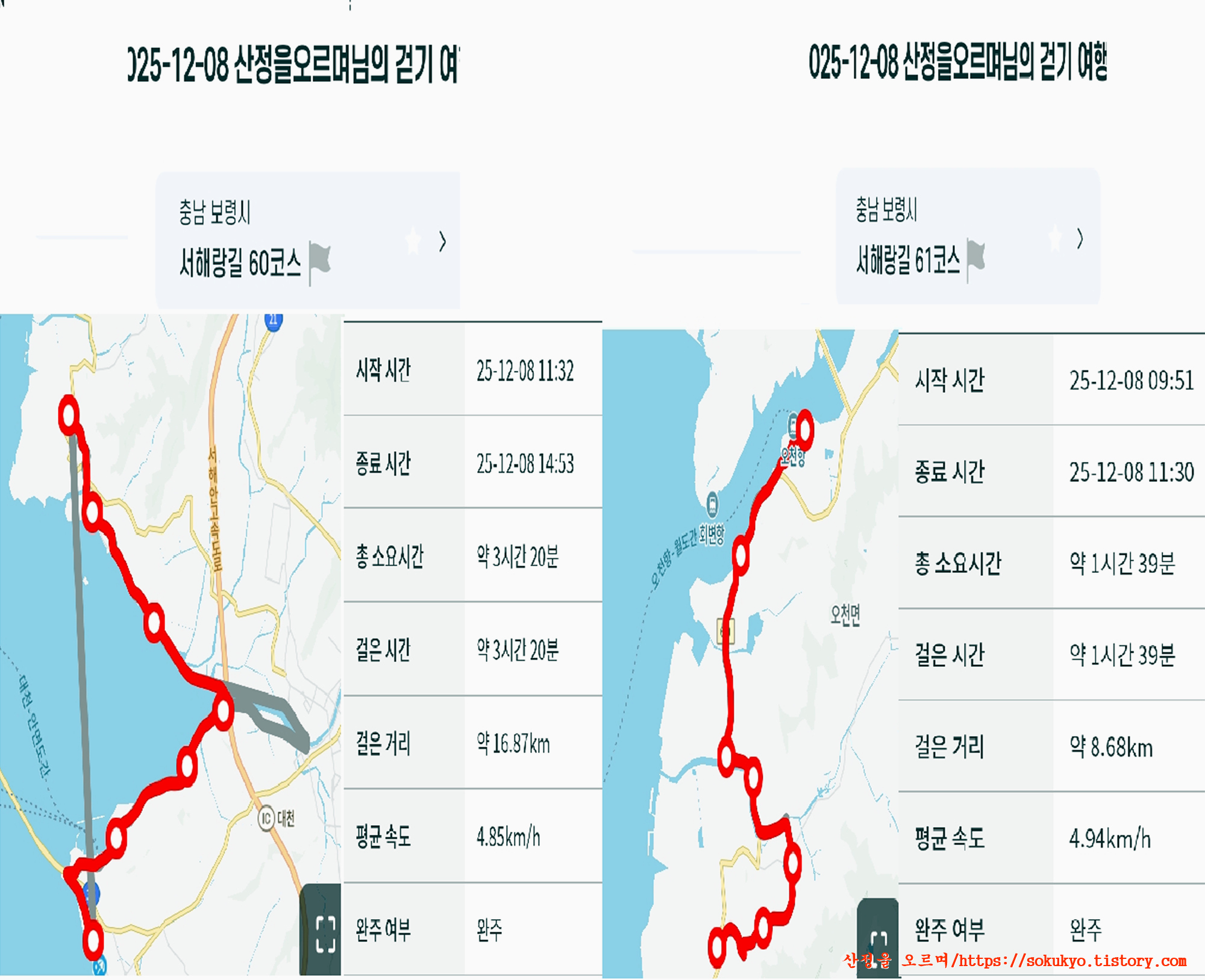 * 오록스맵 리라이브 궤적 : 서해랑길61+60코스