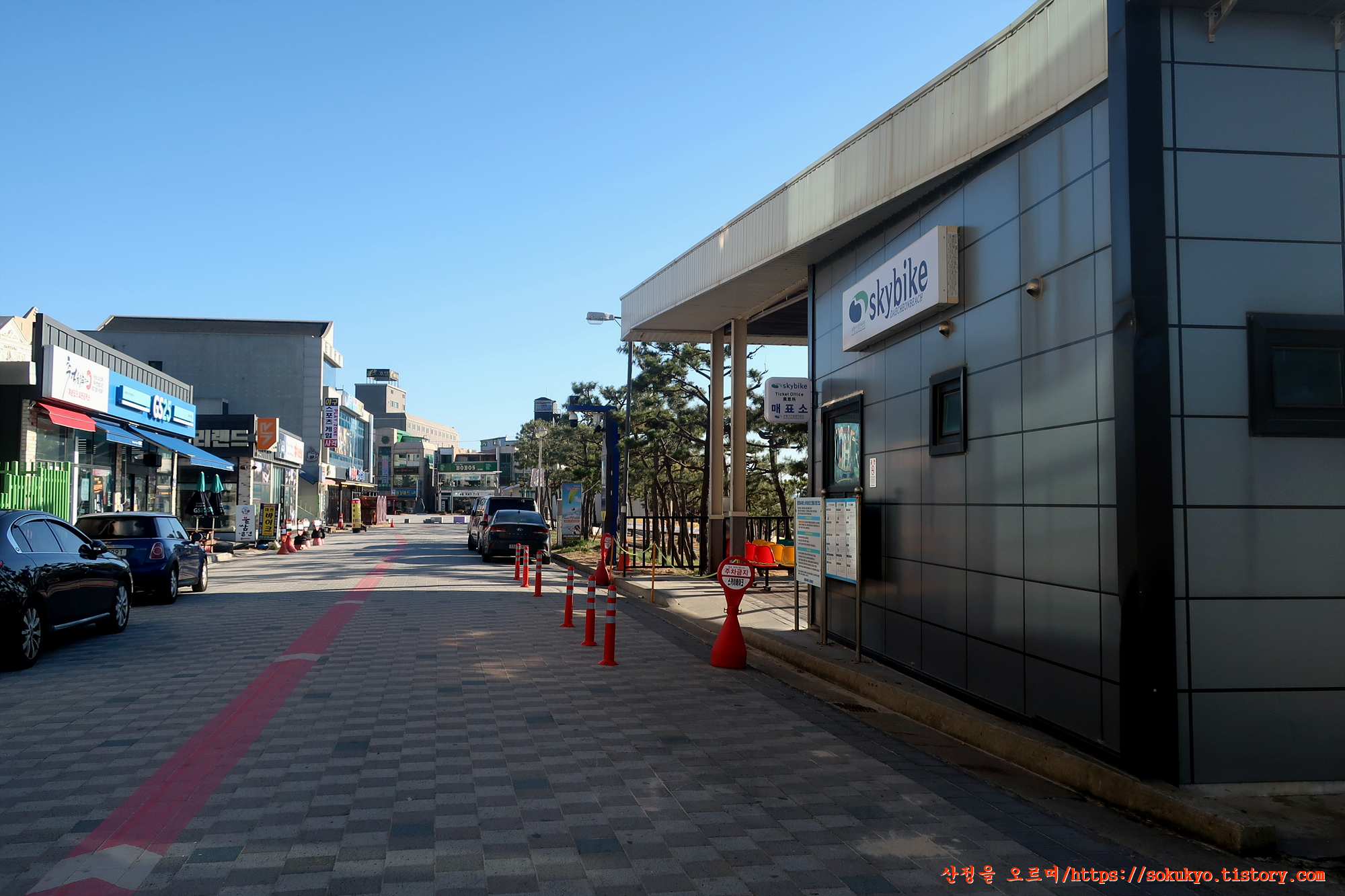 스카이 바이크 매표소 앞을 지납니다.