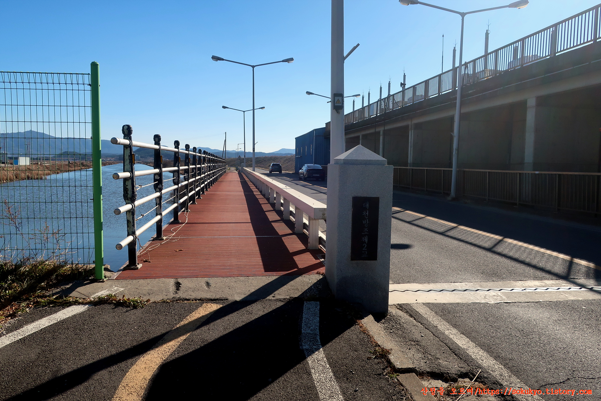 12:30 송학3리 앞을 지나면 우측에 배수문이 설치되어 있는 '대천방조제2교'를 건너게 됩니다.