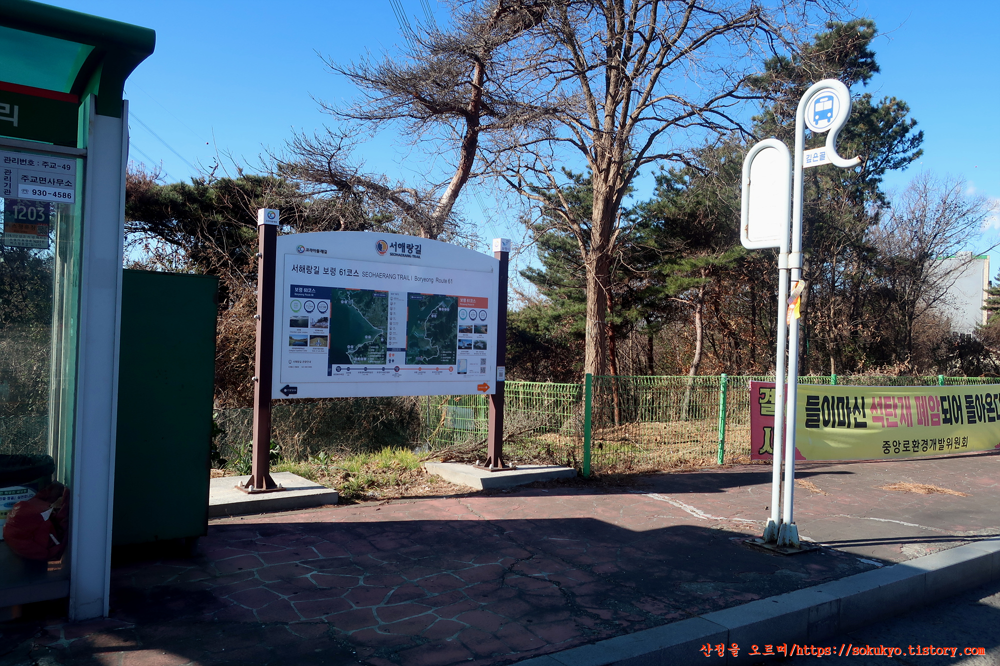 - 61코스종점/60코스시점 : 충남 보령시 오천면 오포리 724-84(깊은골 버스정류장 부근)