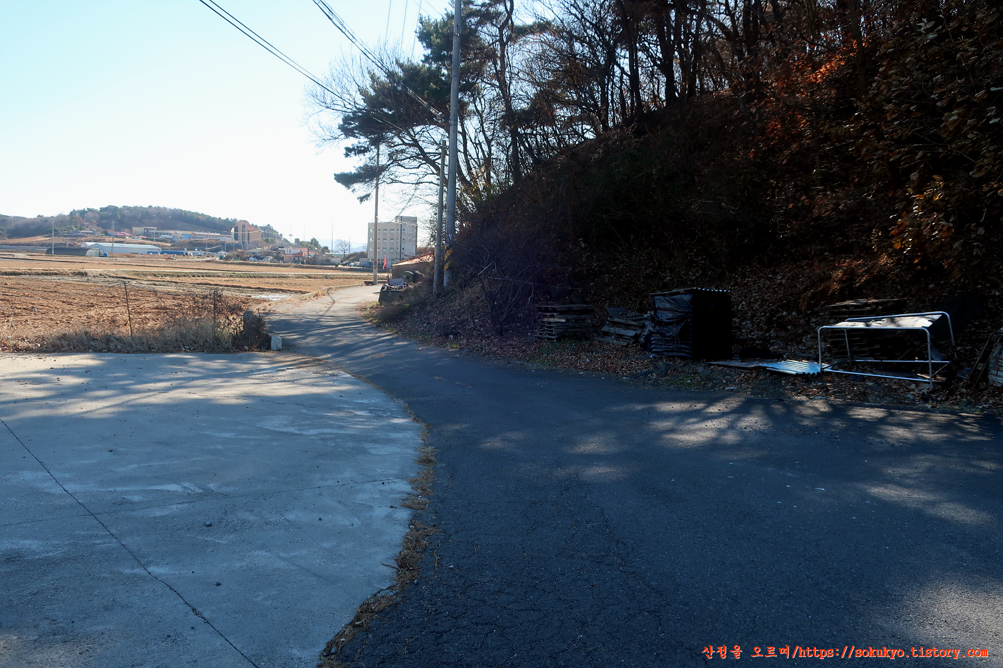 서해랑길은 이곳에서 좌측으로 휘어져 오포리 수정골로 들어섭니다.