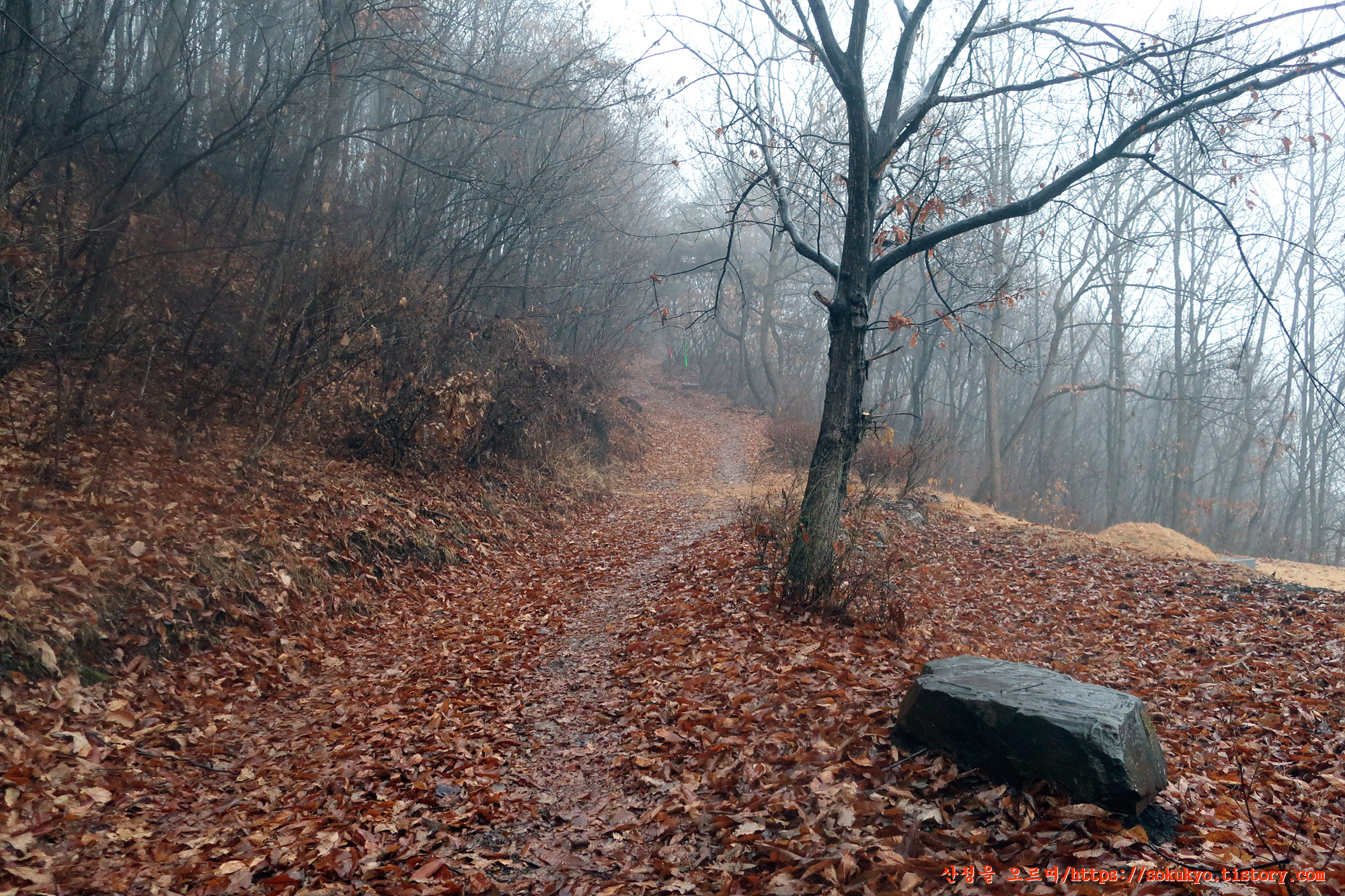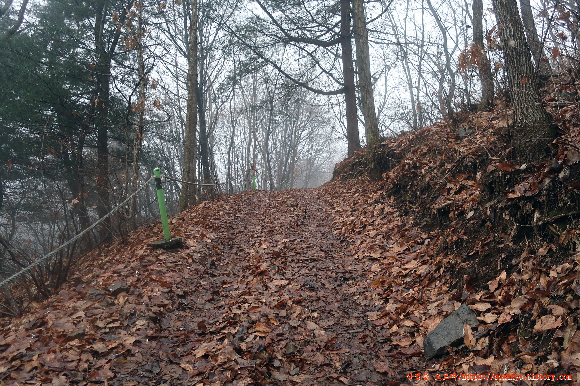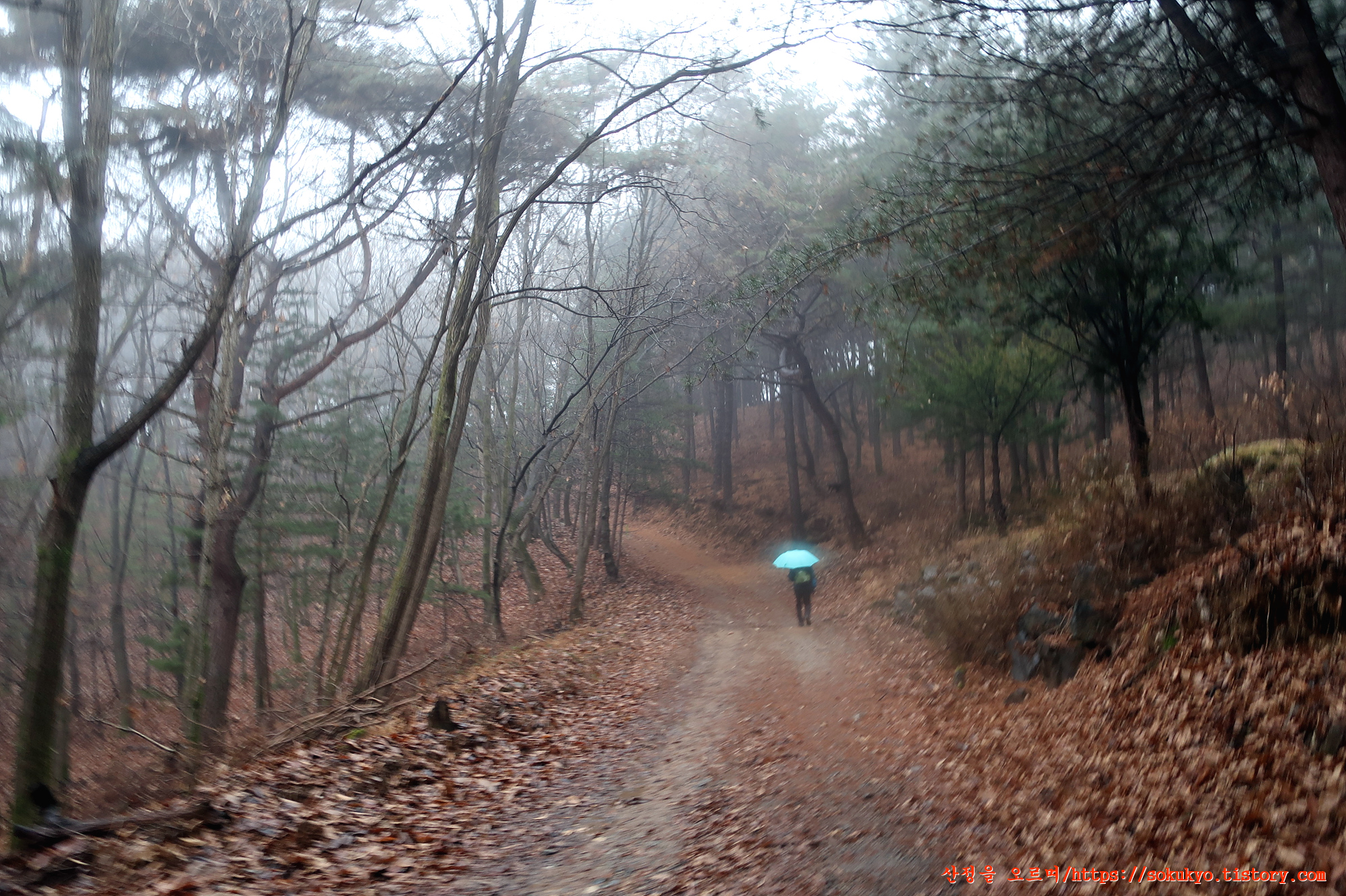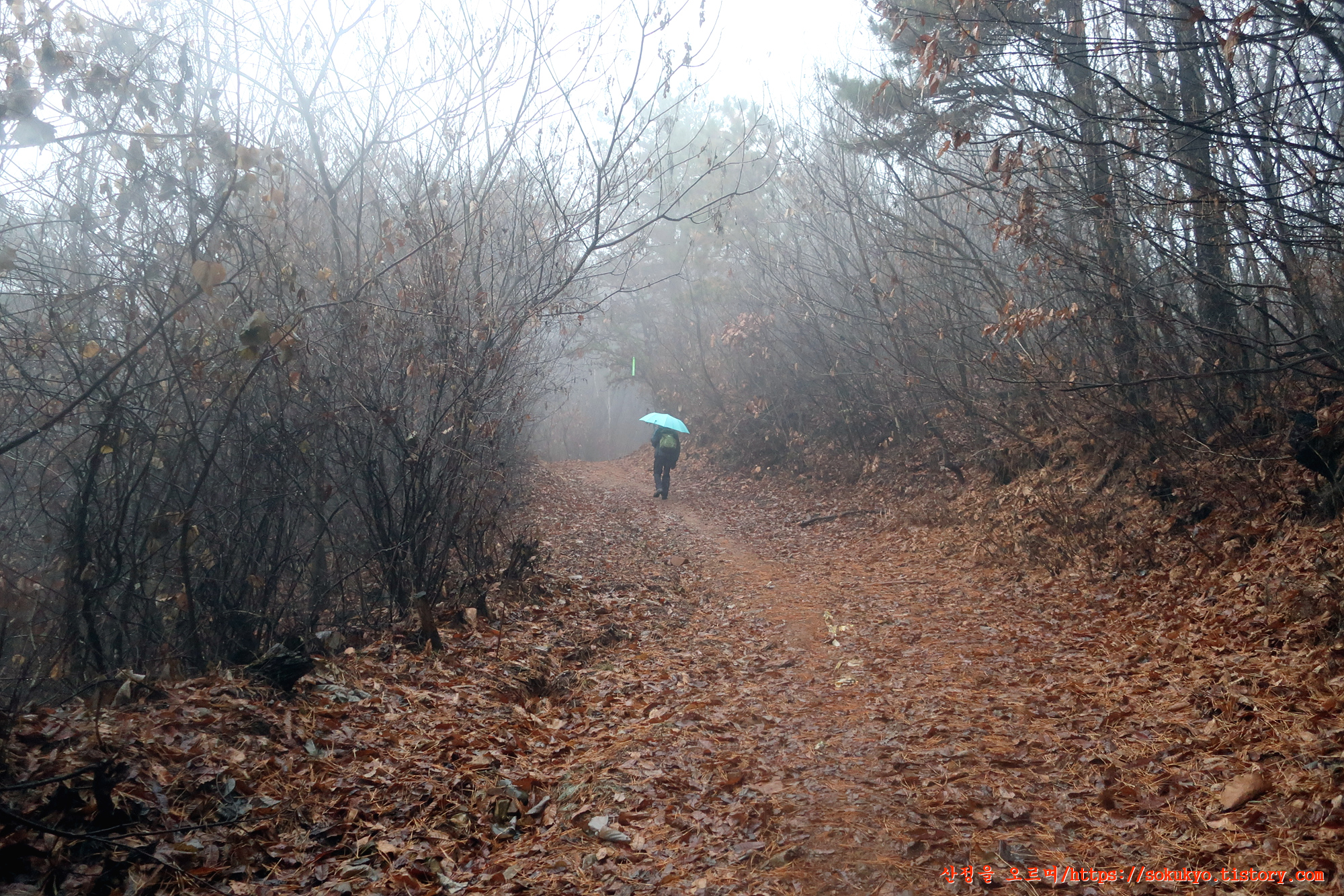 빗물에 젖어 있는 낙엽과 그아래 등로가 많이 미끄럽네요