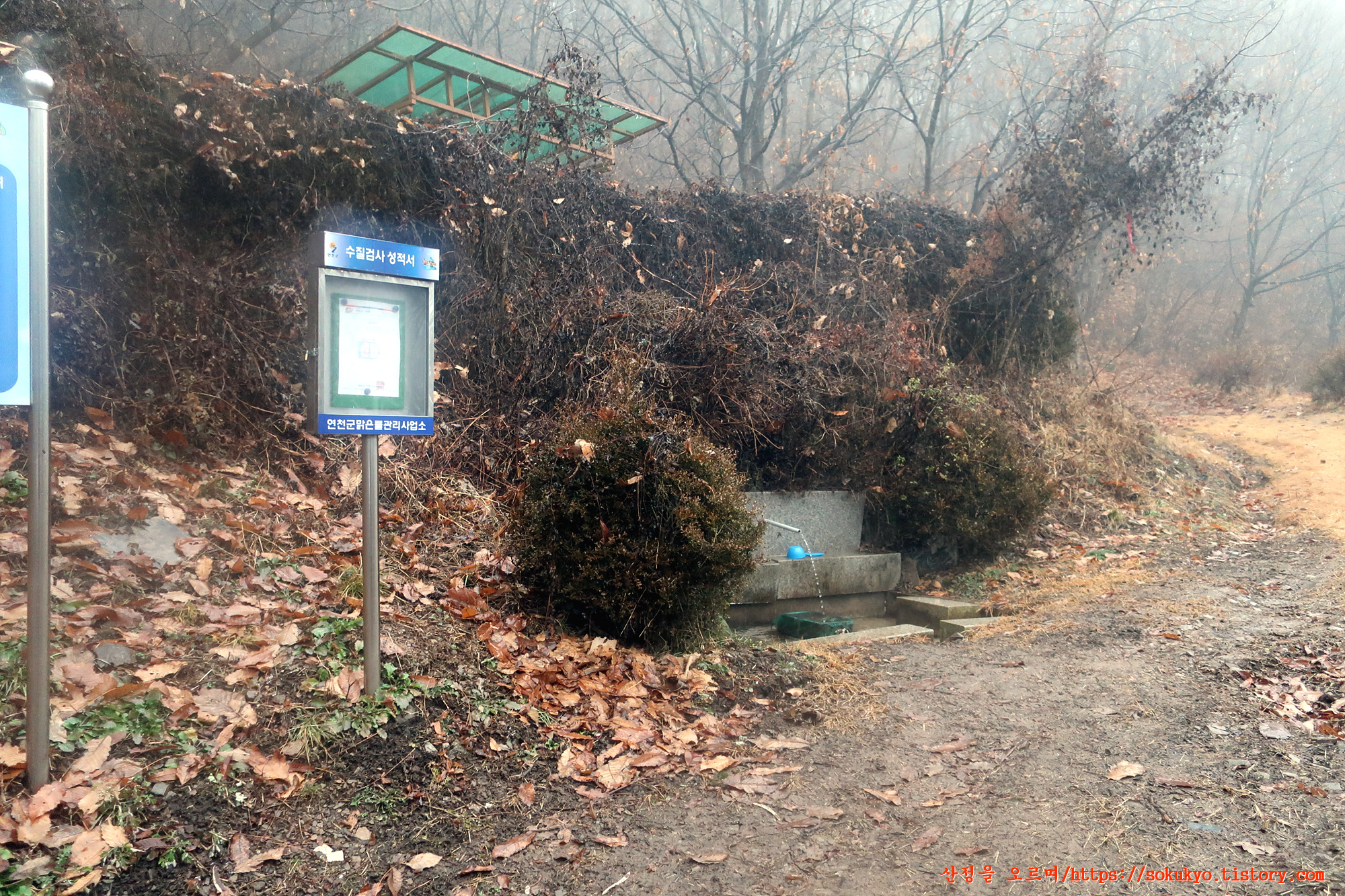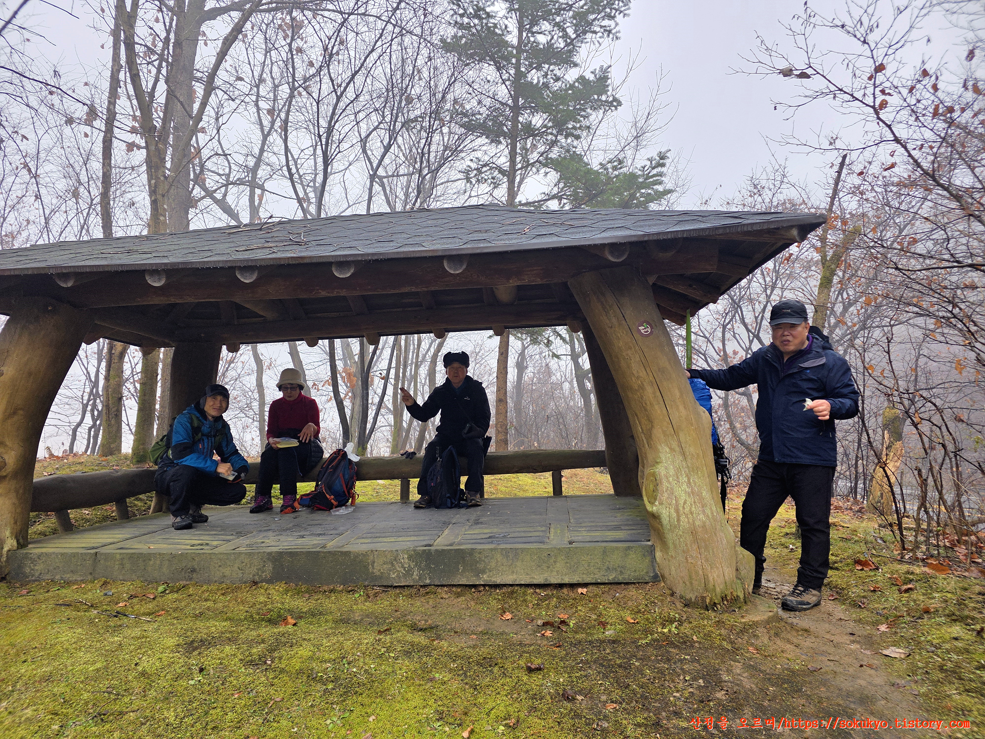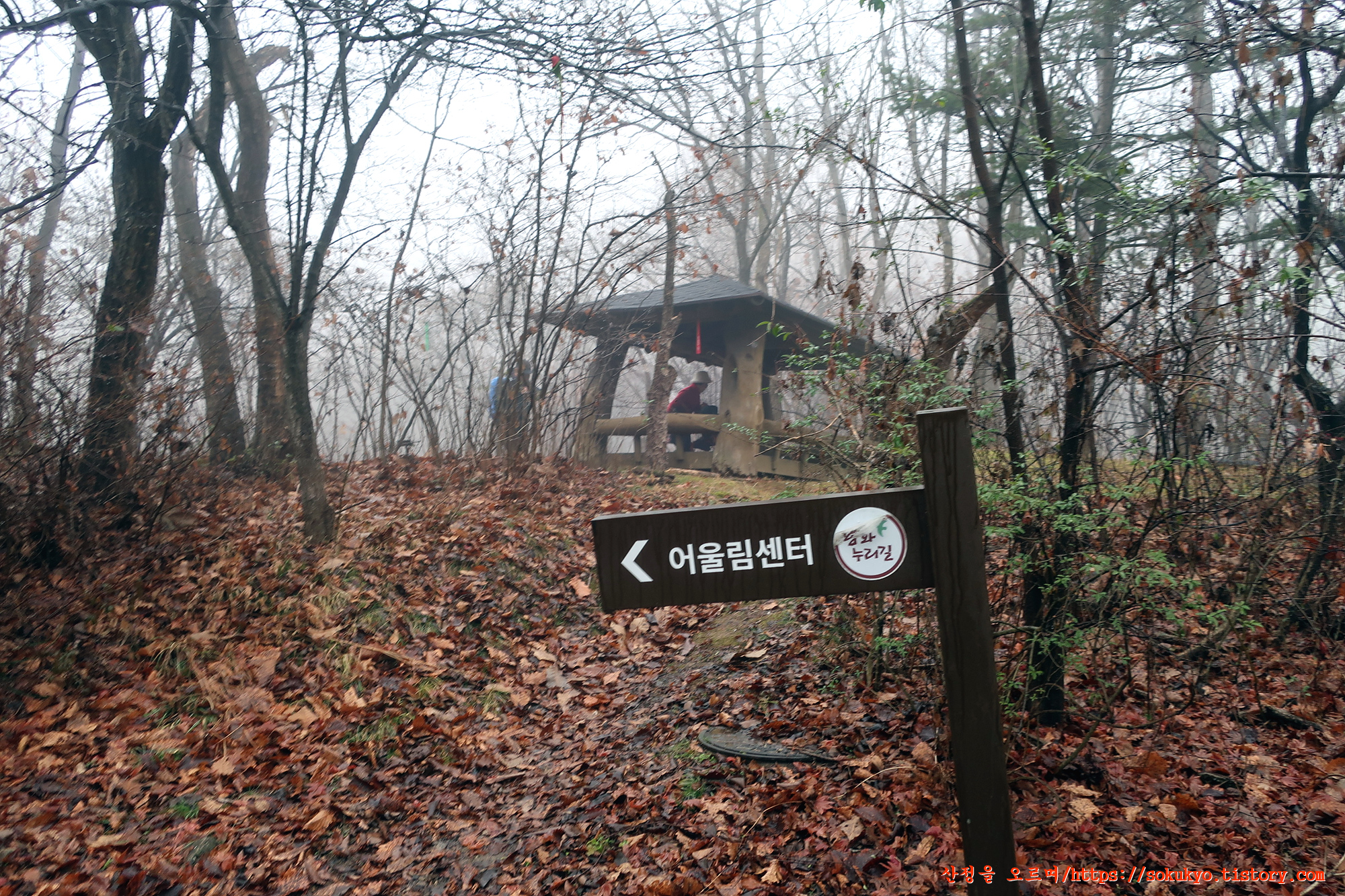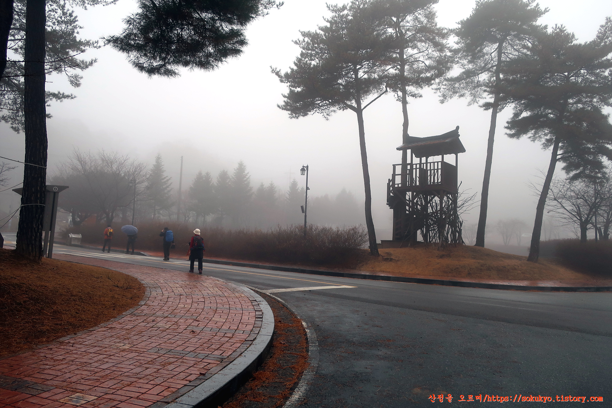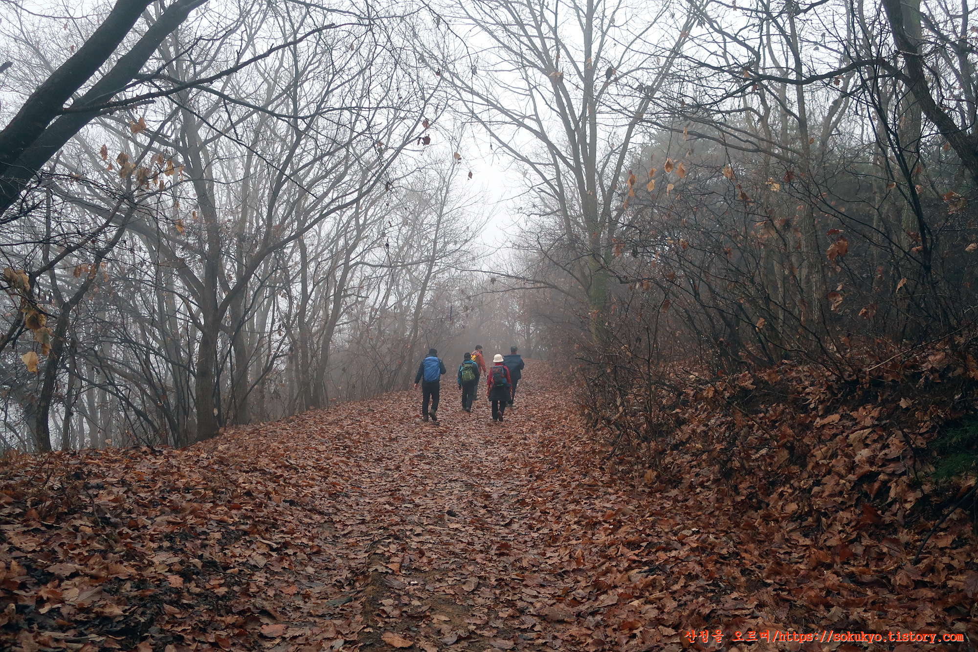 빗물에 젖어 있는 낙엽과 그아래 등로가 많이 미끄럽네요
