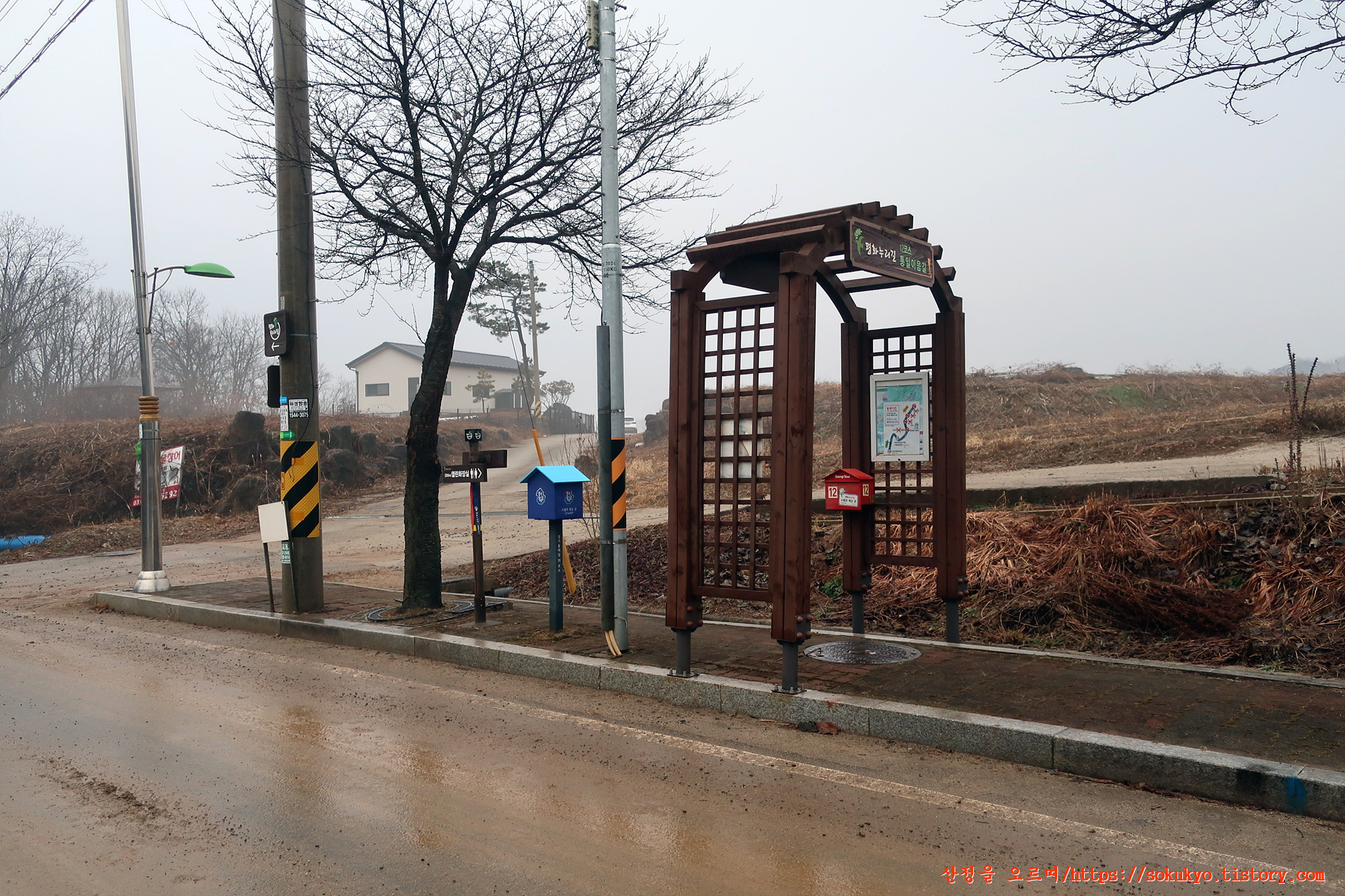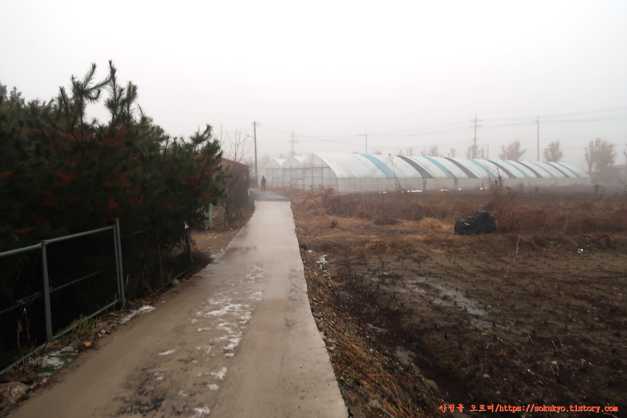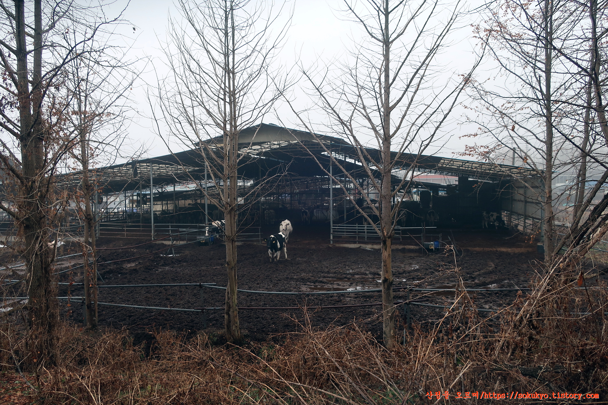 옥계마을을 지나 로하스파크로 가는 '군중로'를 따라 걸으며 '꾸에스목장'앞을 지나고