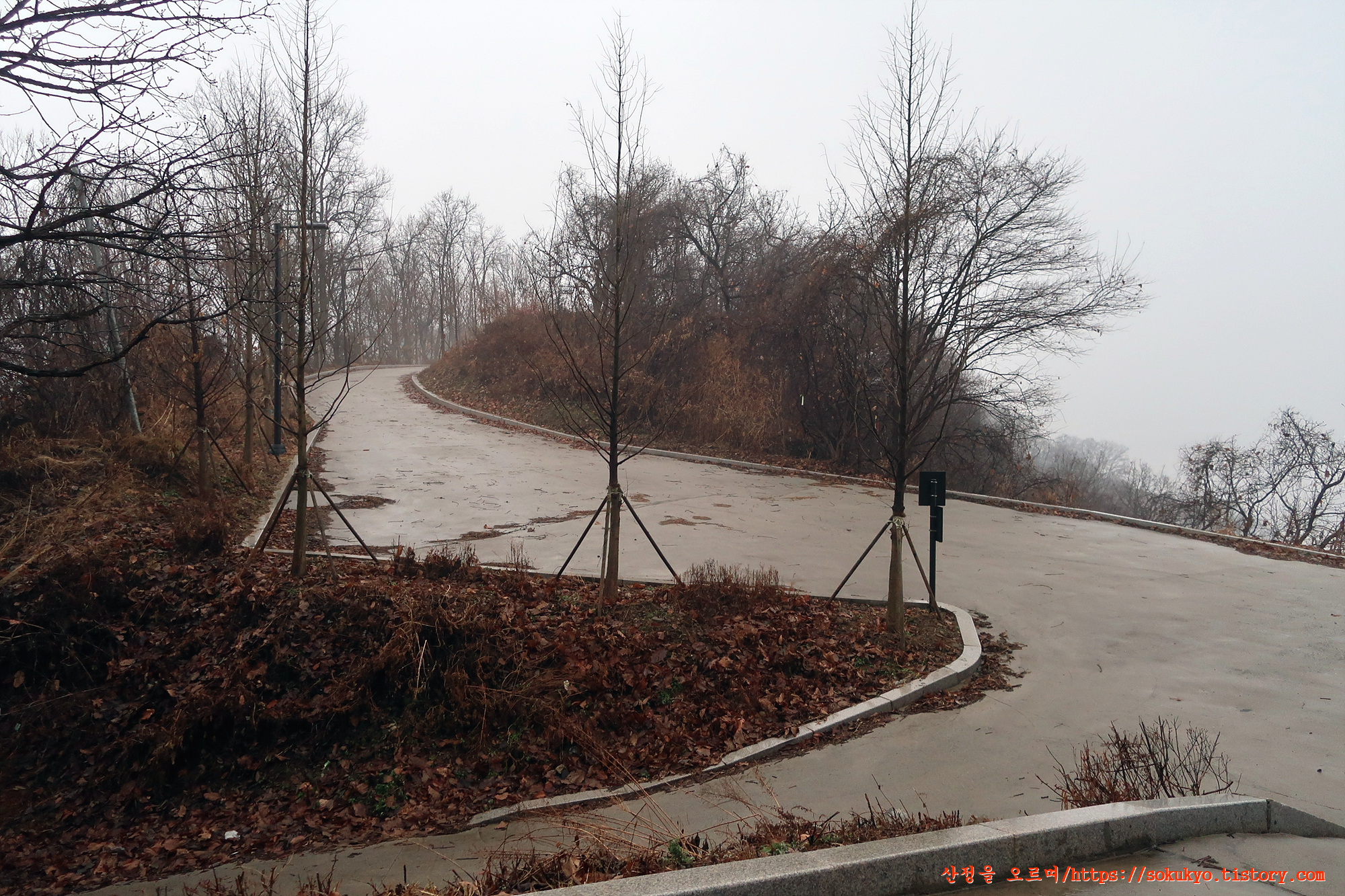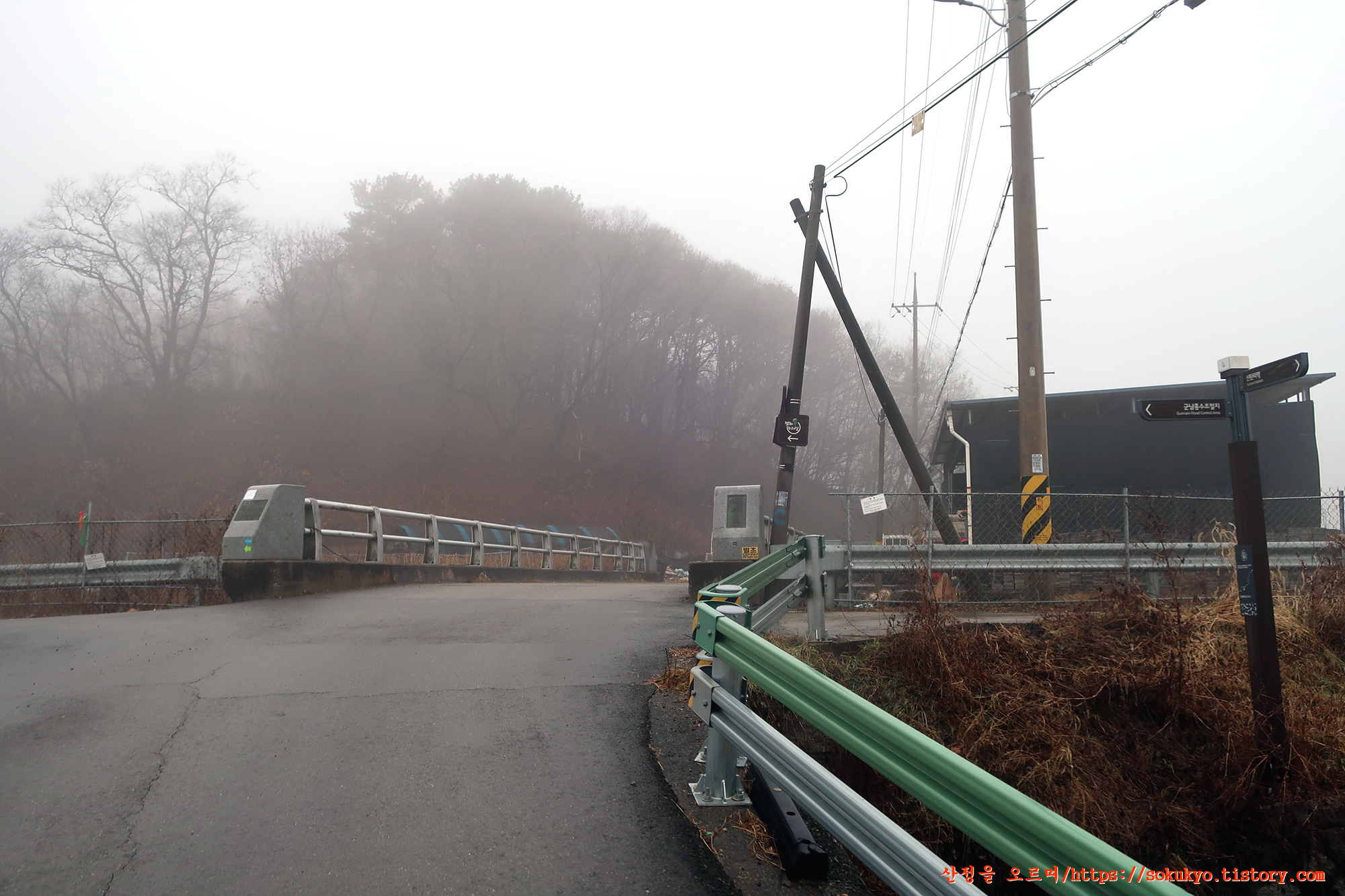 좌측으로 새롭게 생긴 세멘트포장된 임도를 따라 400m를 가면