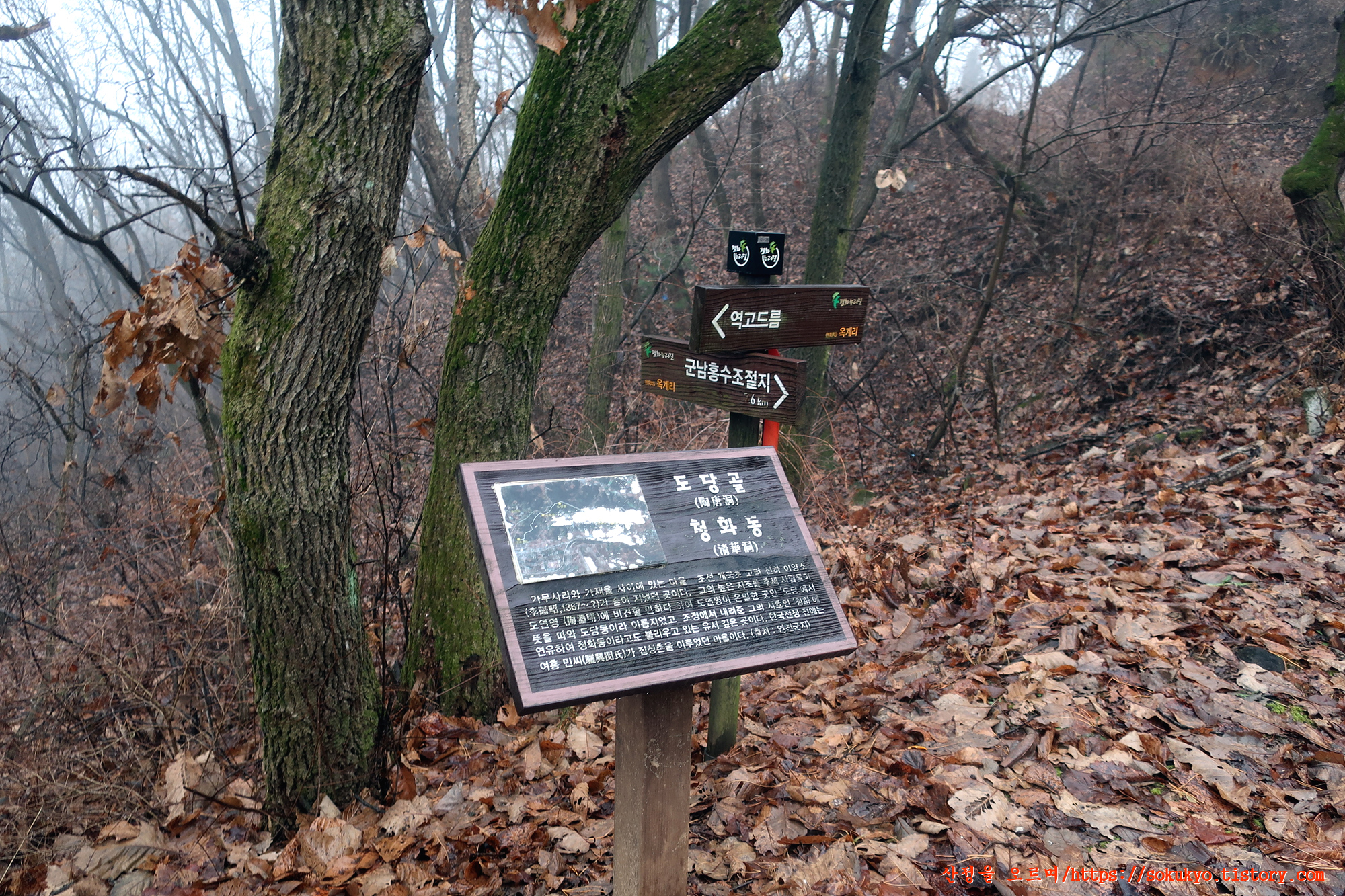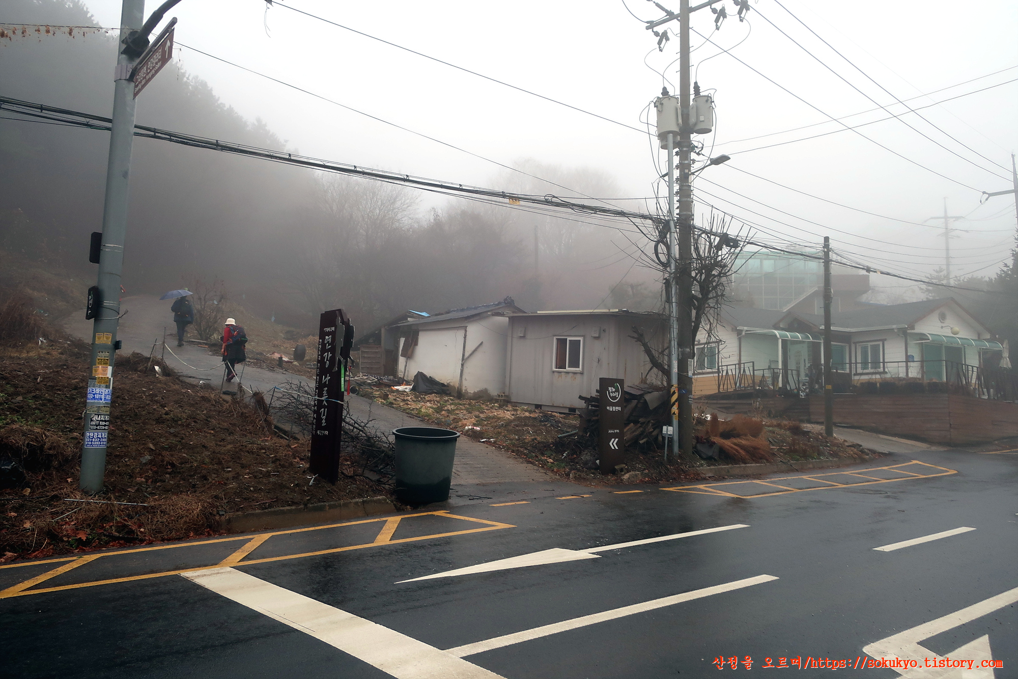 세멘트포장 임도를 따라 약350m쯤 오른후 세멘트 임도 우측으로 휘어져