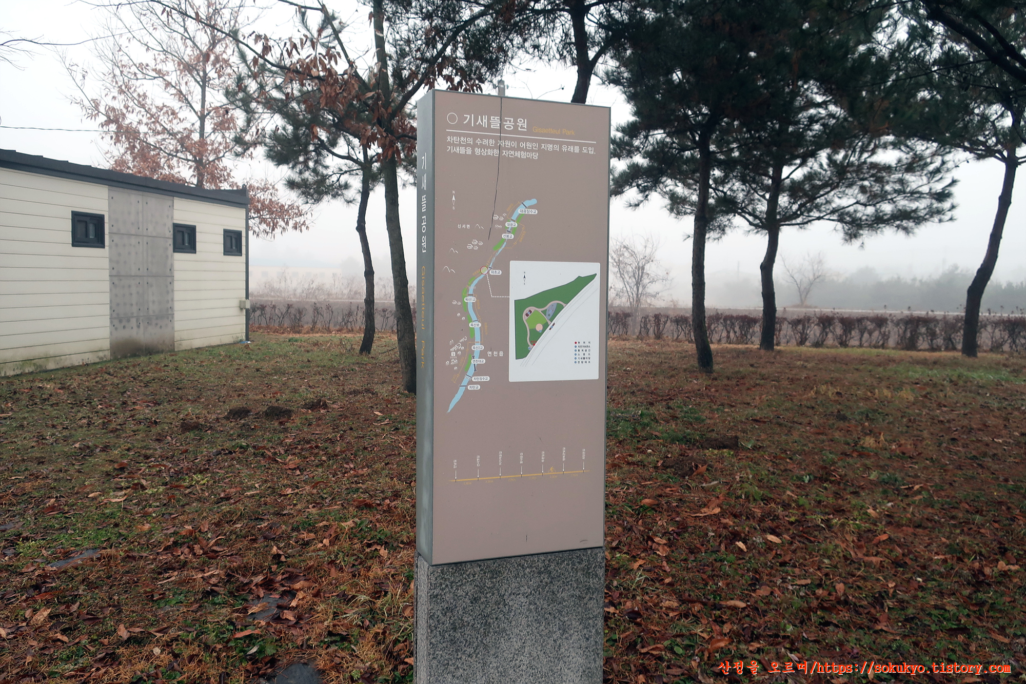우측에 '기새뜰공원'을 보며 차탄천위의 자전거도로를 걷습니다.