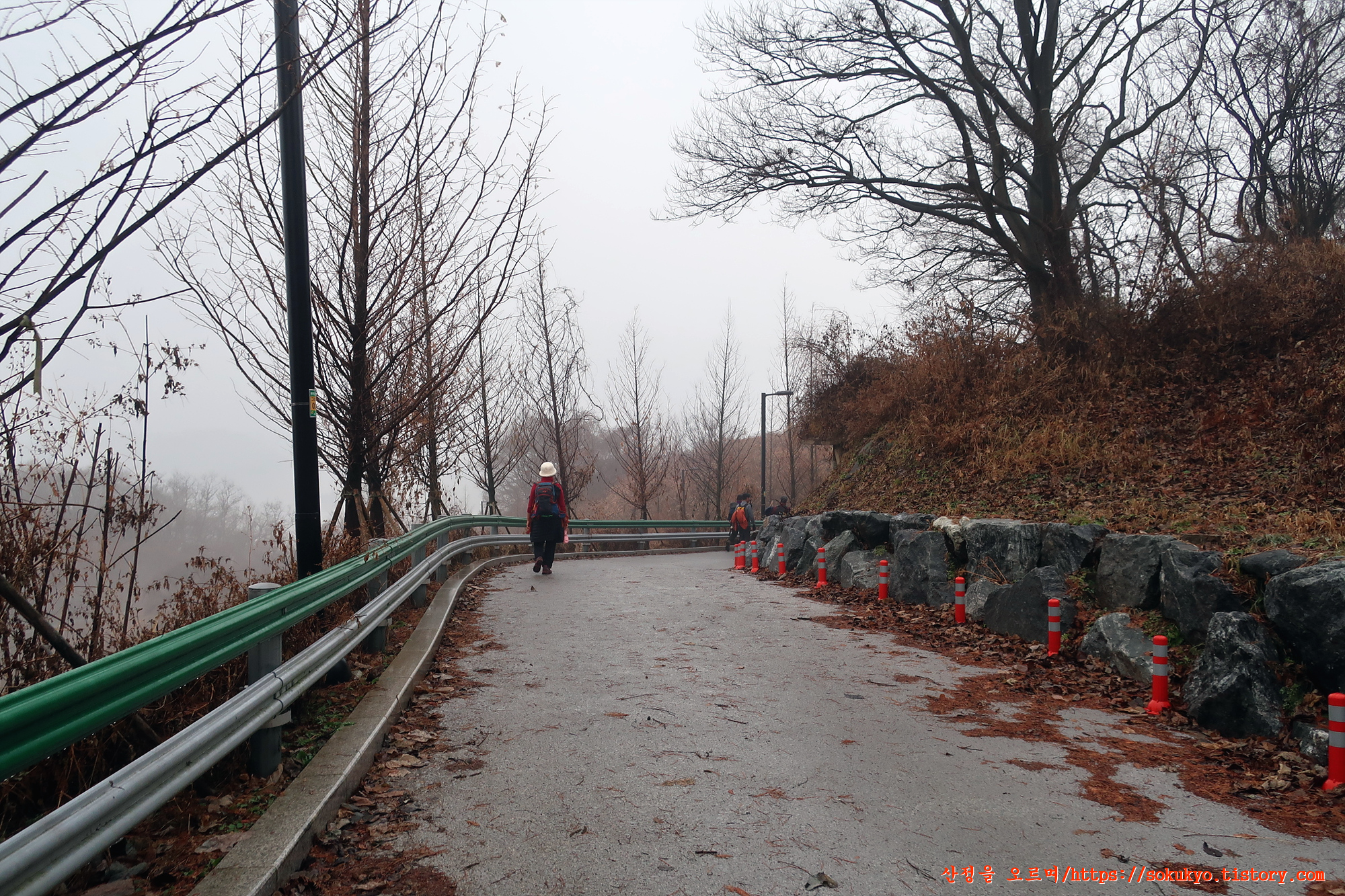 세멘트 포장 임도를 따라 그리팅맨이 있는 옥녀봉으로 향합니다.