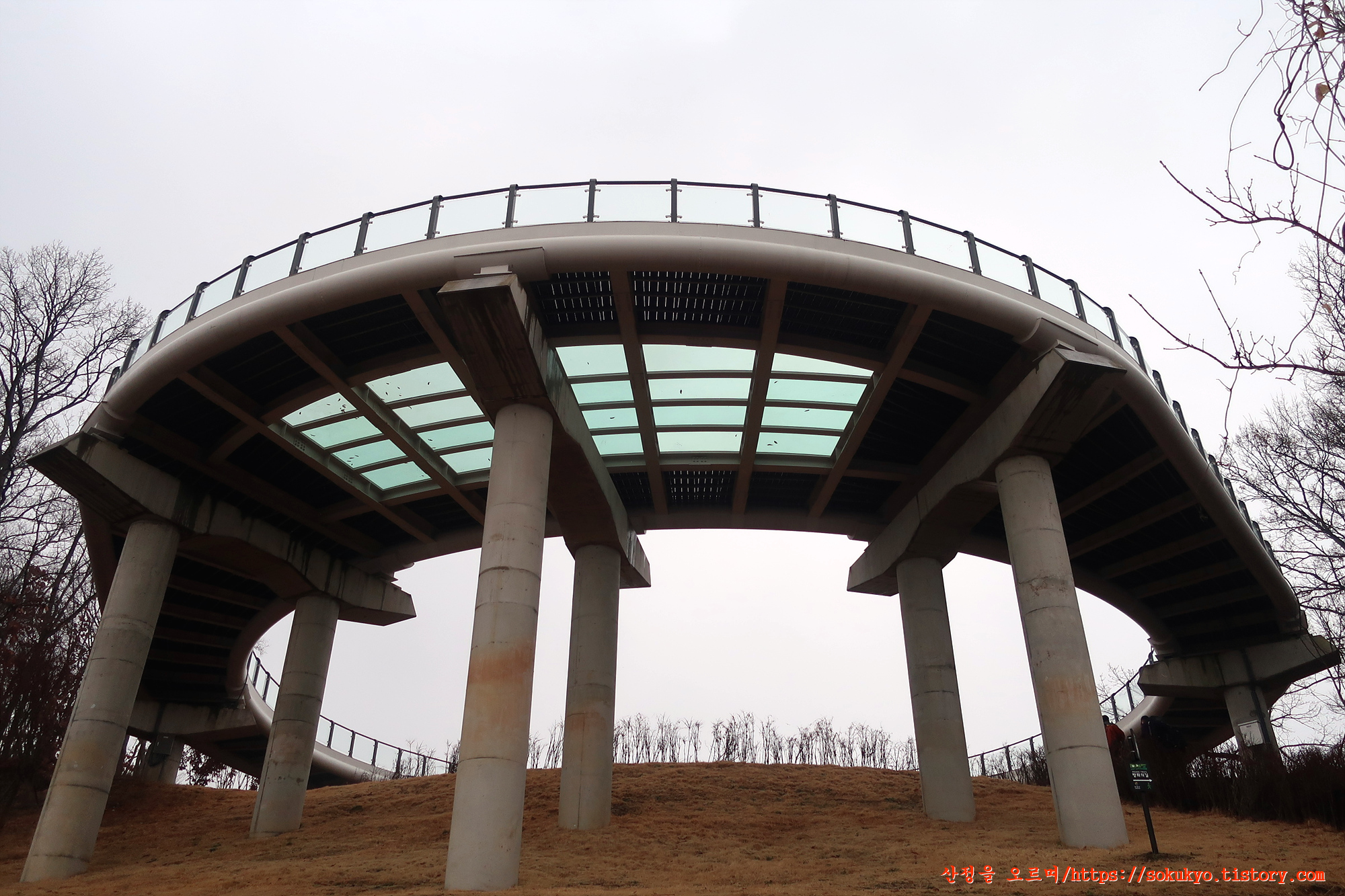 가파른 언덕을 오르면 뒤돌아보니 지나온 원형전망대가 보이네요