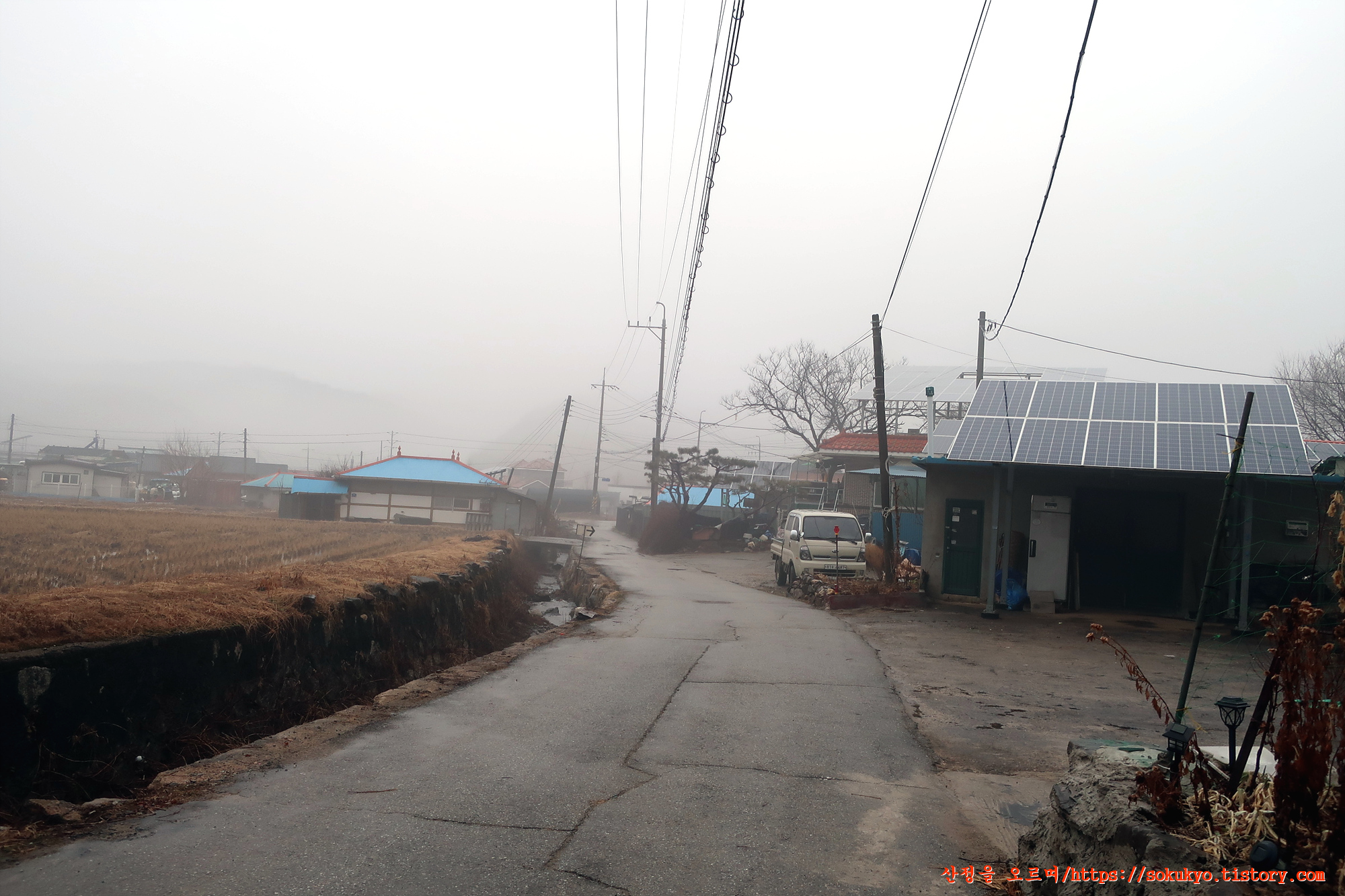 개천길에 있는 이정표에서 좌측으로 휘어져 상리로 향합니다.