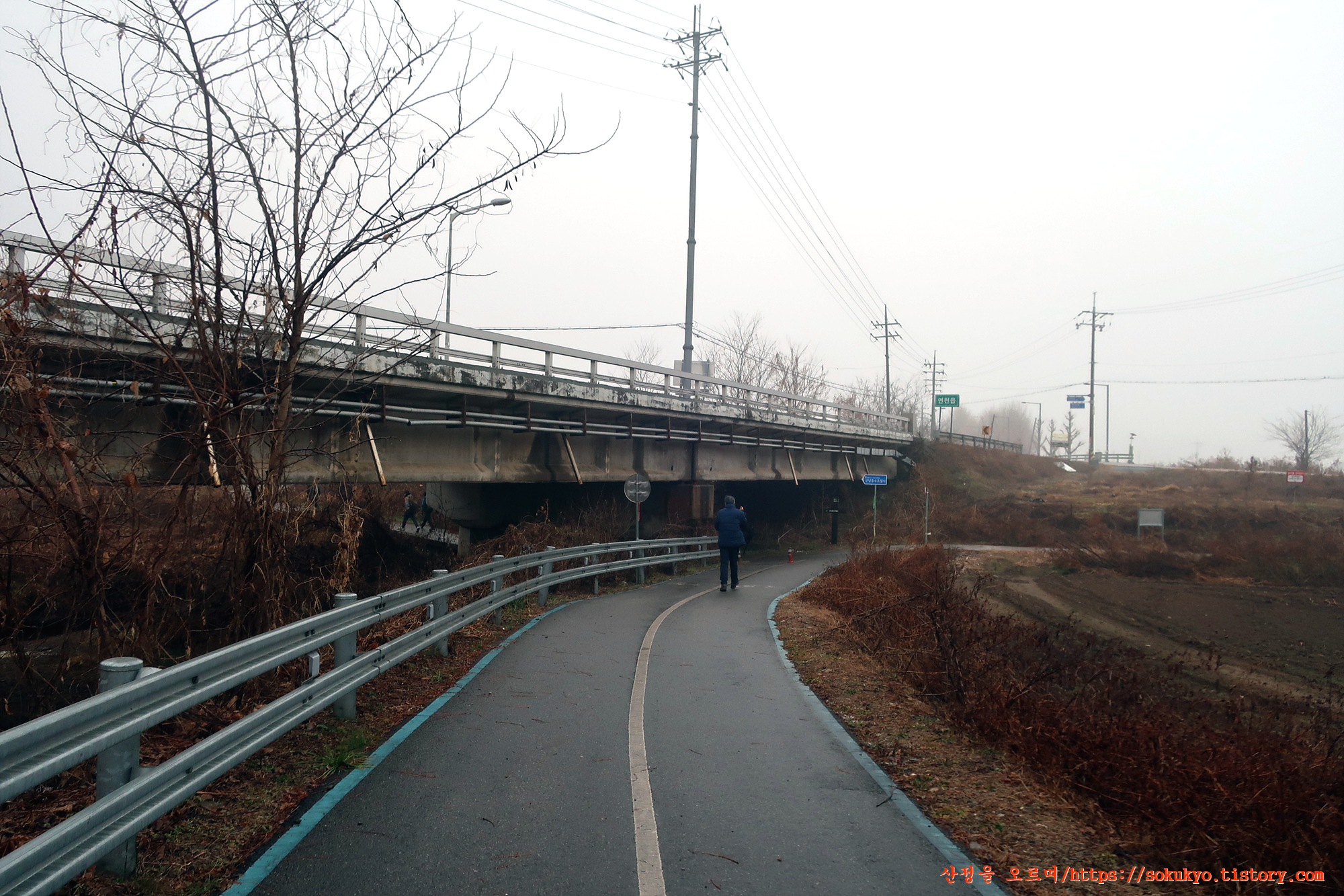 와초교를 지나 차탄천위의 자전거도로를 따라 걷습니다.