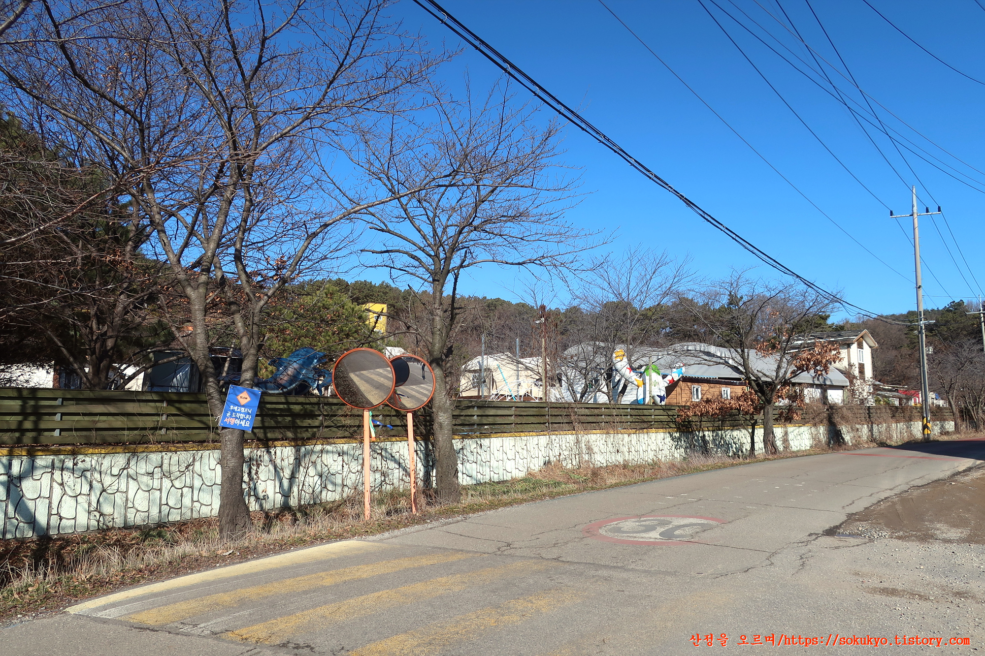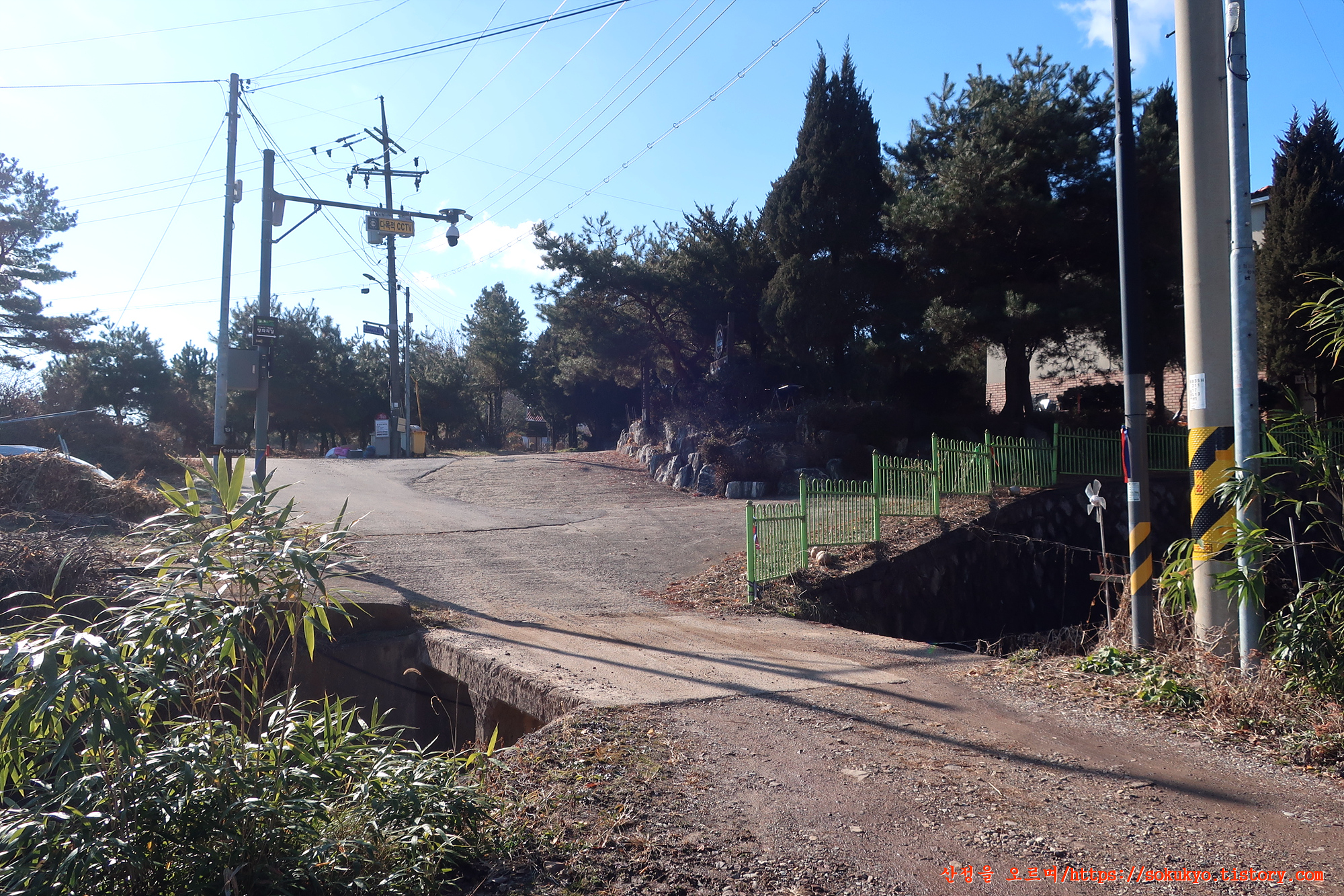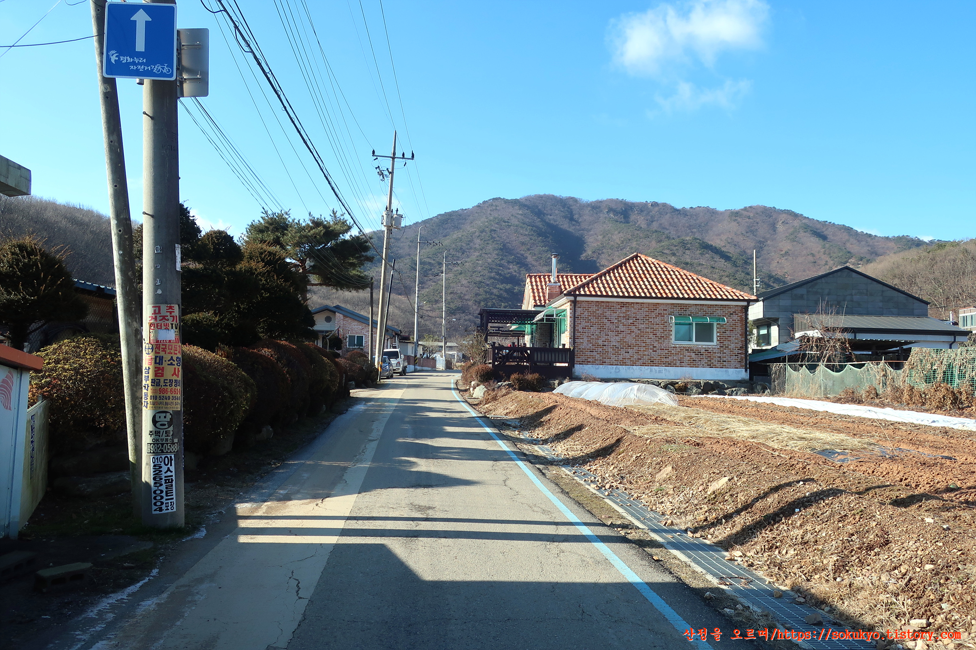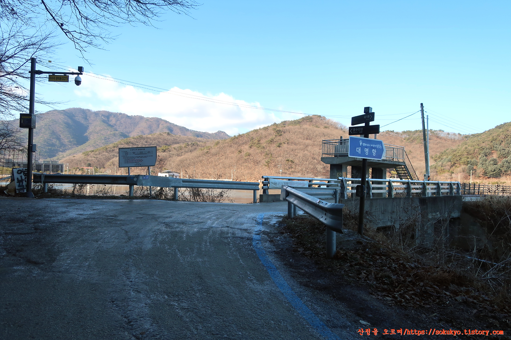 이정표가 있는 삼거리에서 좌측으로 휘어져