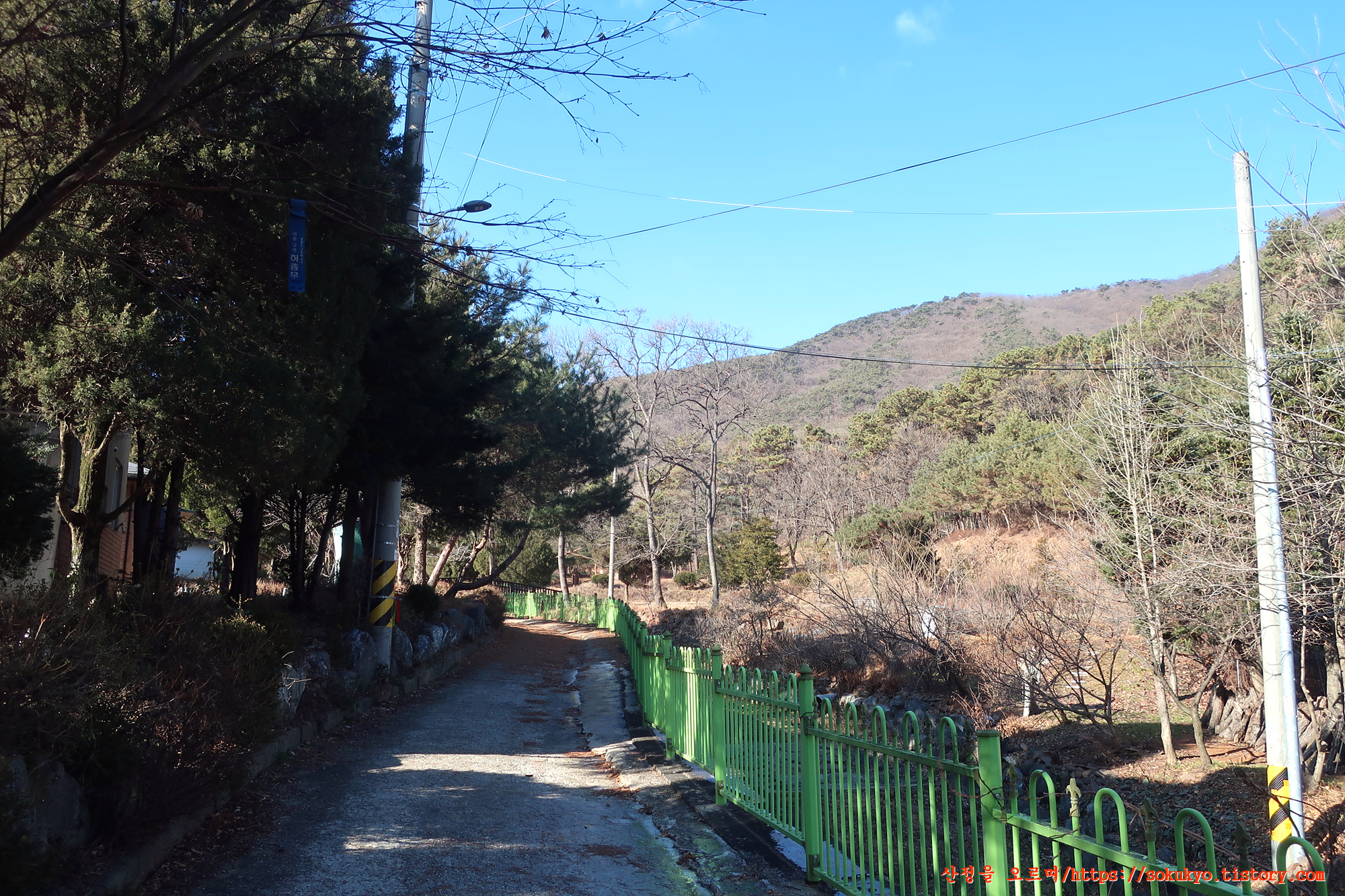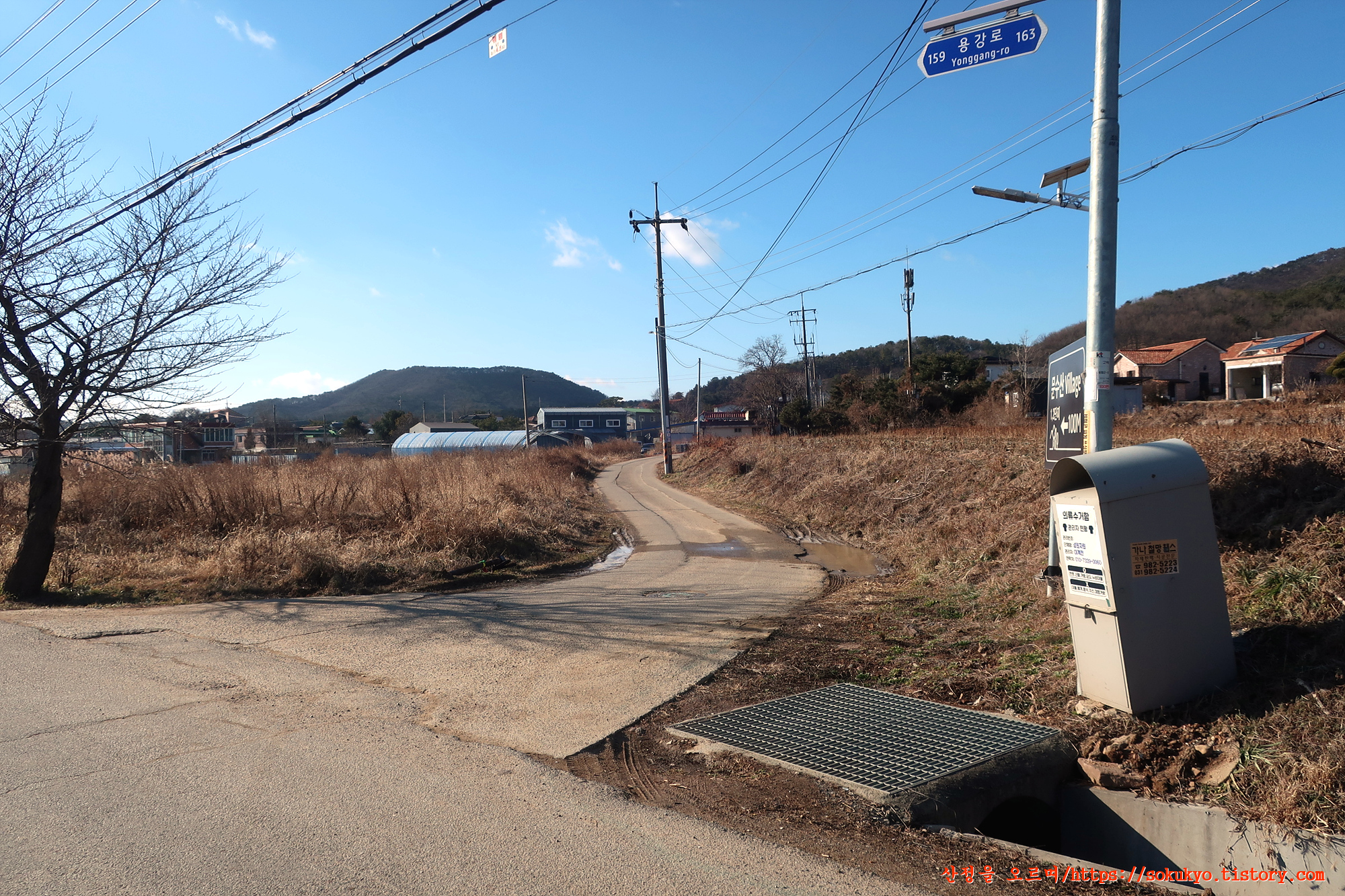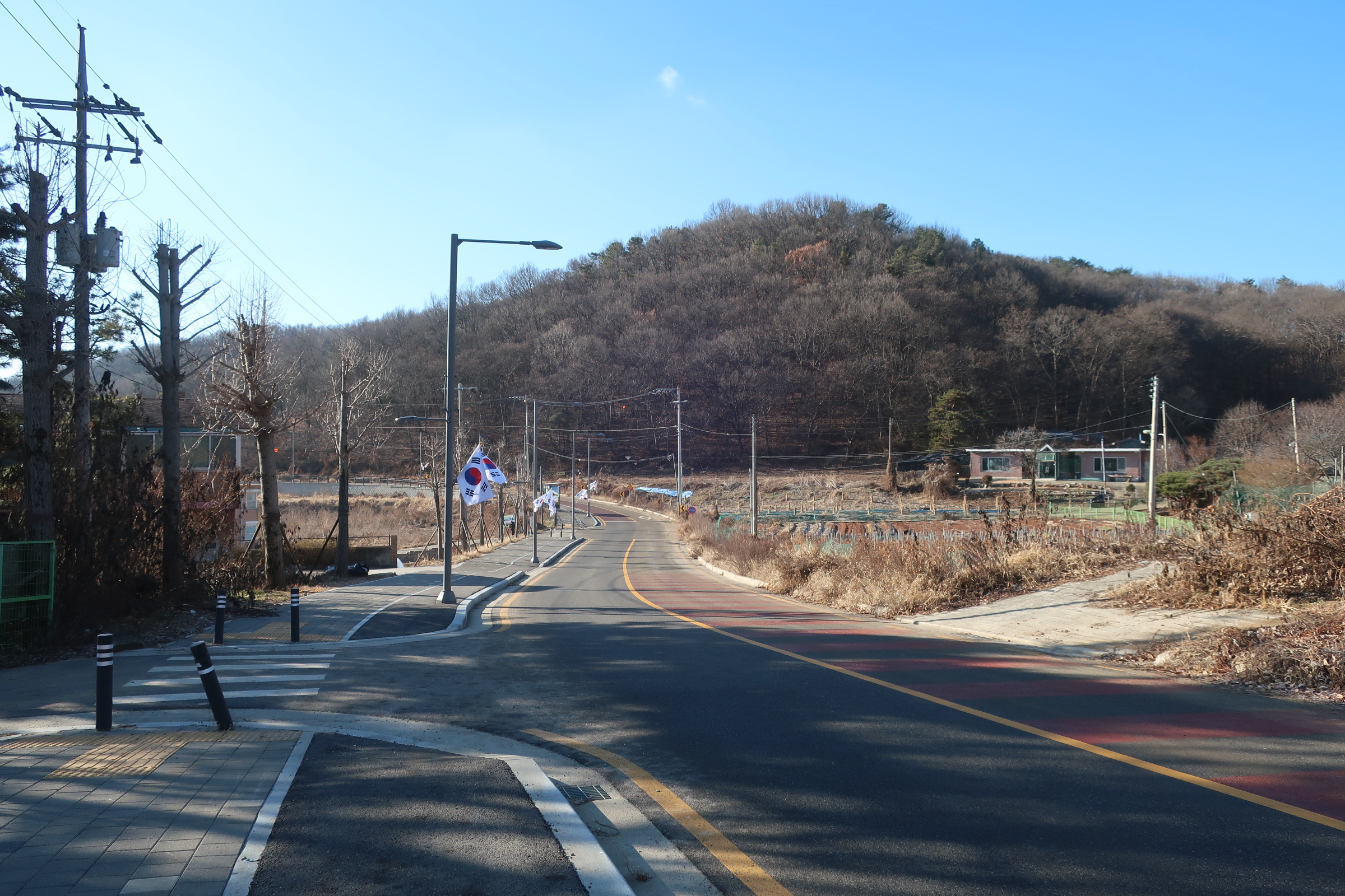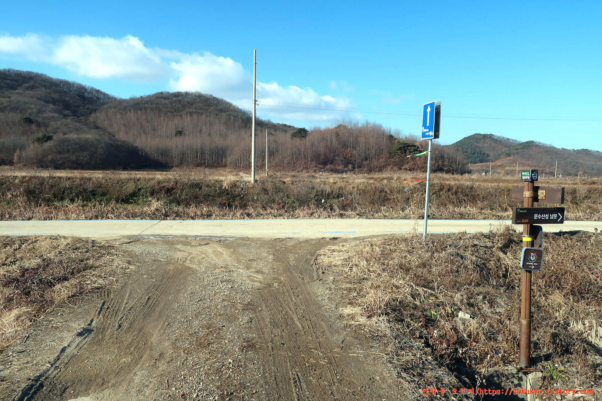 이정표가 있는 삼거리에서 좌측으로 휘어져