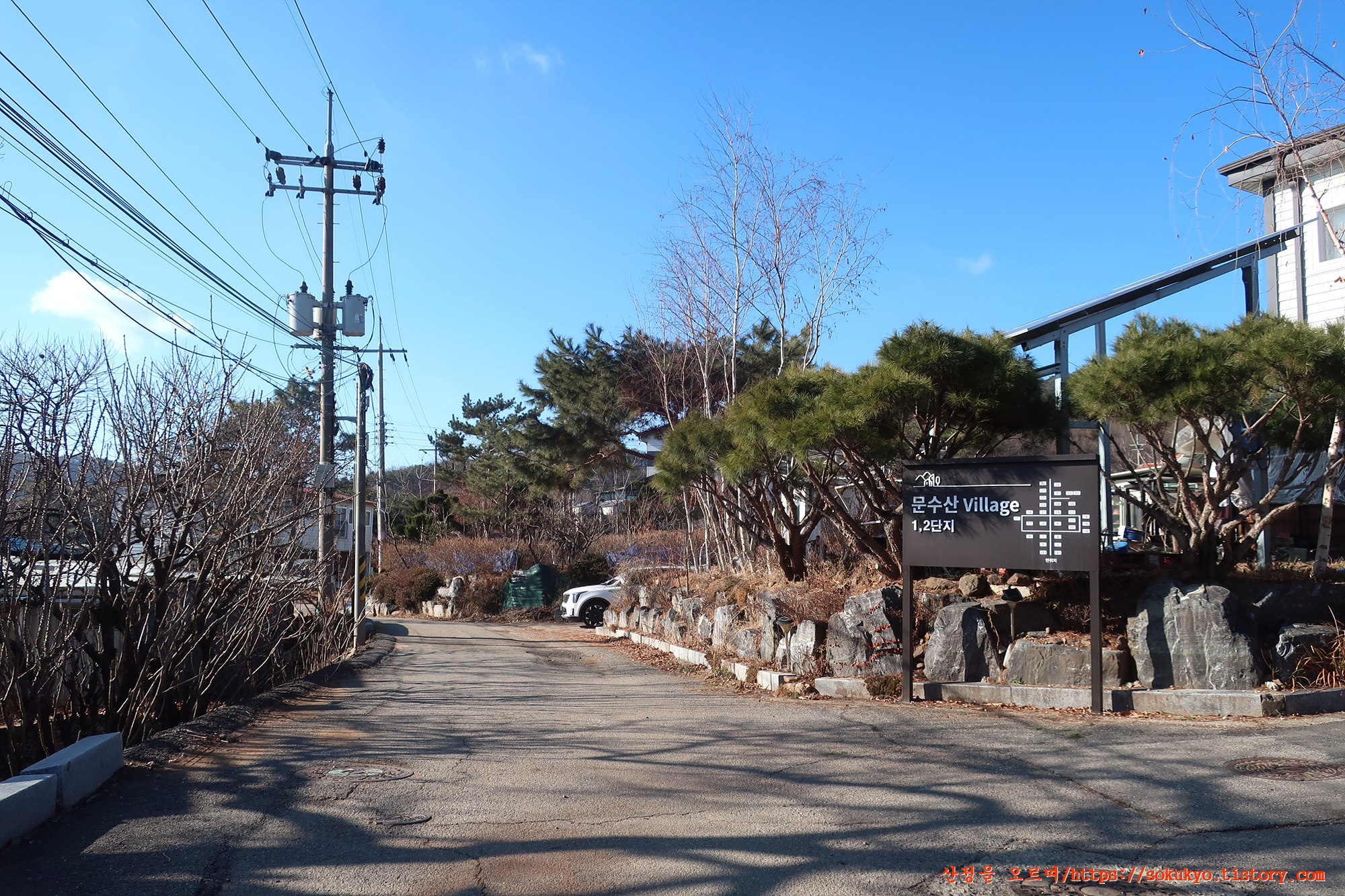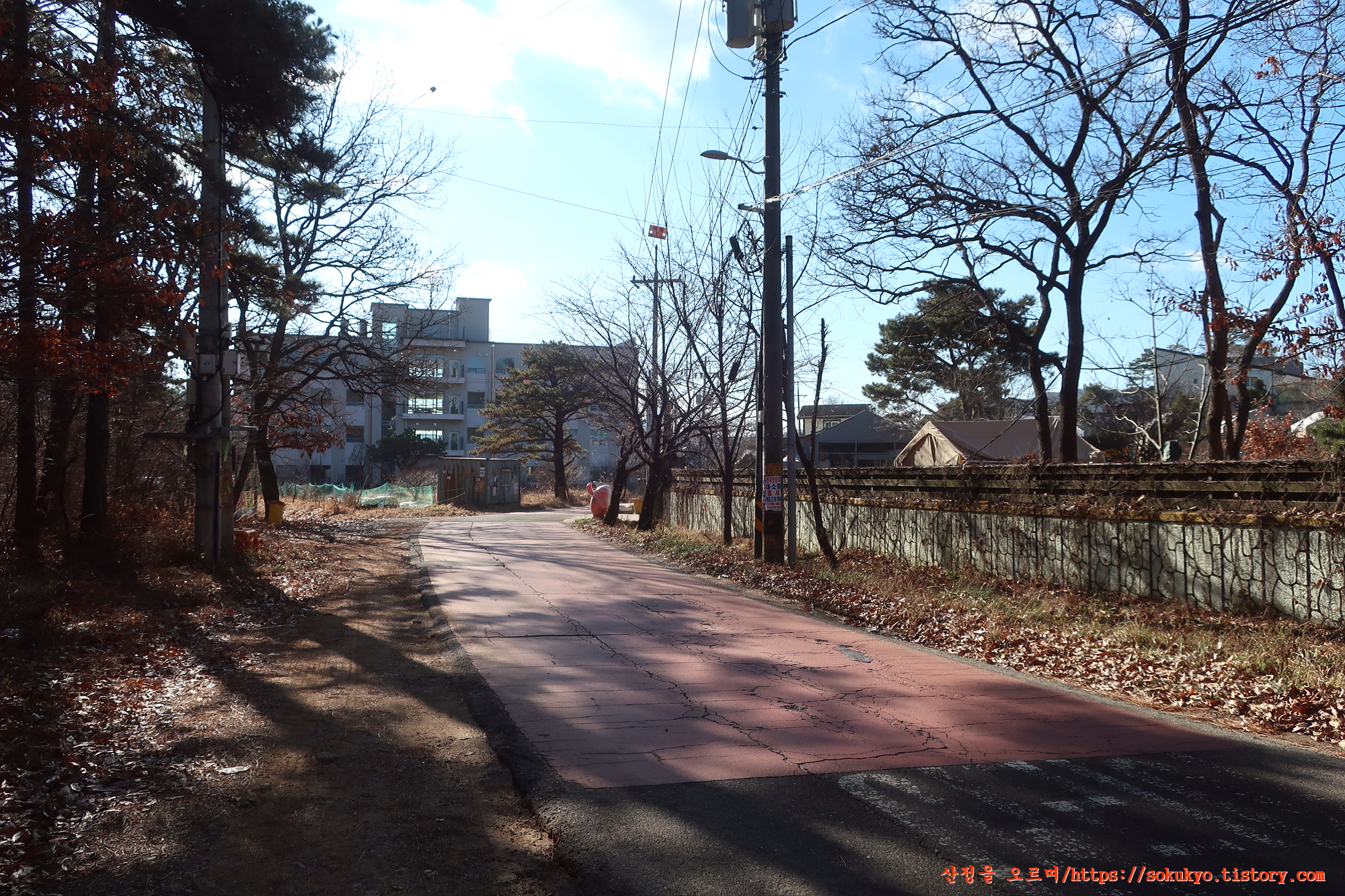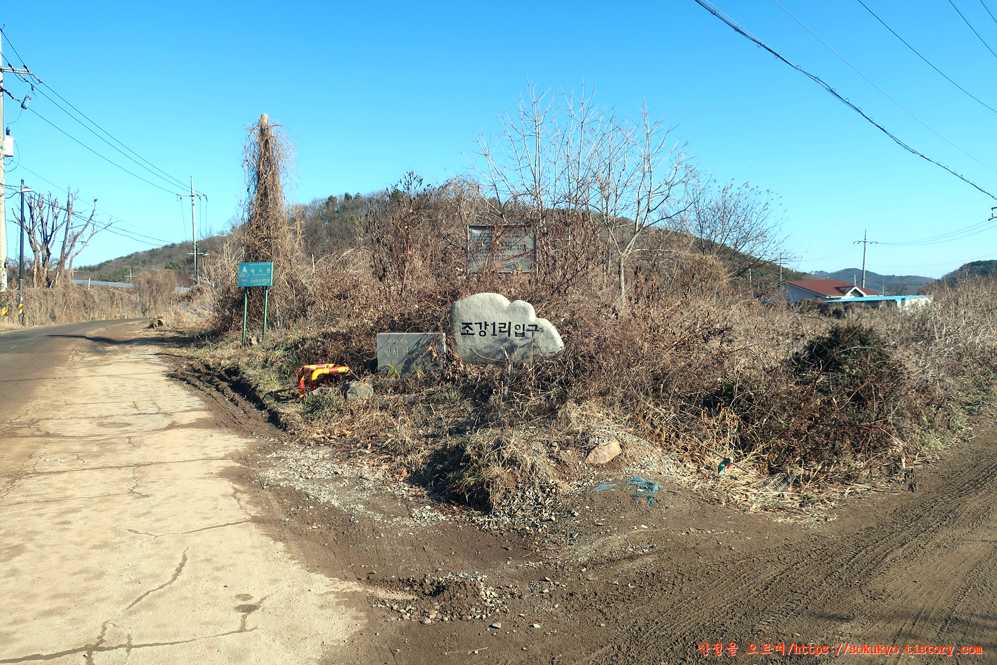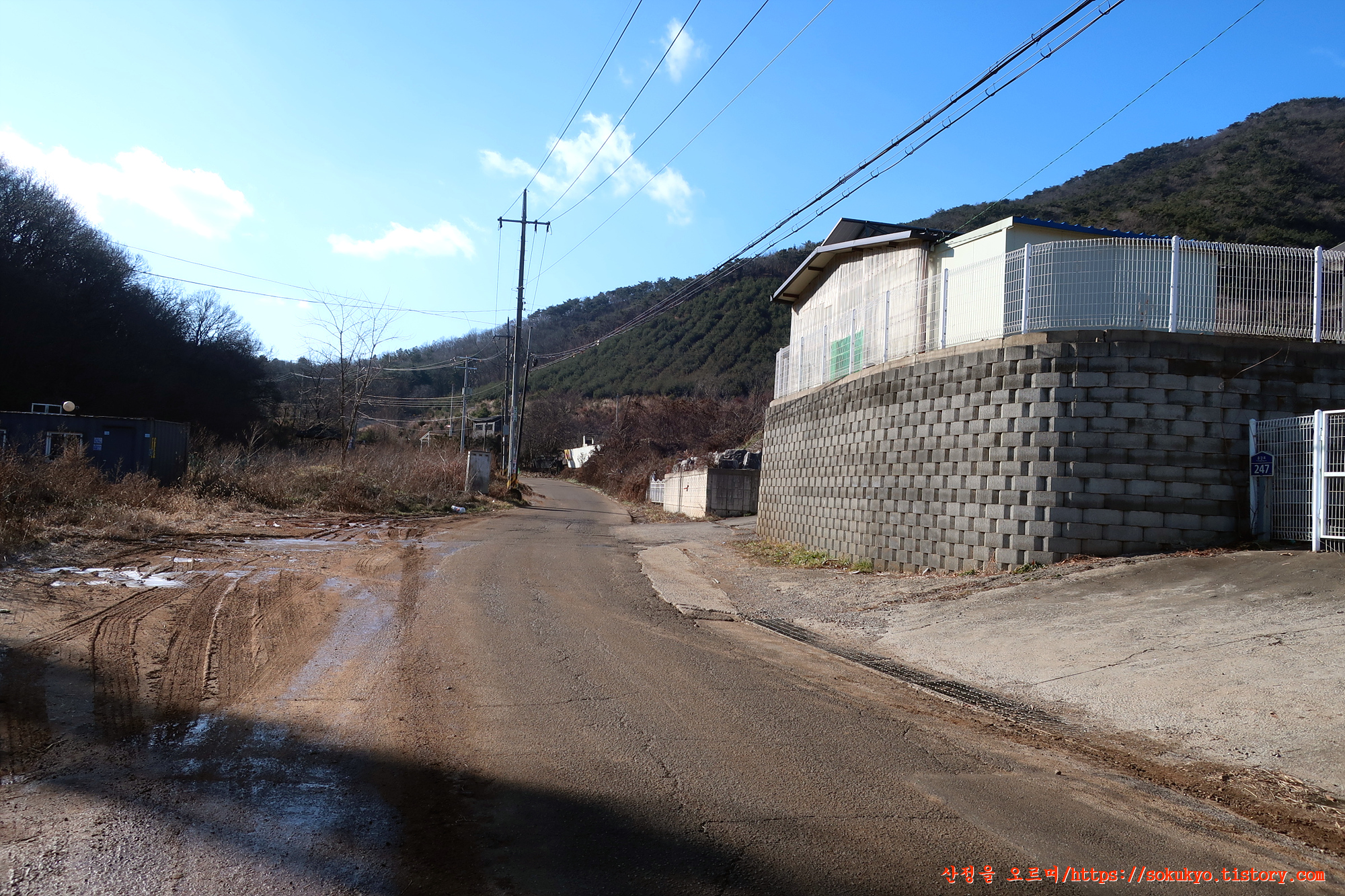 이정표가 있는 삼거리에서 좌측으로 휘어져