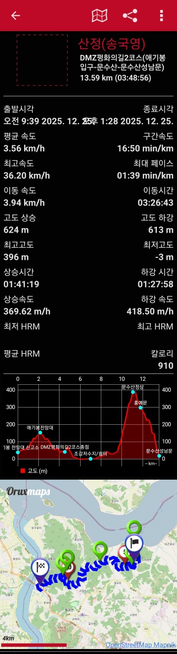 ▶ 오록스맵 기록 : 13.59km / 3시간48분(09:39~13:28)