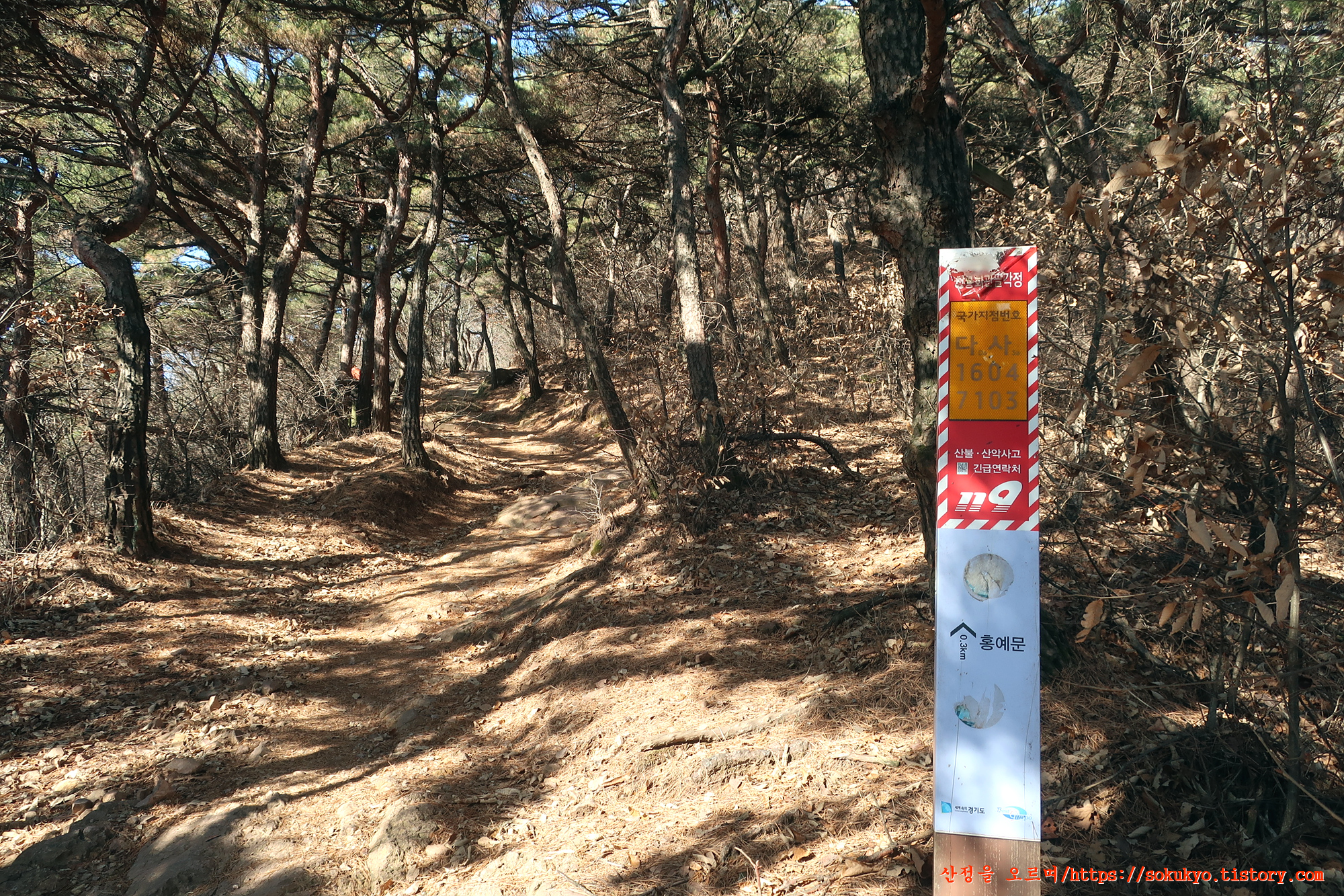 홍예문이 0.3km 남아 있다는 표식이 되어 있는 국가지점번호를 지납니다.