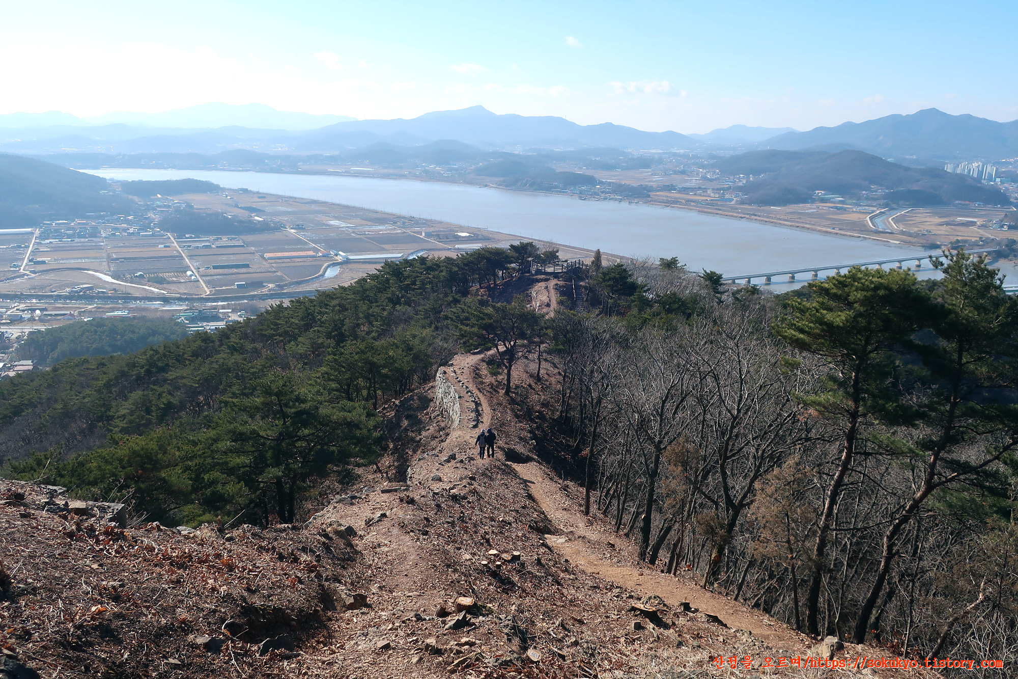 유유히 흐르고 맑은 날 강 건너엔 손에 닿을 듯 북한 개성의 송악산까지 볼 수 있어 산행과