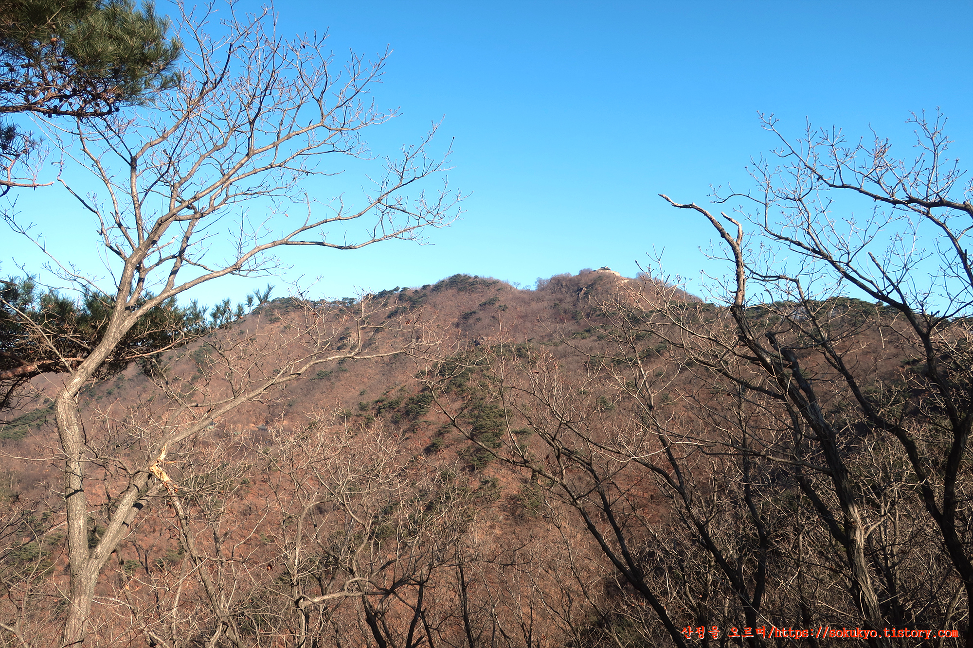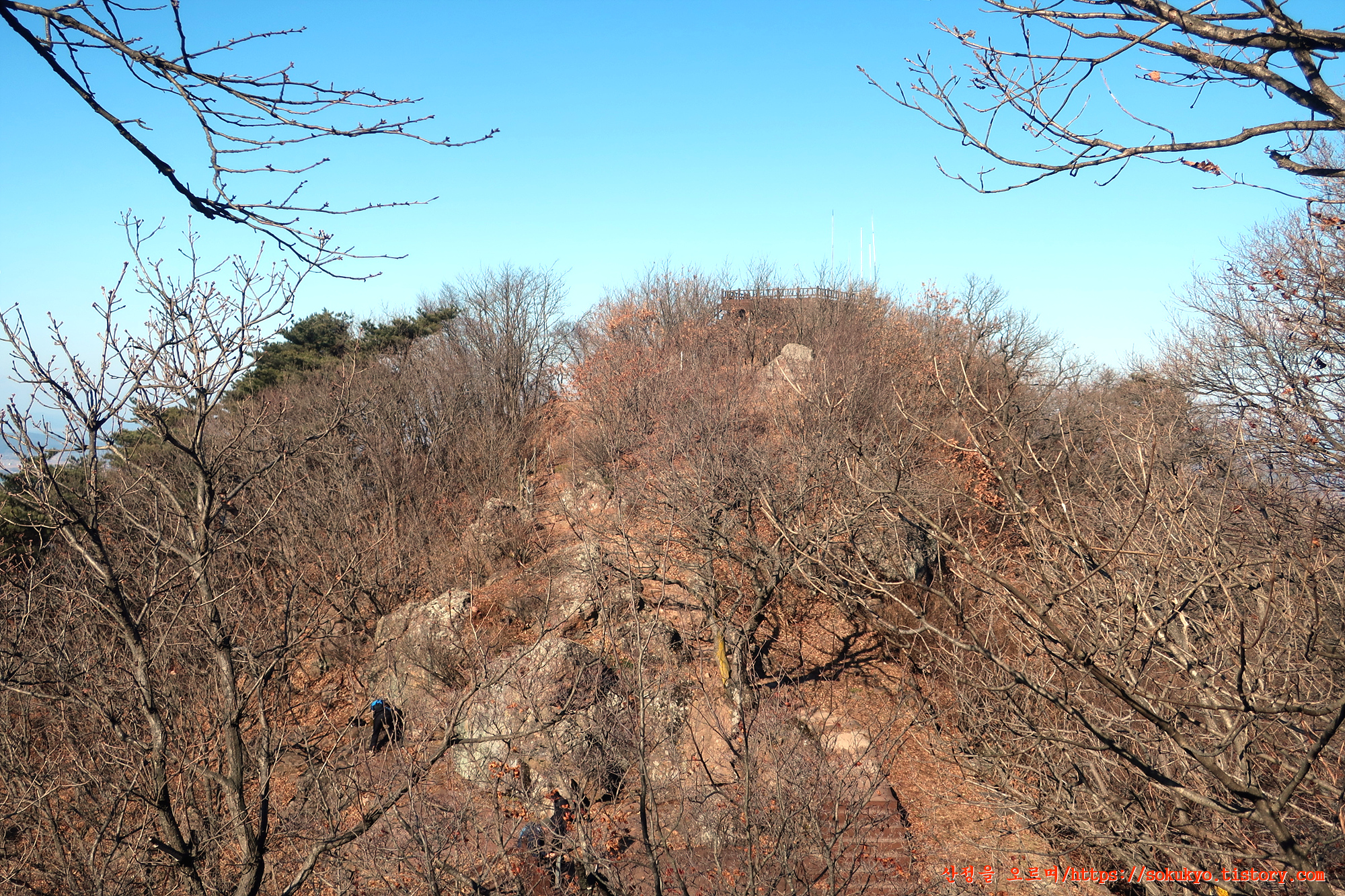 문수산성 남문으로 내려가다가 뒤돌아본 문수산 정상의 장대쪽 풍경