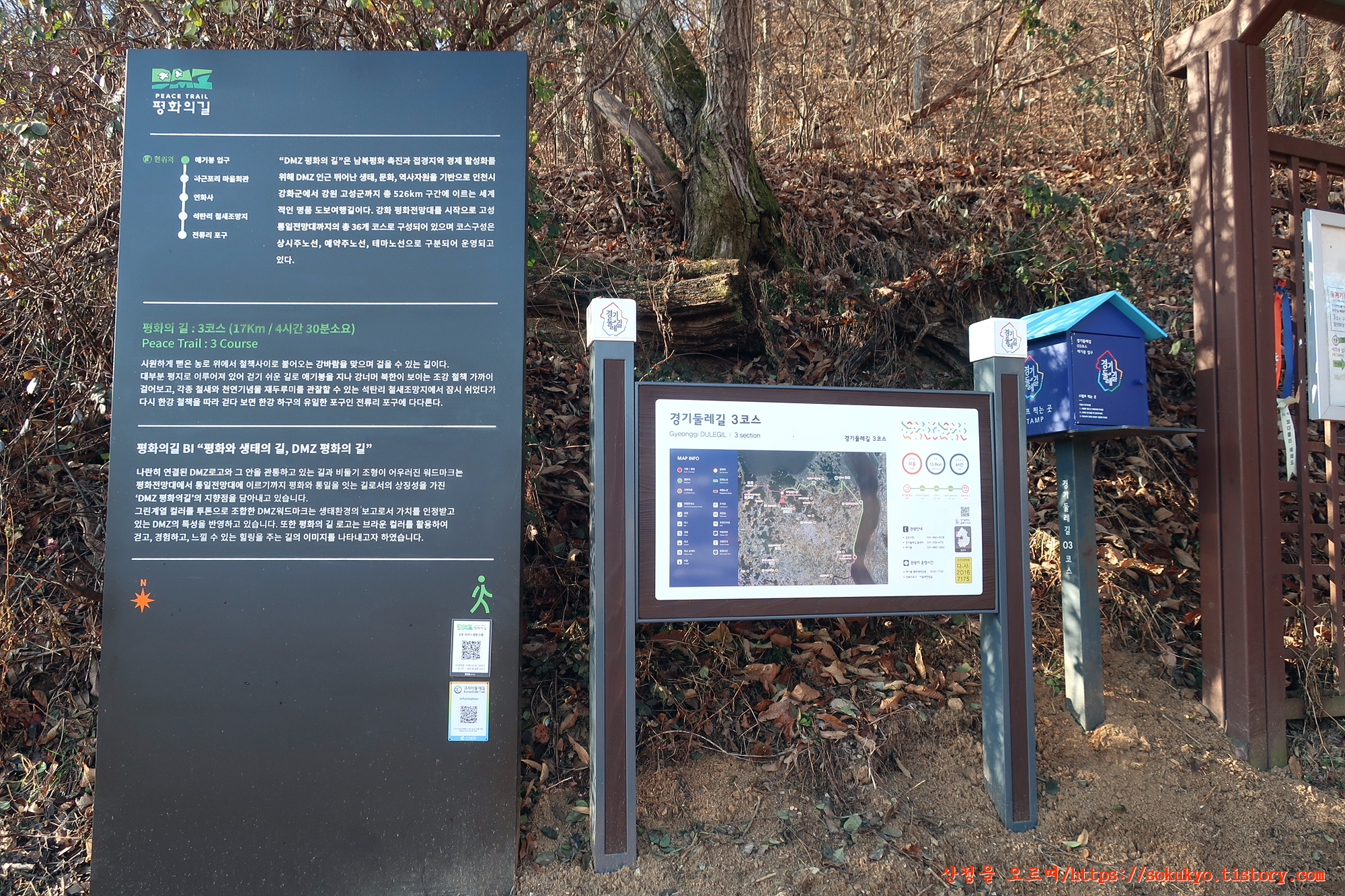 13:28 DMZ평화의길2코스 시점에는 경기평화누리길 안내판과 스탬프함
