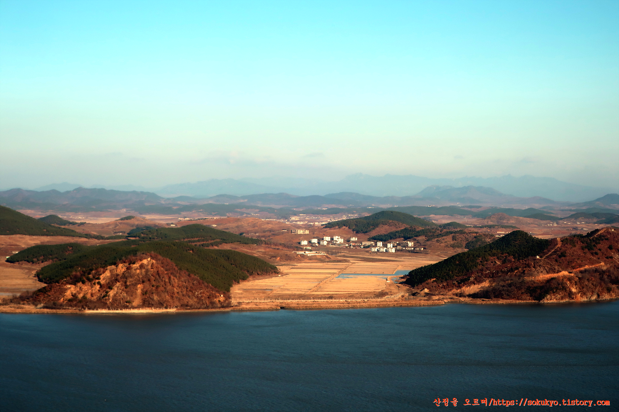 날씨가 좋아 선전마을 뒤쪽으로는 개성의 송악산이 흐릿하게 조망되네요