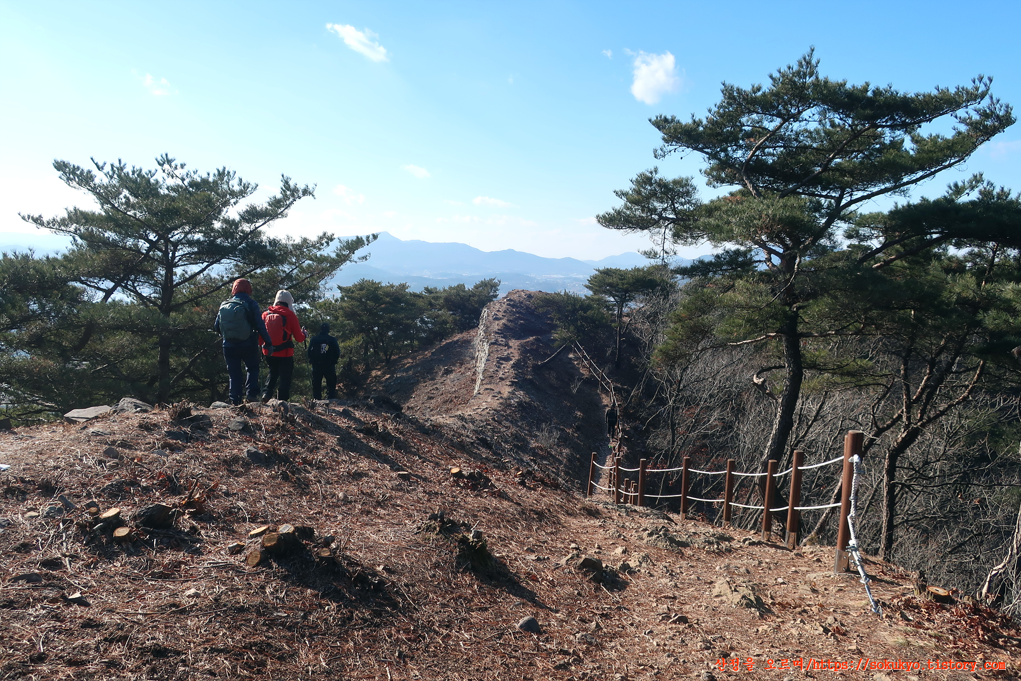 성곽을 따라 문수산성 남문으로 내려가는 길은 오르내림을 반복하며 고도를 낮춥니다.