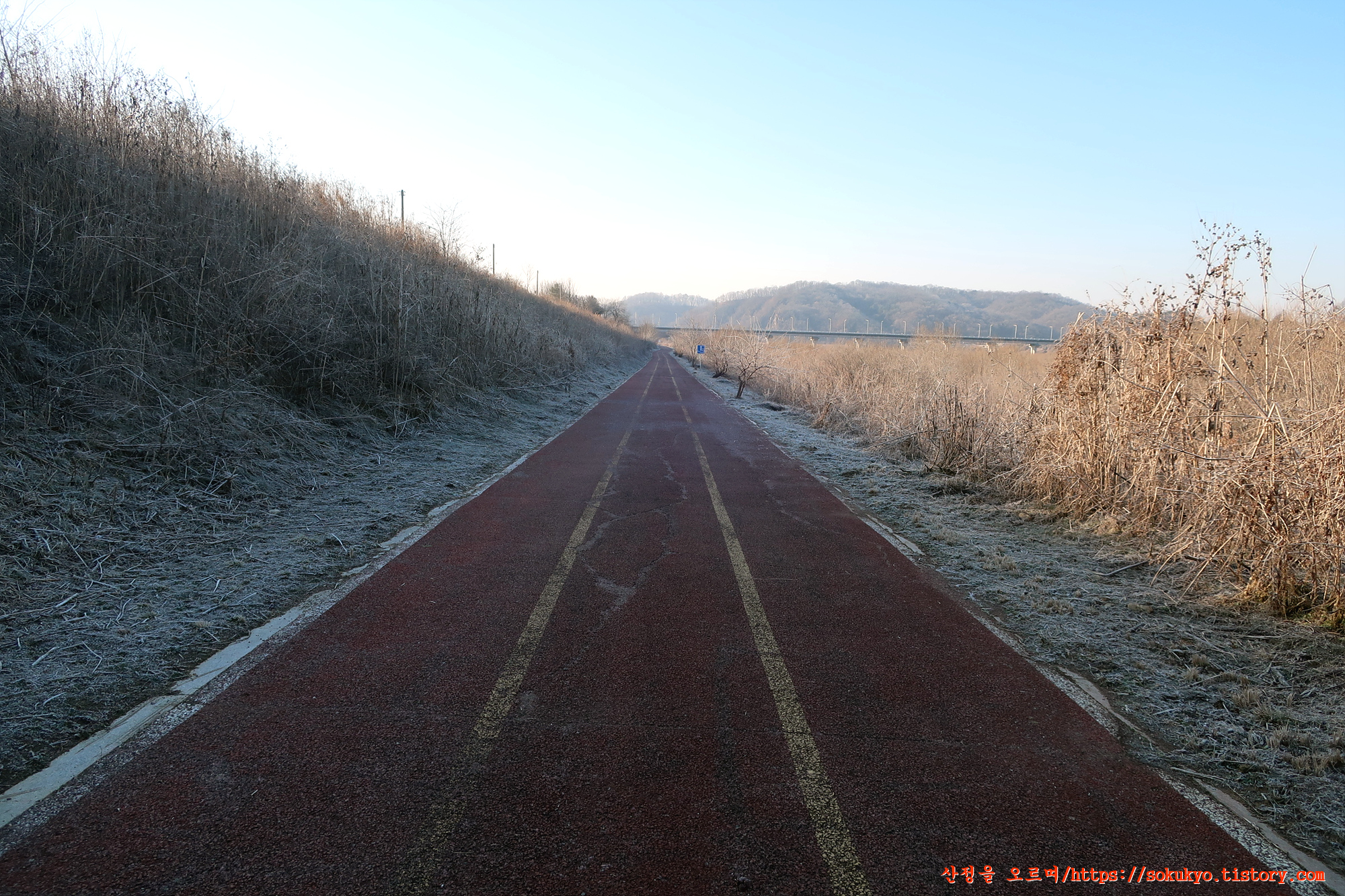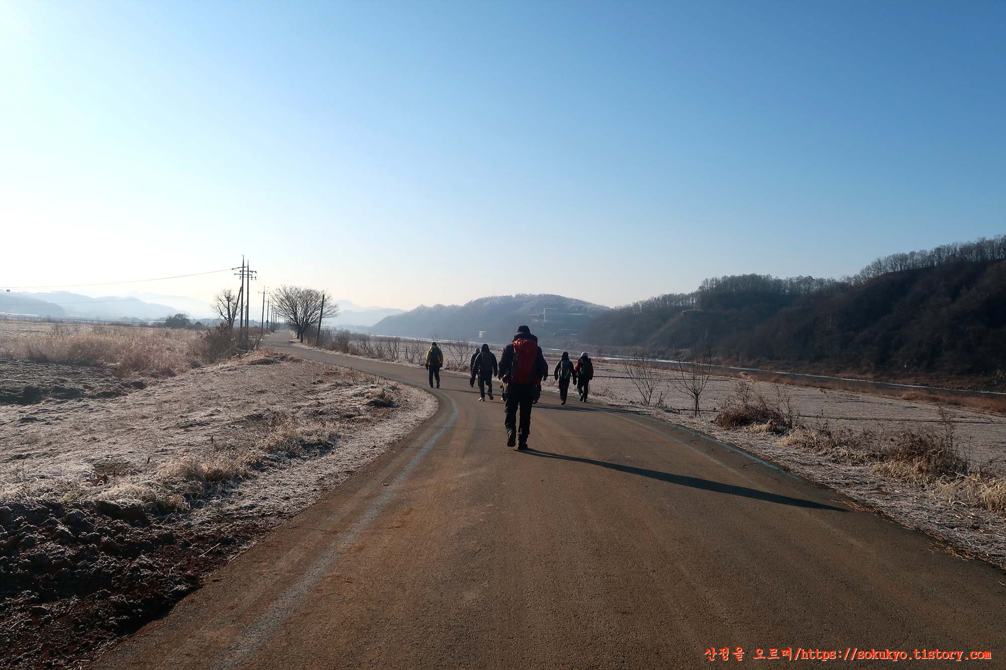 우정리로 들어서 다시 임진강을 좌측에두고 임진강변을 따라 진행하여 강 건너편으로