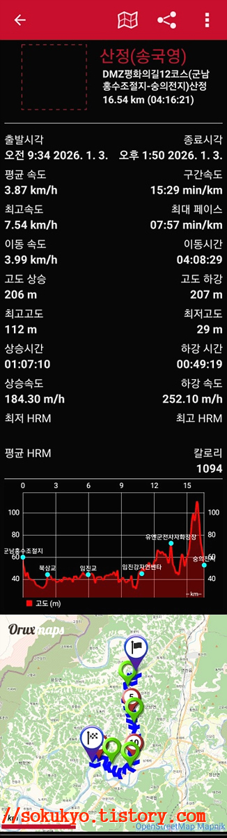 ▶ 오록스맵 기록 : 16.54km / 04시간16분(09:34~13:50)