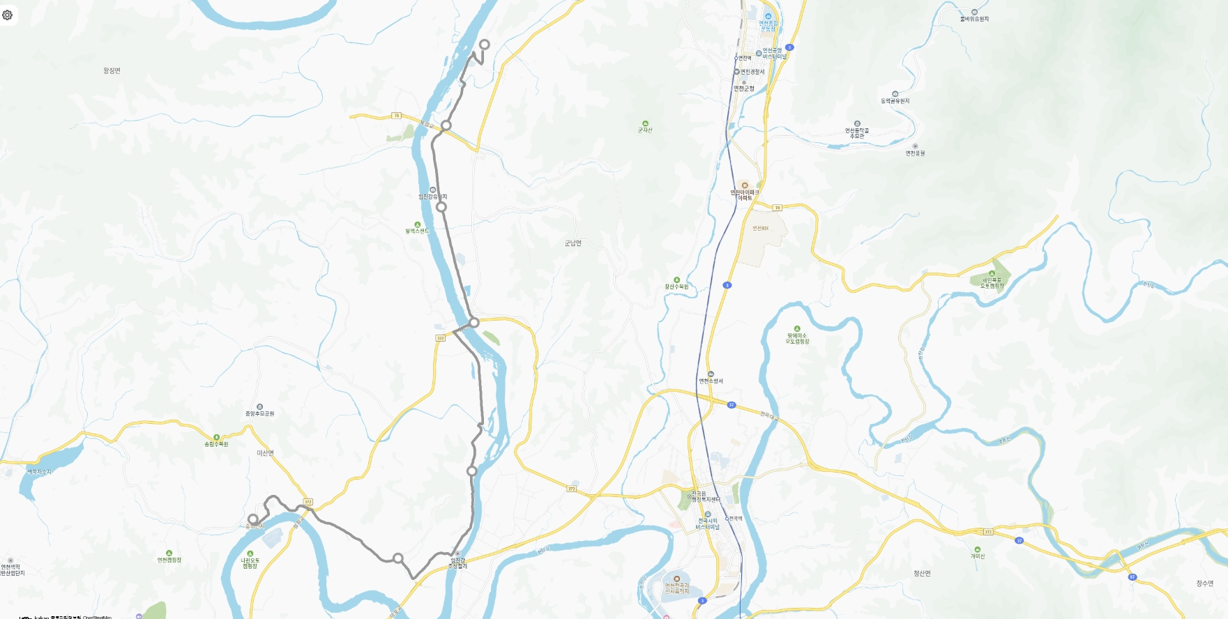 - 종점(군남홍수조절지입구) : 경기도 연천군 군남면 솔너머길 65-2