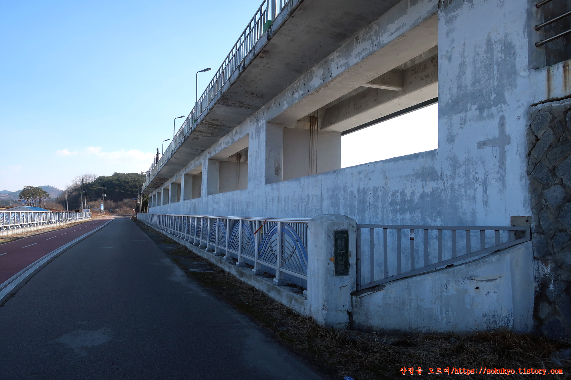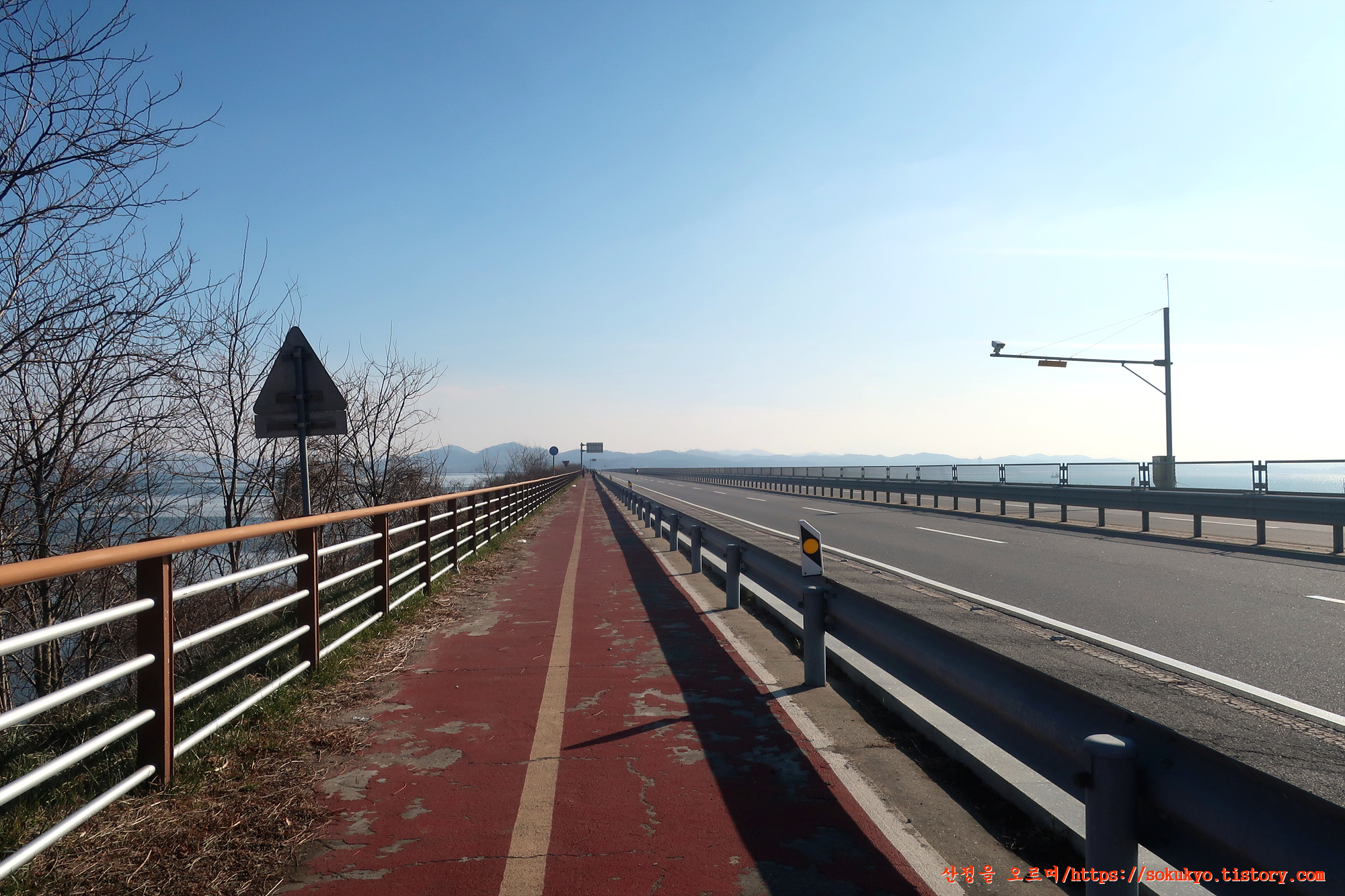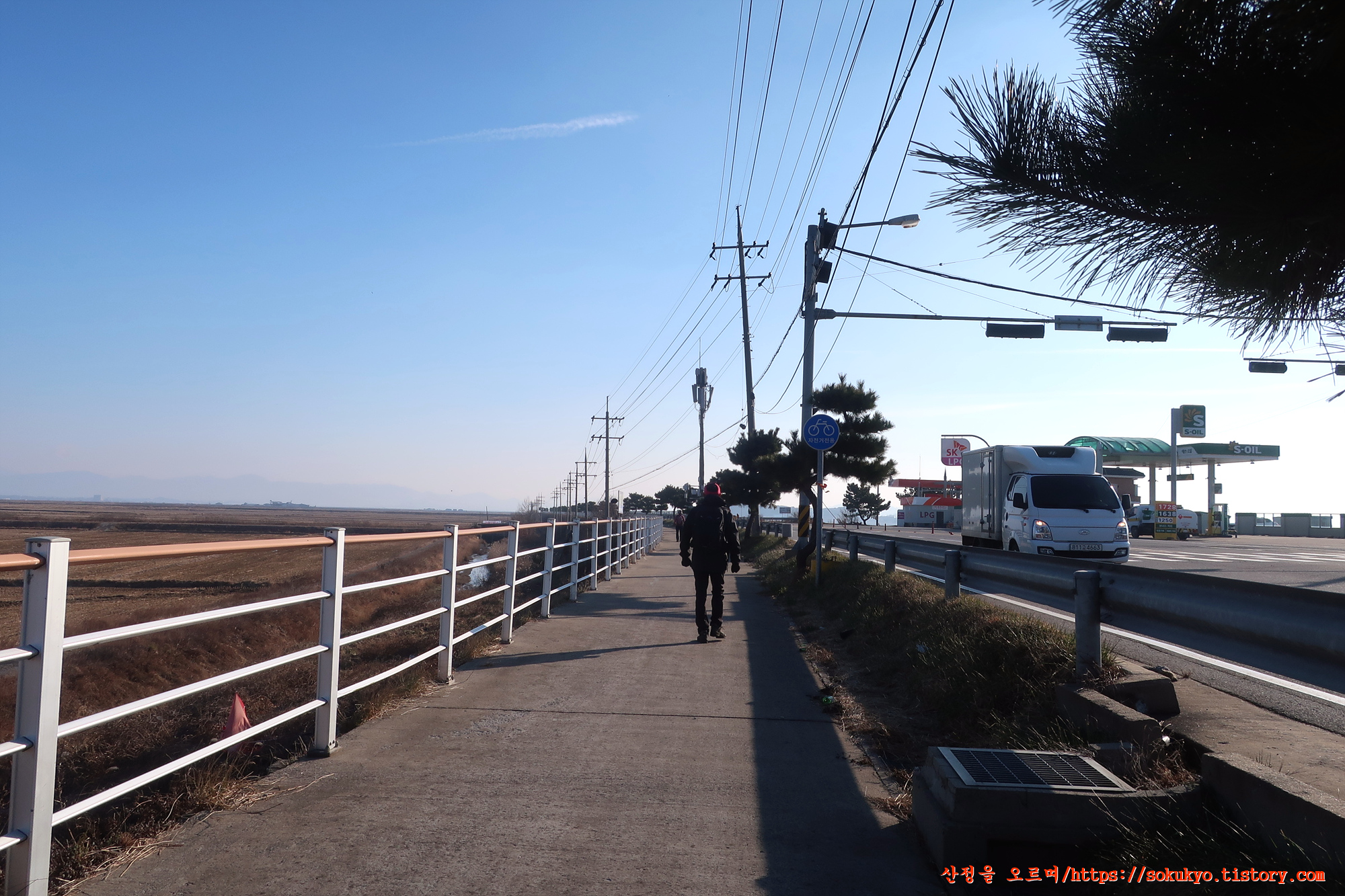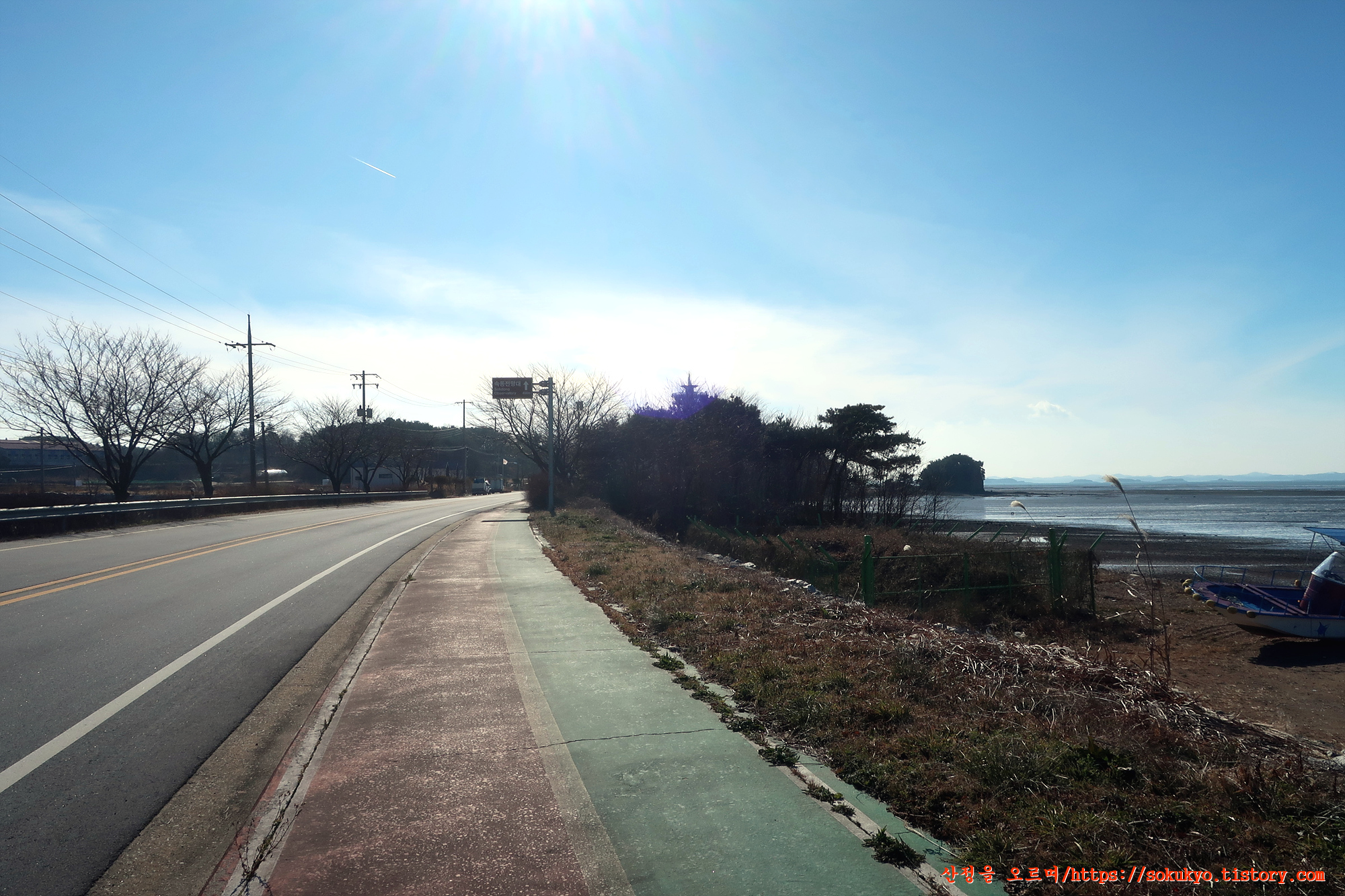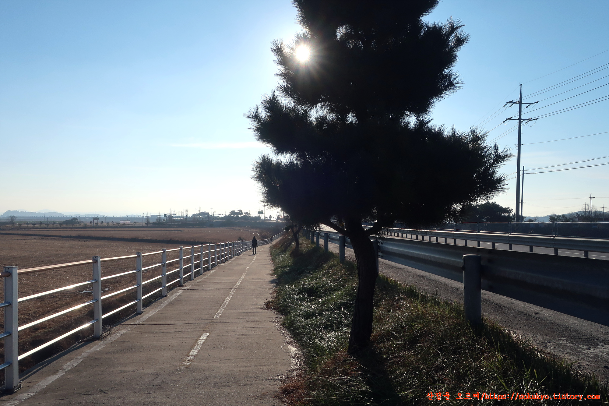 계속해서 '천수만로' 좌측의 세멘트 포장 자전거 도로를 따라 걷습니다.