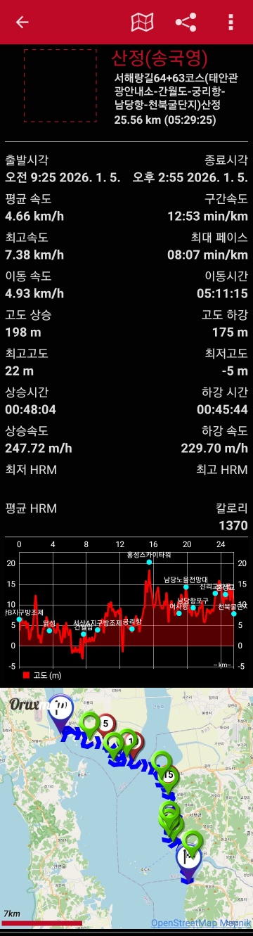 * 오록스맵 기록 : 25.56km(05시간29분/09:25~14:55)