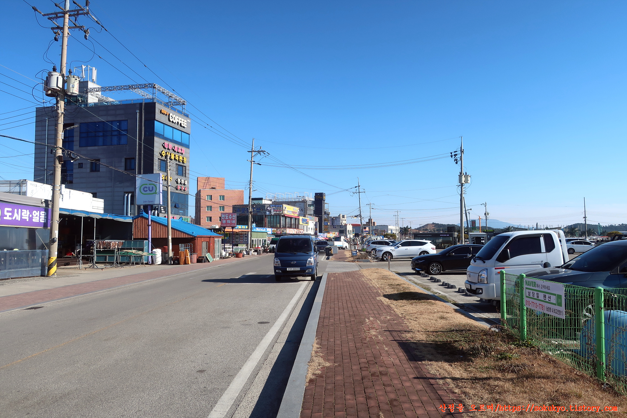 꽃동산 횟집 직전에서 좌측으로 휘어지면 '소도교차로'방향의 풍경