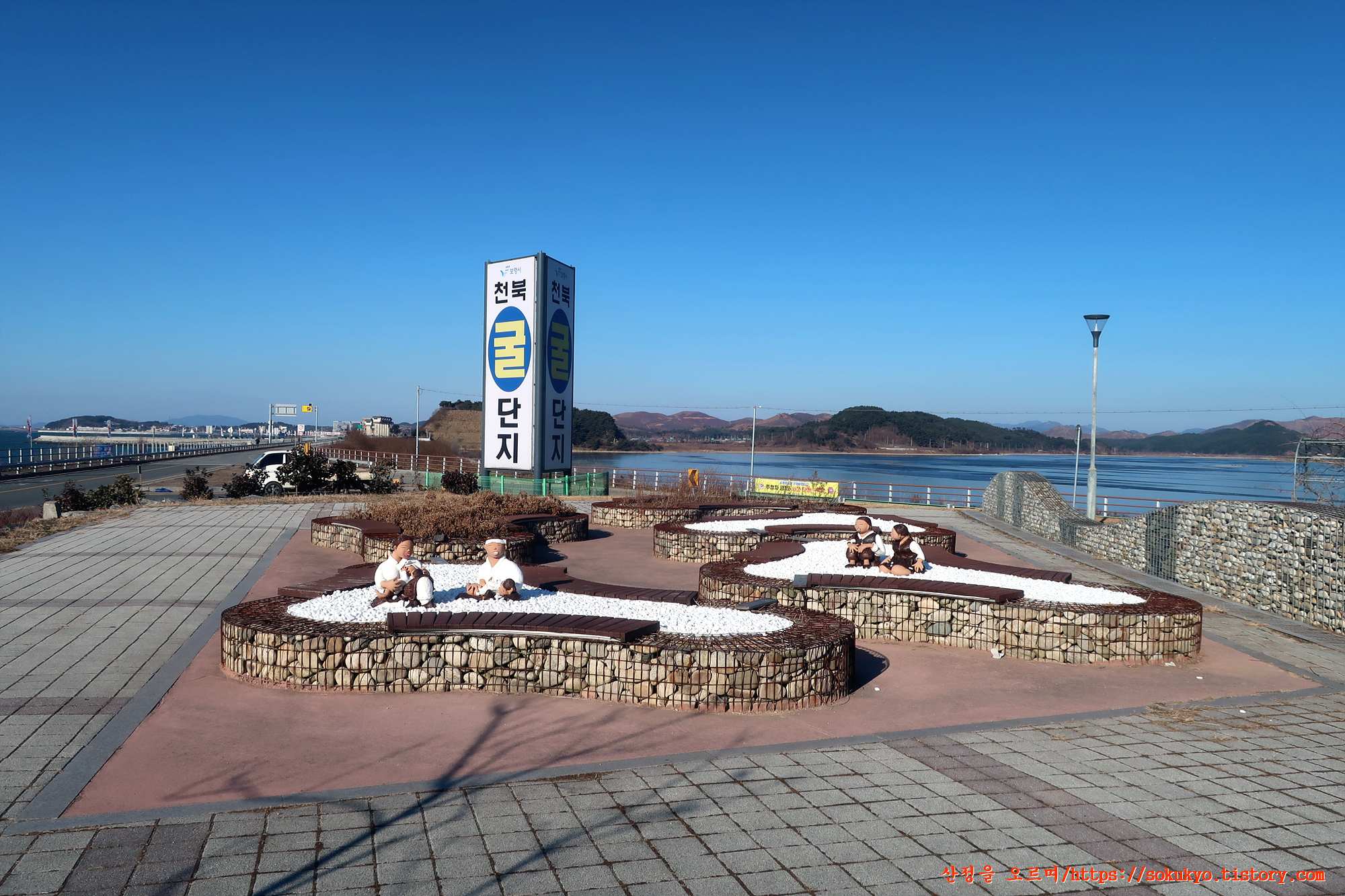 커다란 '천북 굴단지' 홍보판이 서 있는 소공원에 닿는다.