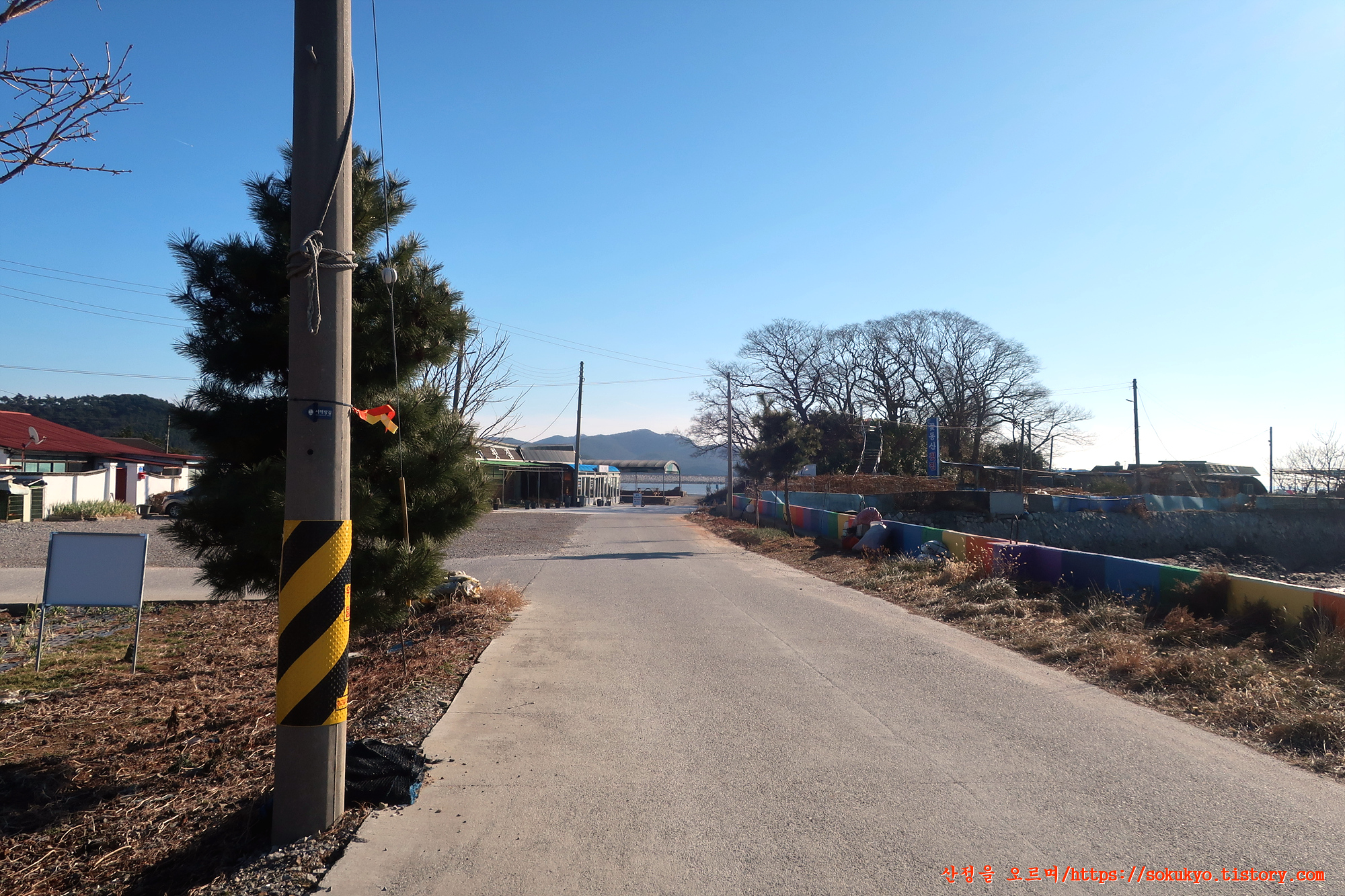 우측으로 휘어져 창리항과 창리회타운 건물이 보이는 곳으로 향합니다.