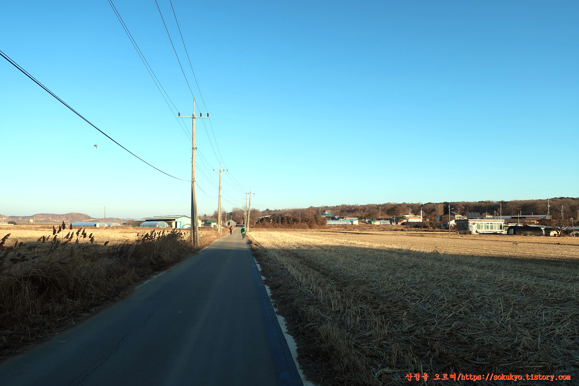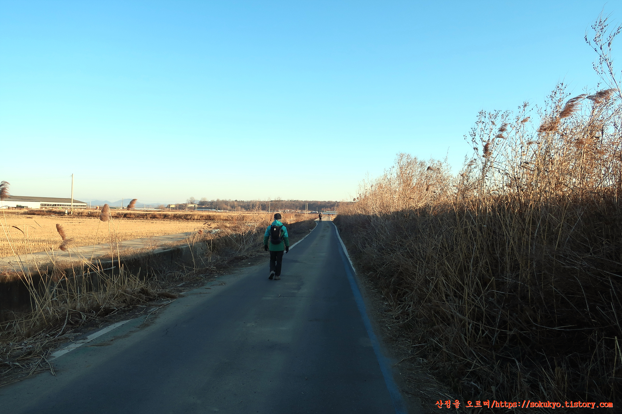 좌측에 작은 수로를 두고 농로를 따라 걷고