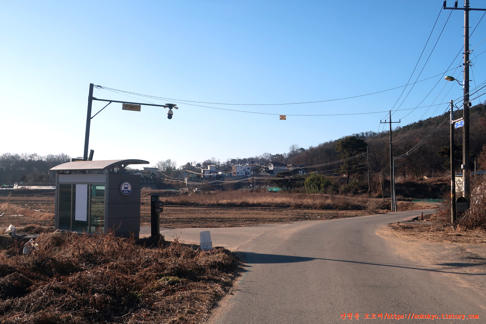 버스정류장을 지나며 우측으로 휘어져 가금리 마을로 들어섭니다.