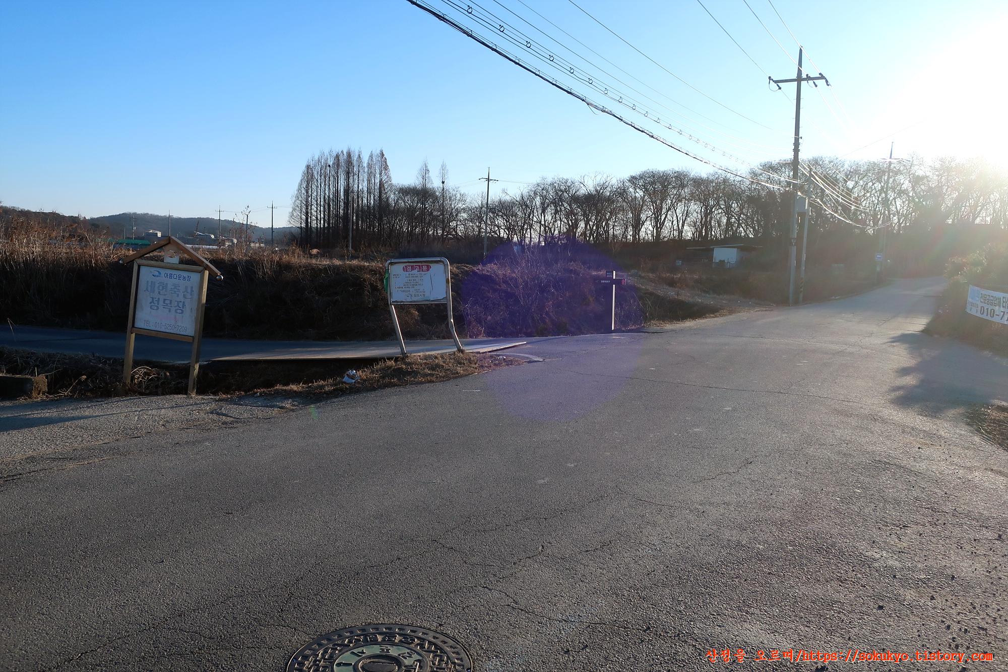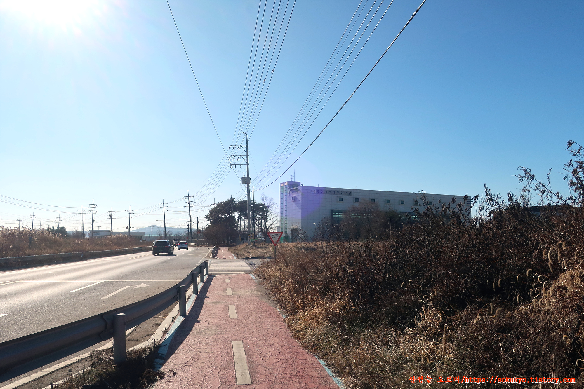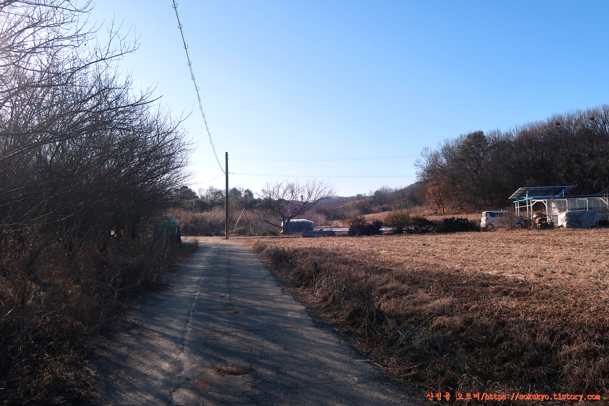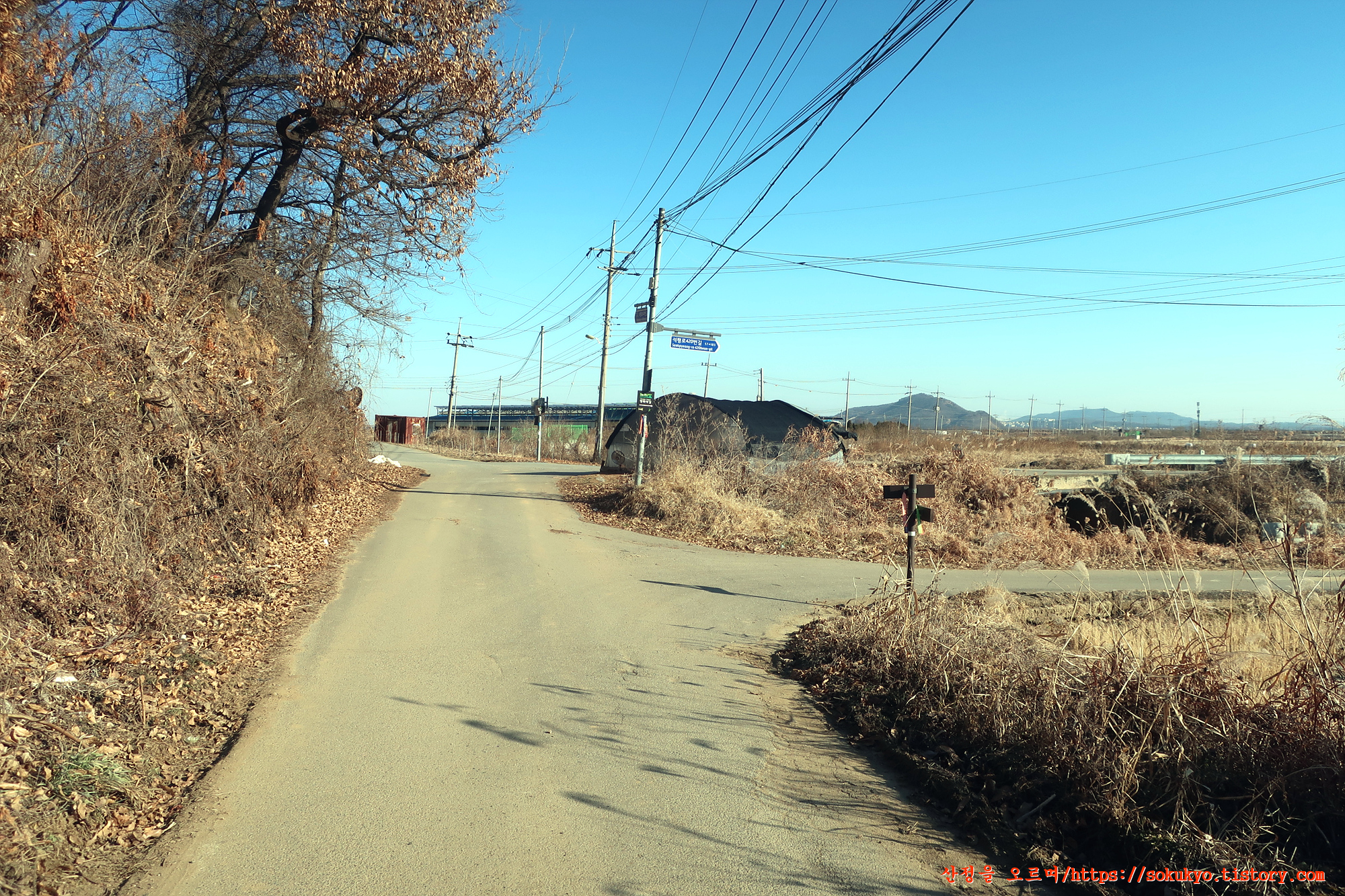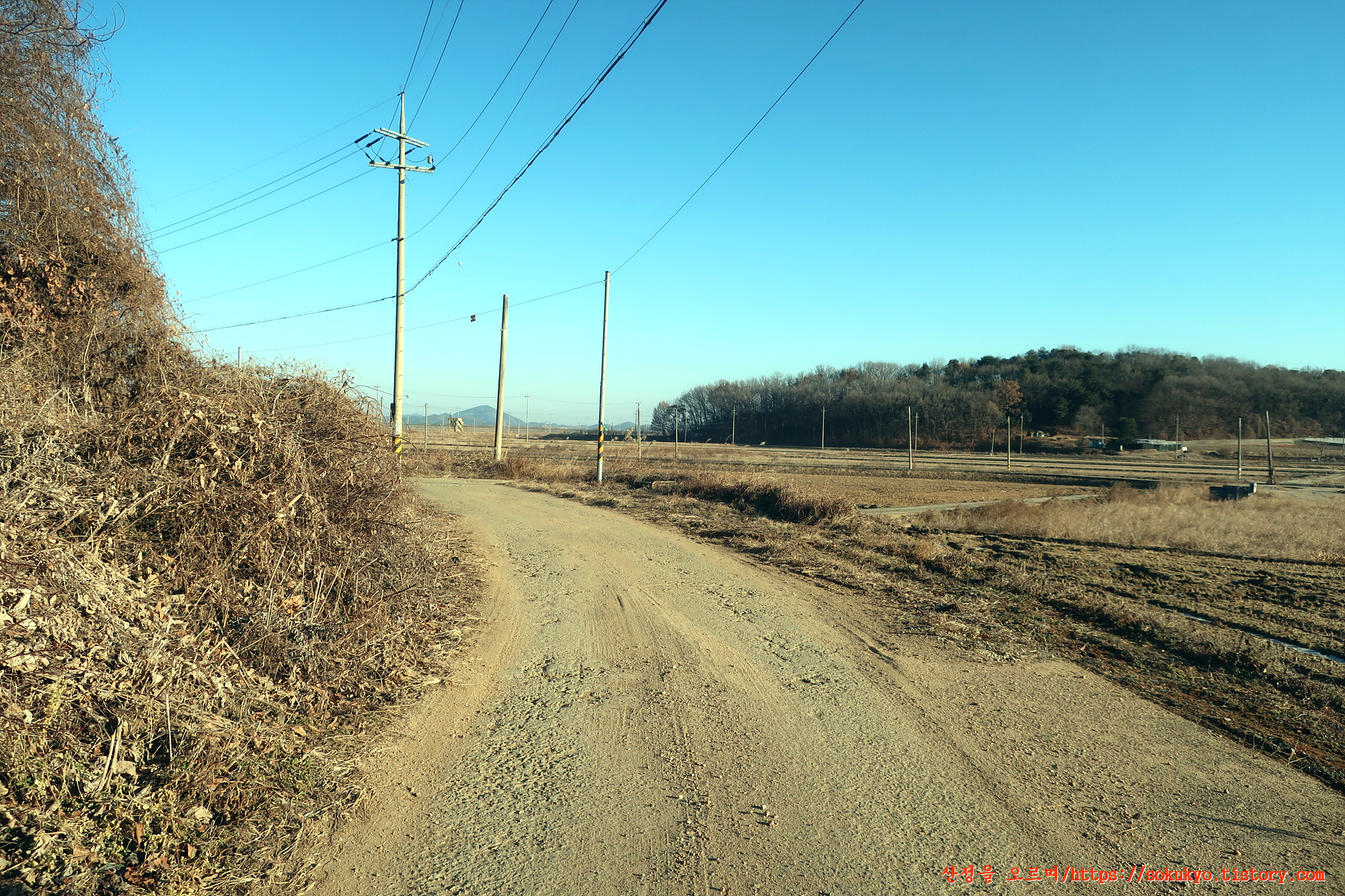 가금리의 세현축산 정목장 입구를 지나 좌측으로 휘어지는 농로를 따라 걷습니다.