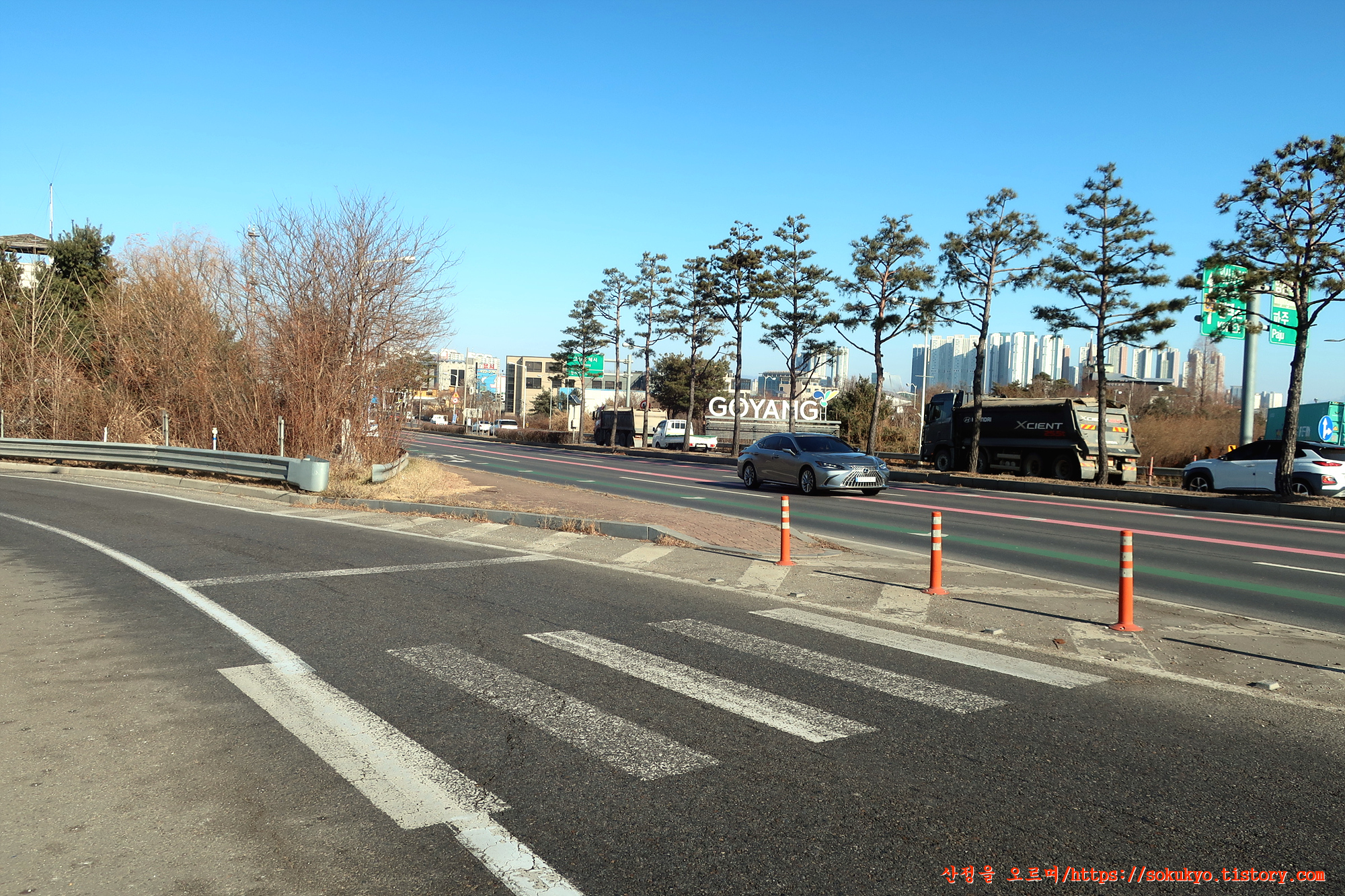 일산대교를 건너면 끝에서 이산포JC를 지나 '고양대로'를 따라 걷습니다.