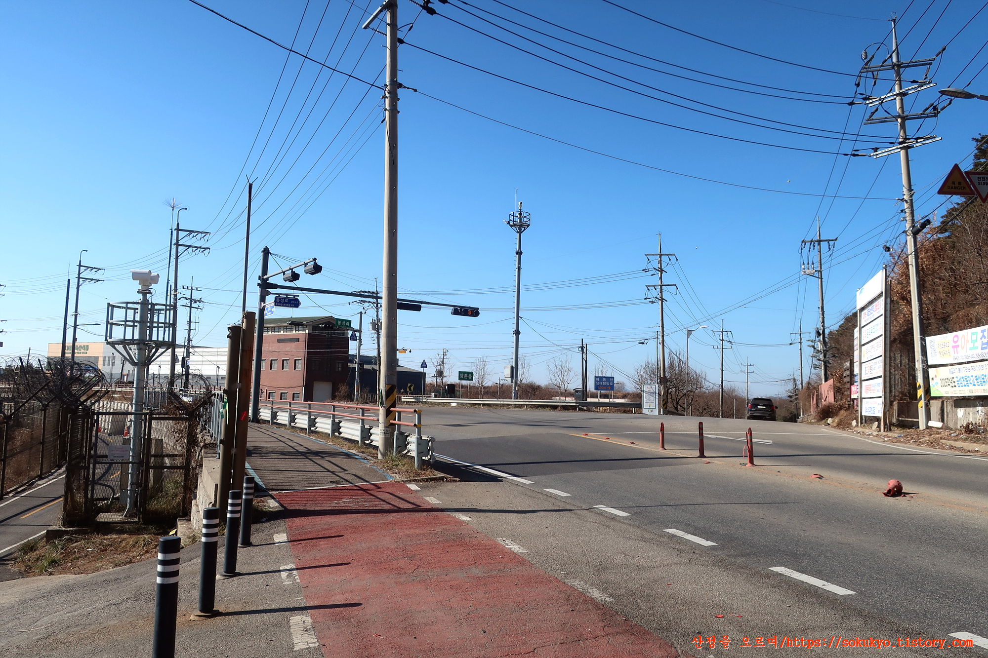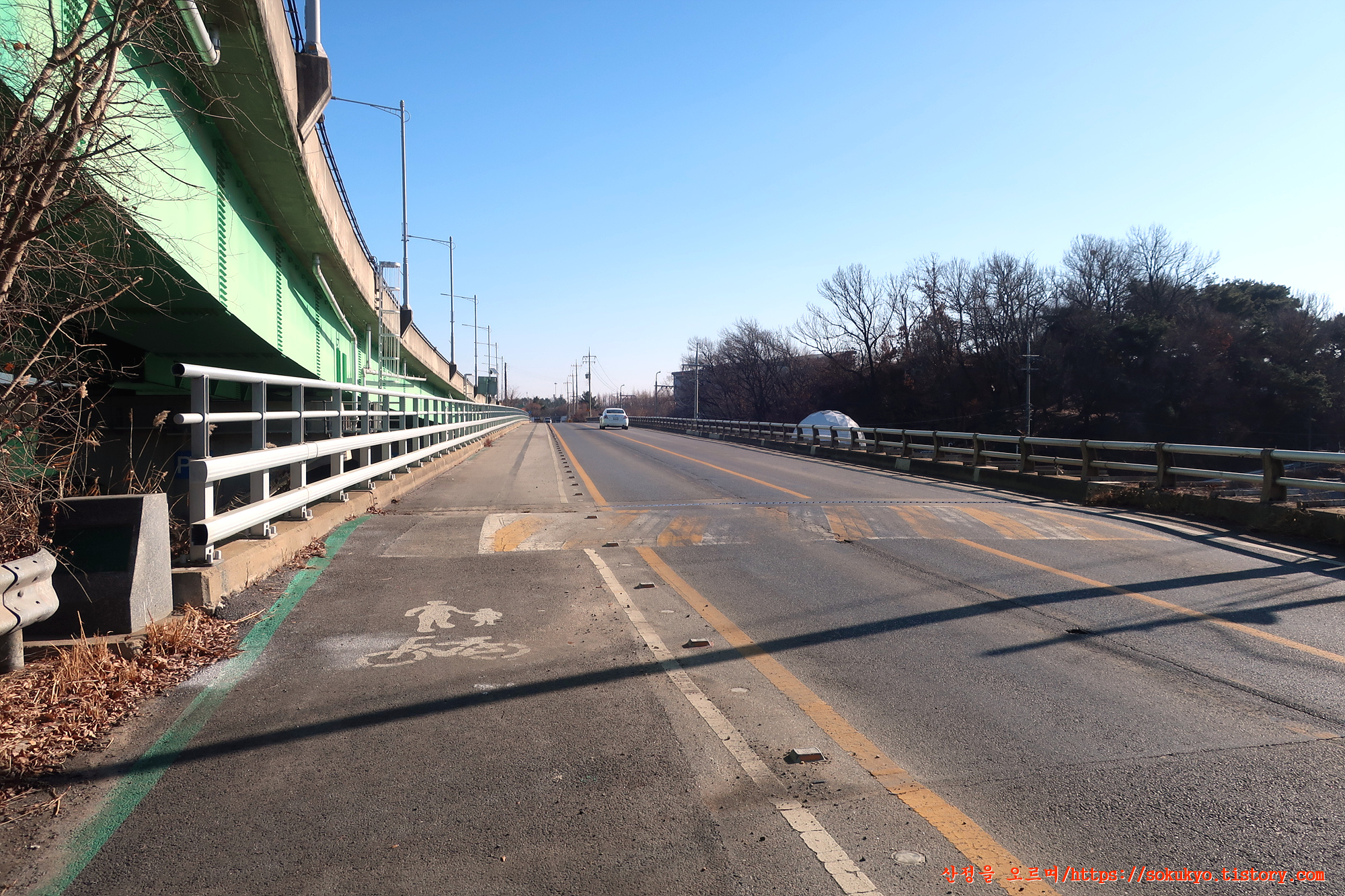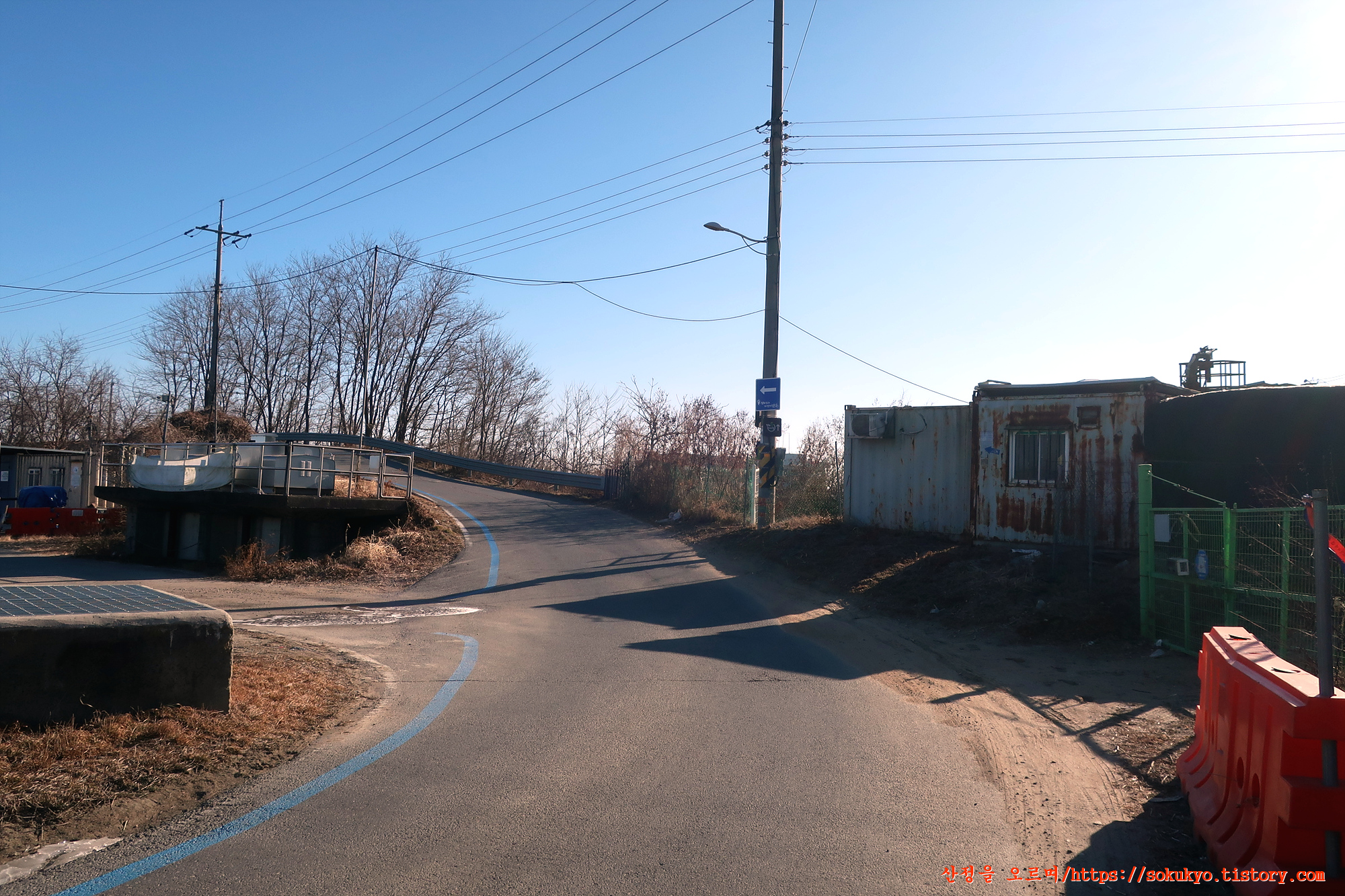 '일산대교'를 건너기 위해 DMZ평화의 길은 '신향삼거리'에서 우측으로 휘어져