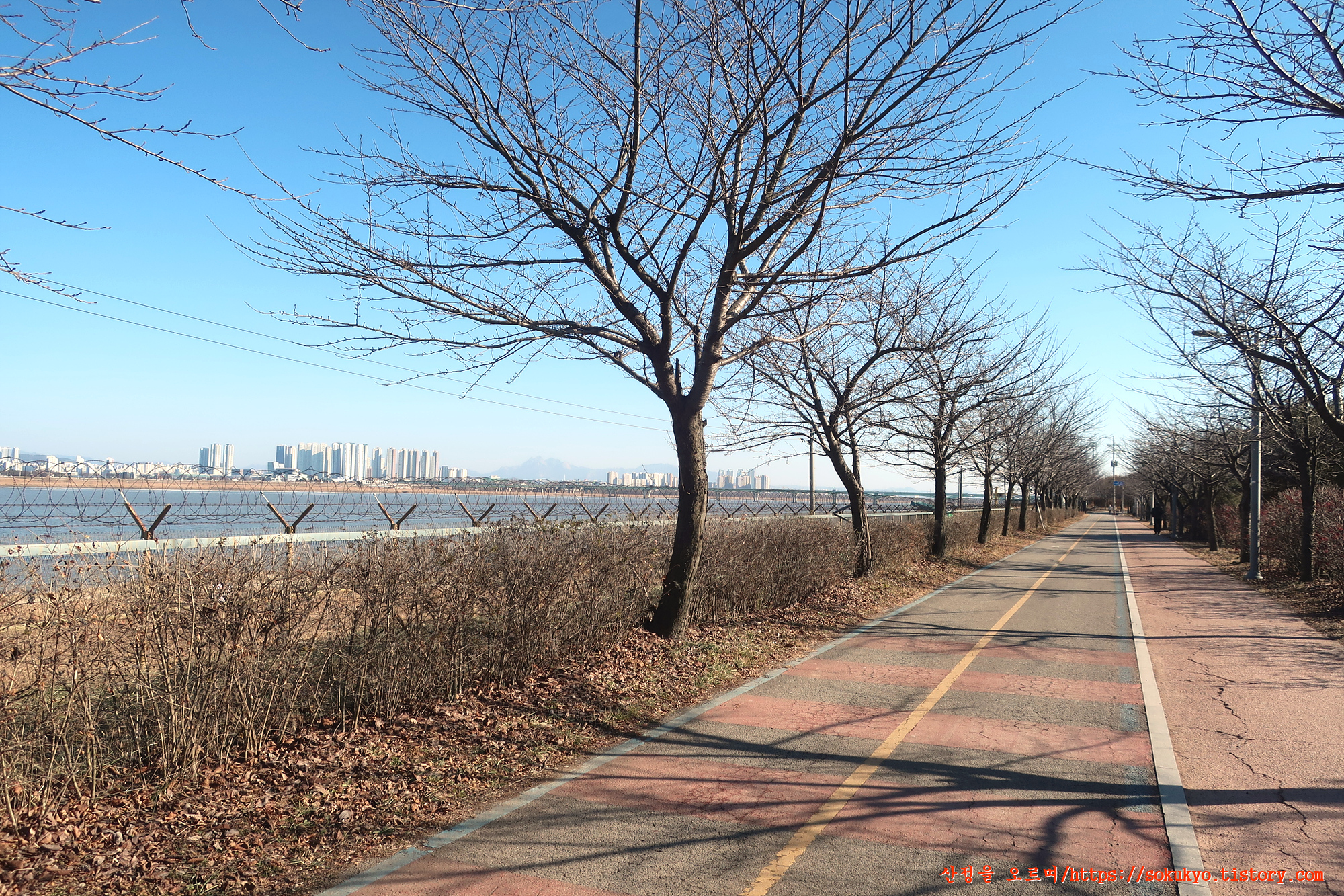 한강변을 따라 설치되어 있는 철책선 구간이라 조금은 지루함도 느껴집니다.