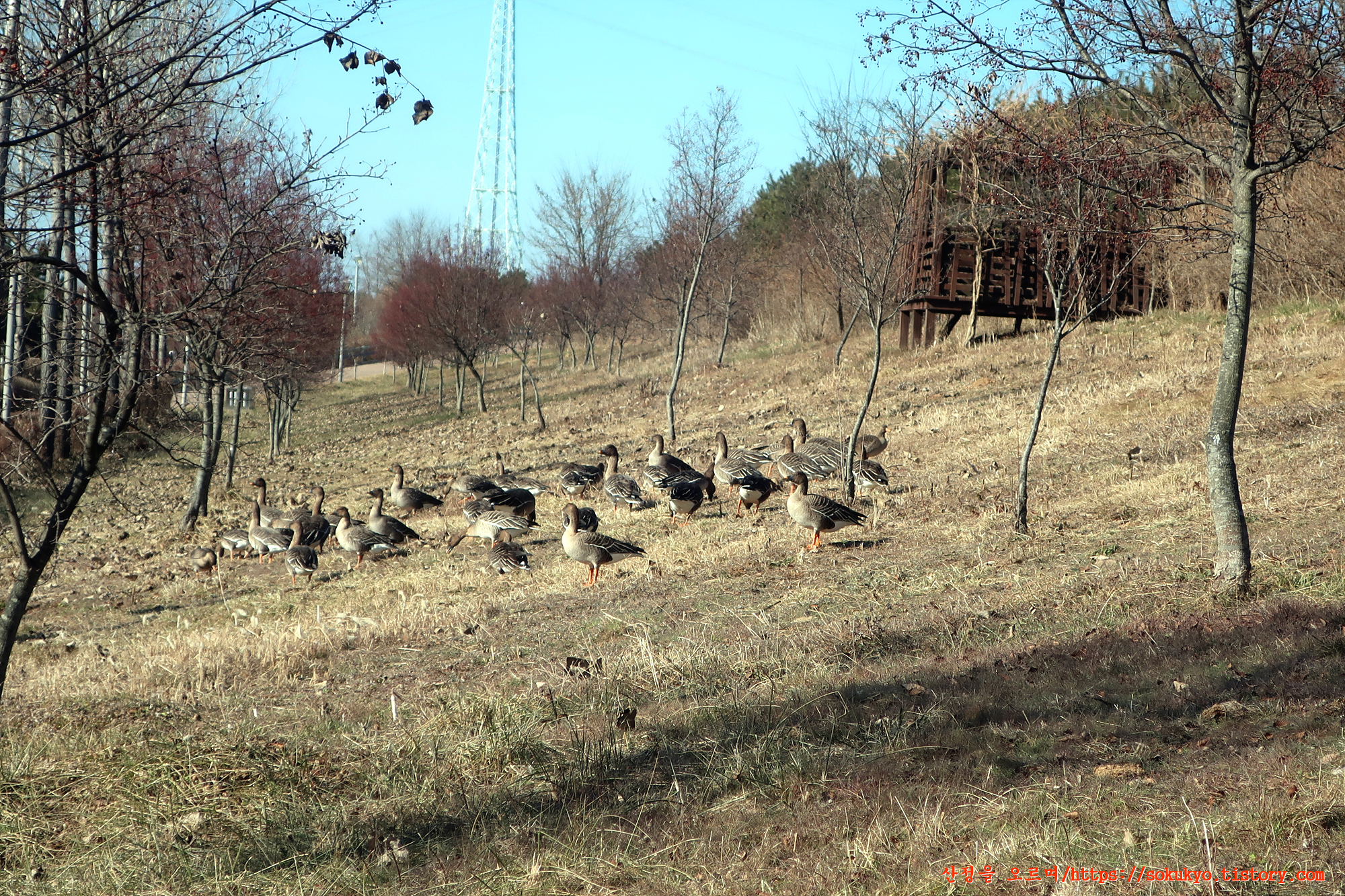 기러기떼들이 한가롭게 휴식을 취하는듯...