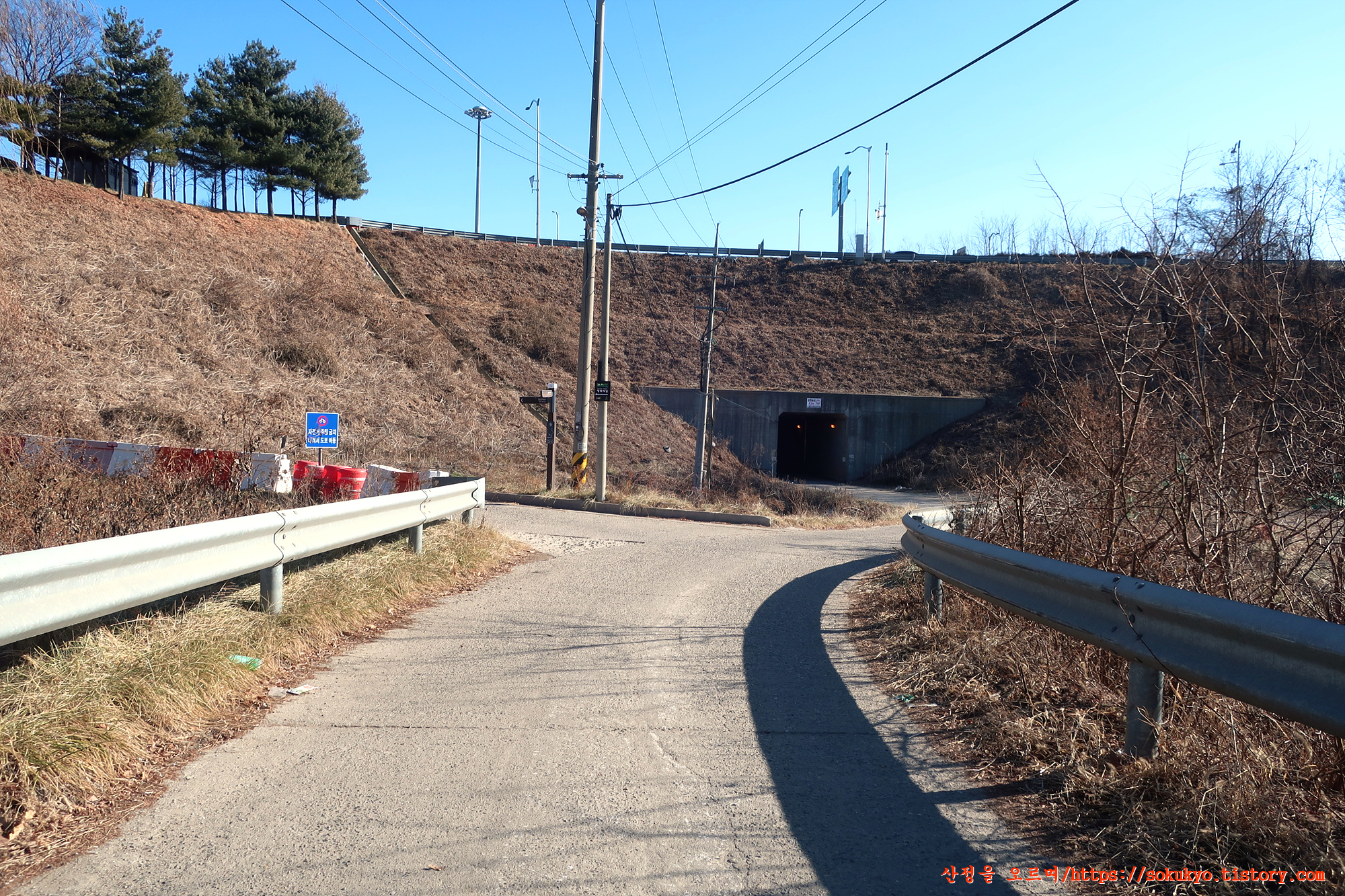 군초소가 있는 우측으로 휘어져 산길을 지나게 됩니다.