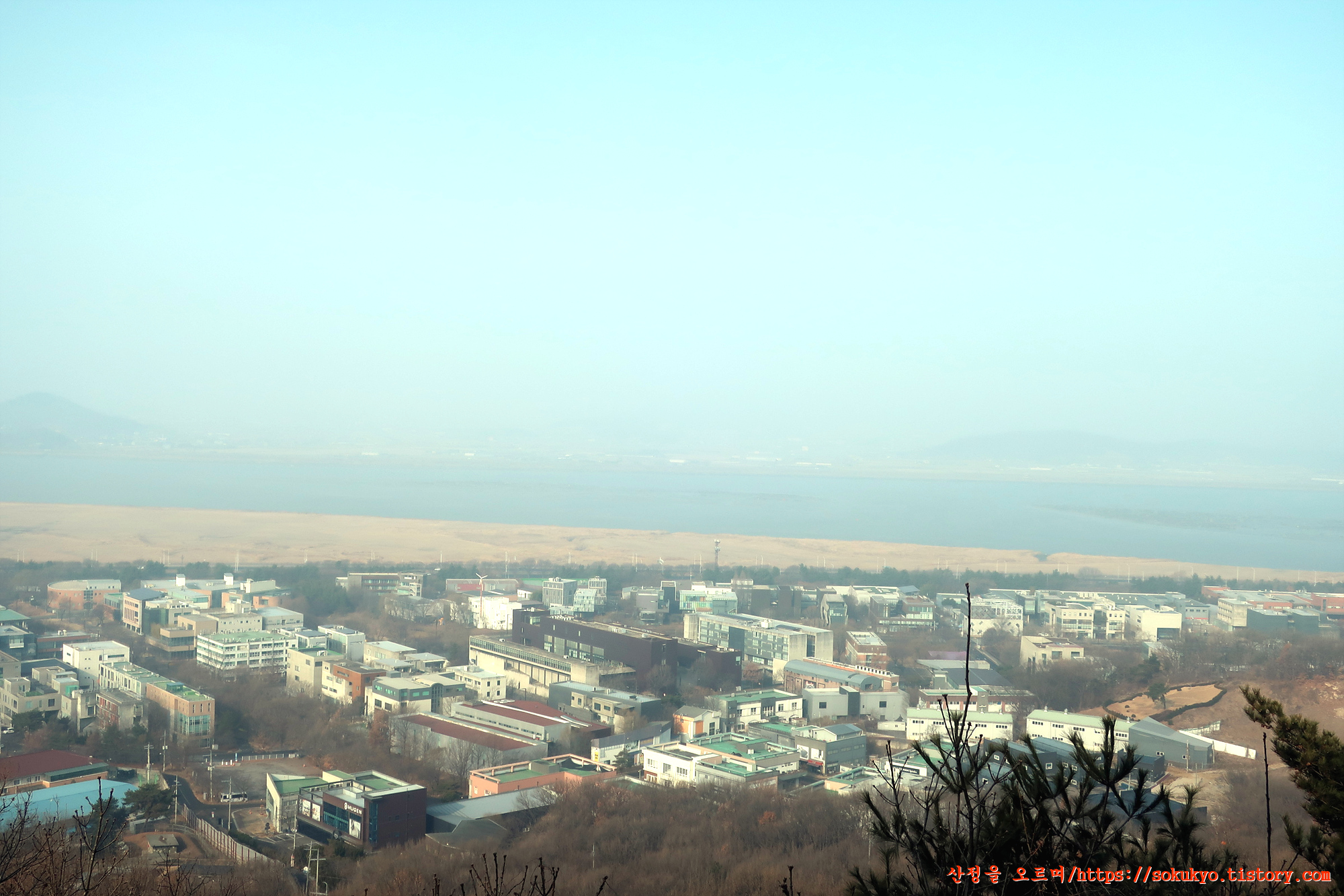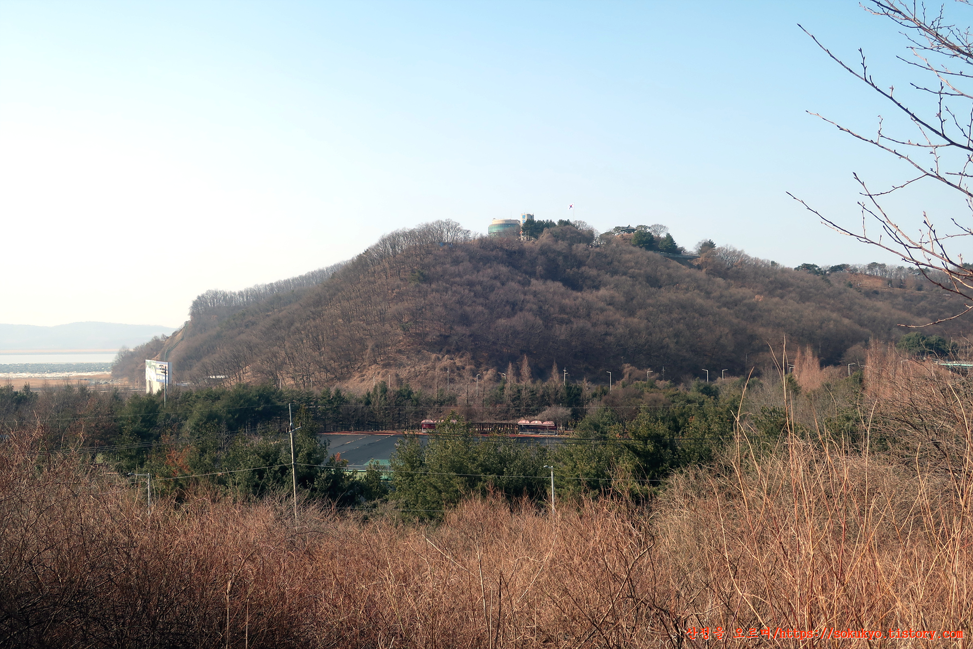 멀리 오두산 전망대를 바라보며 오두산 자락에 속해있는 약100m정도의